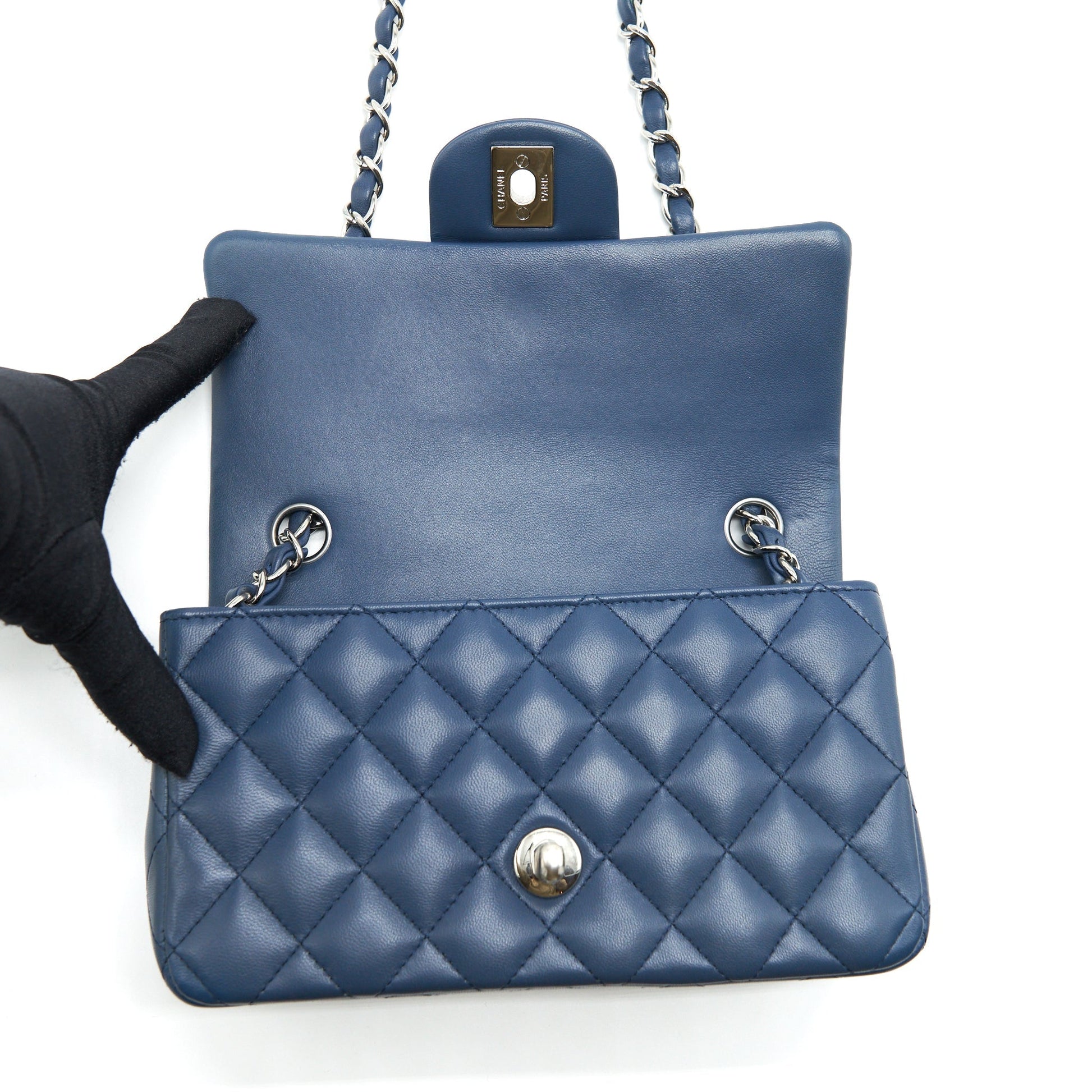 Chanel Mini Rectangular Flap bag Lambskin Blue SHW