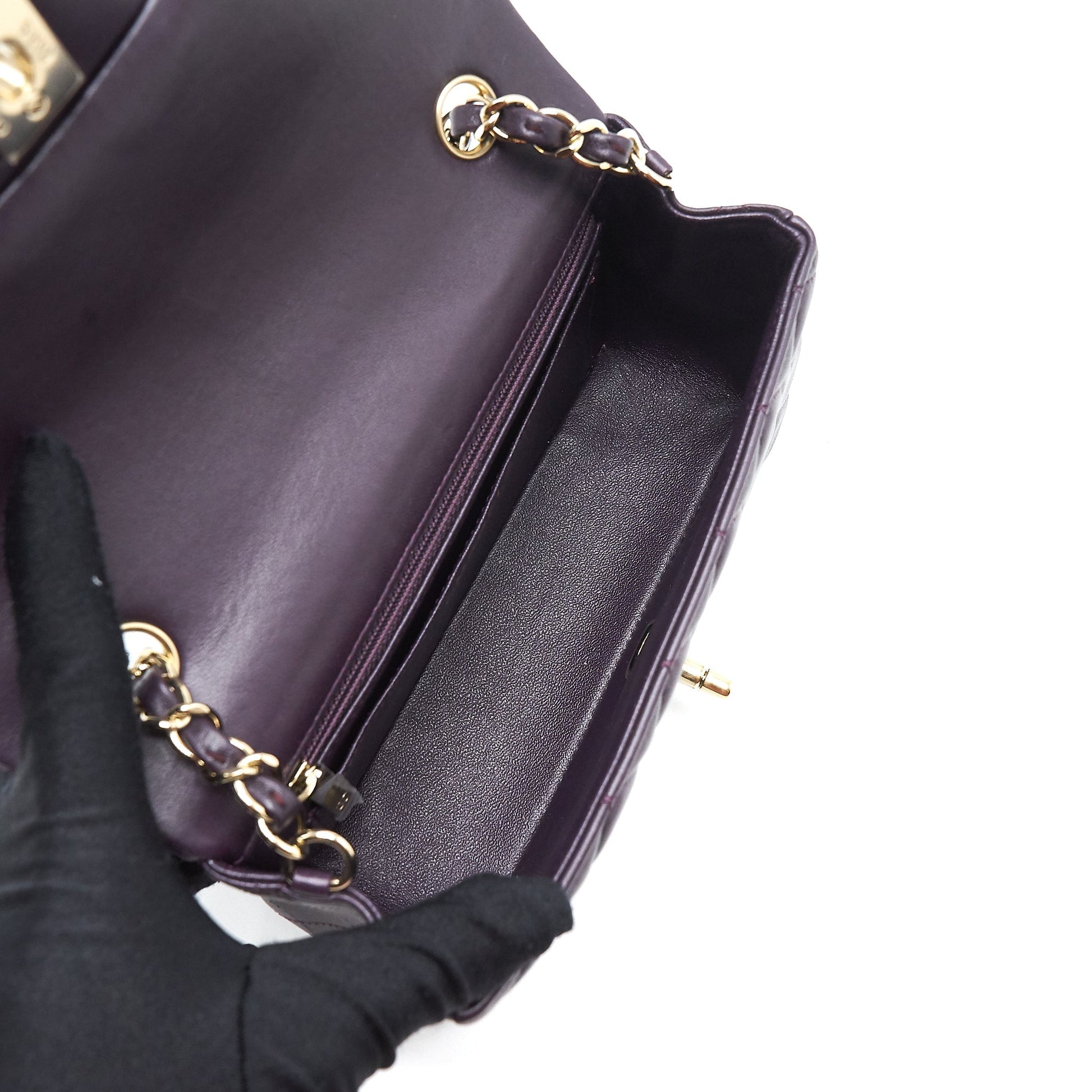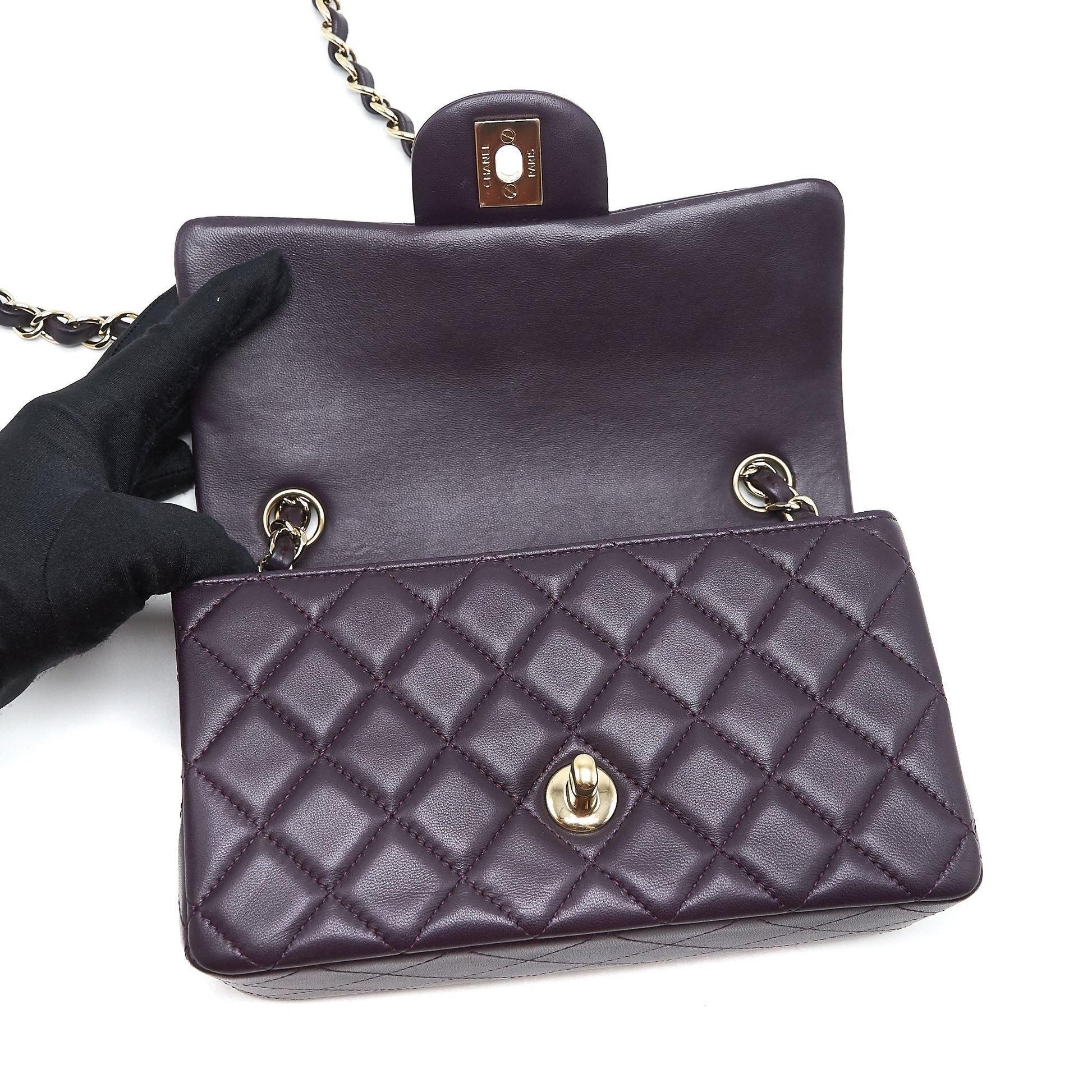 Chanel Mini rectangular Flap Bag lambskin 16B Dark Purple LGHW