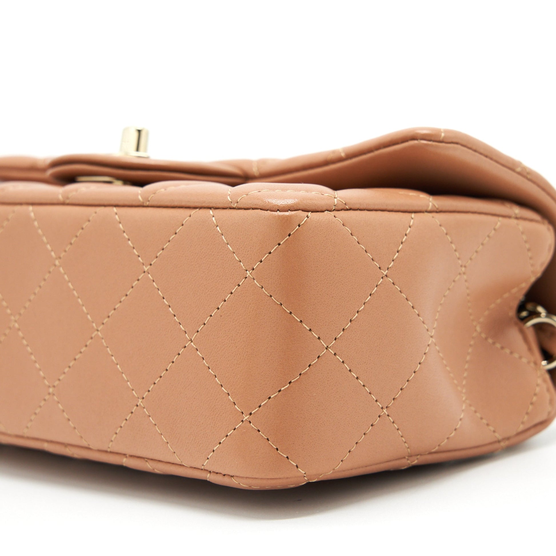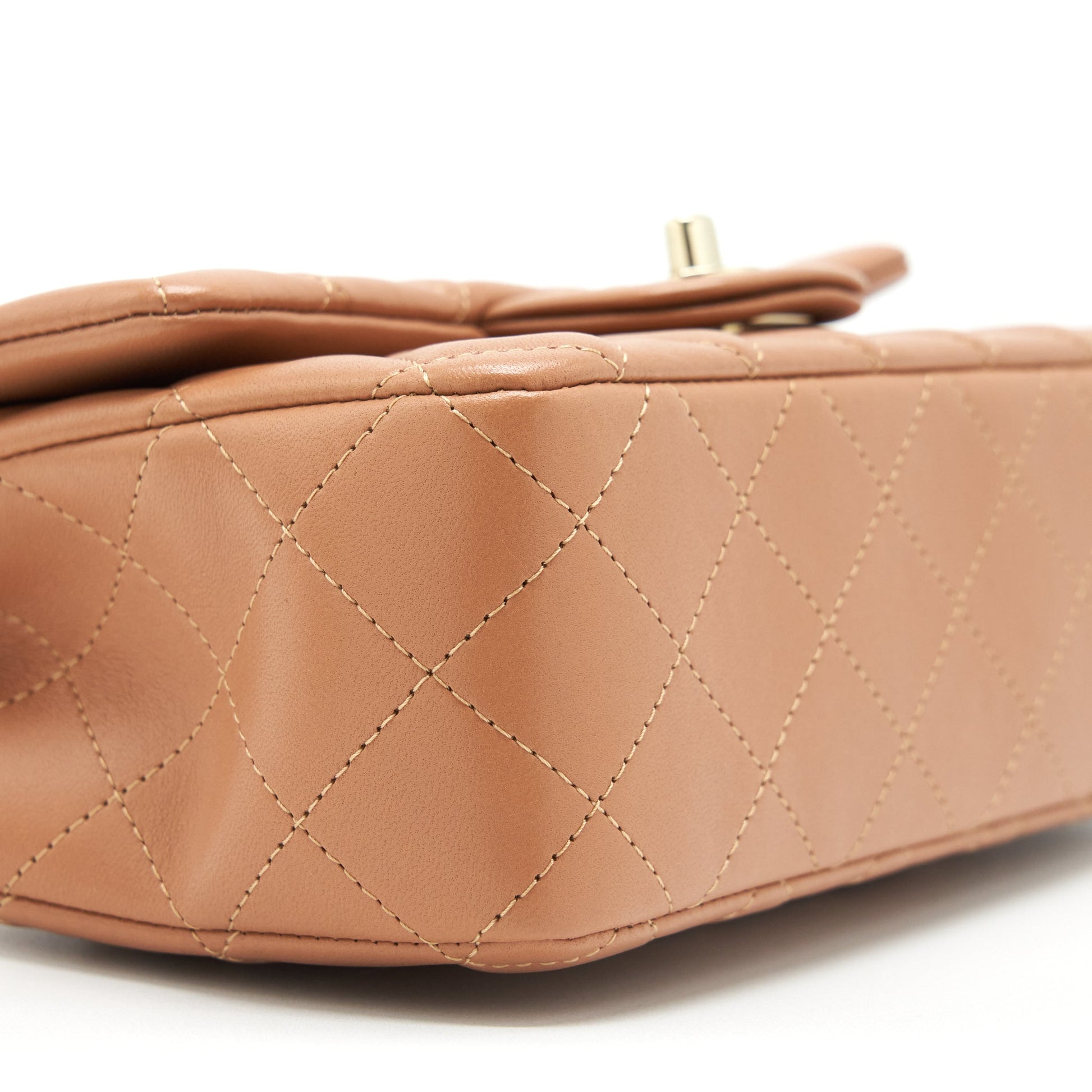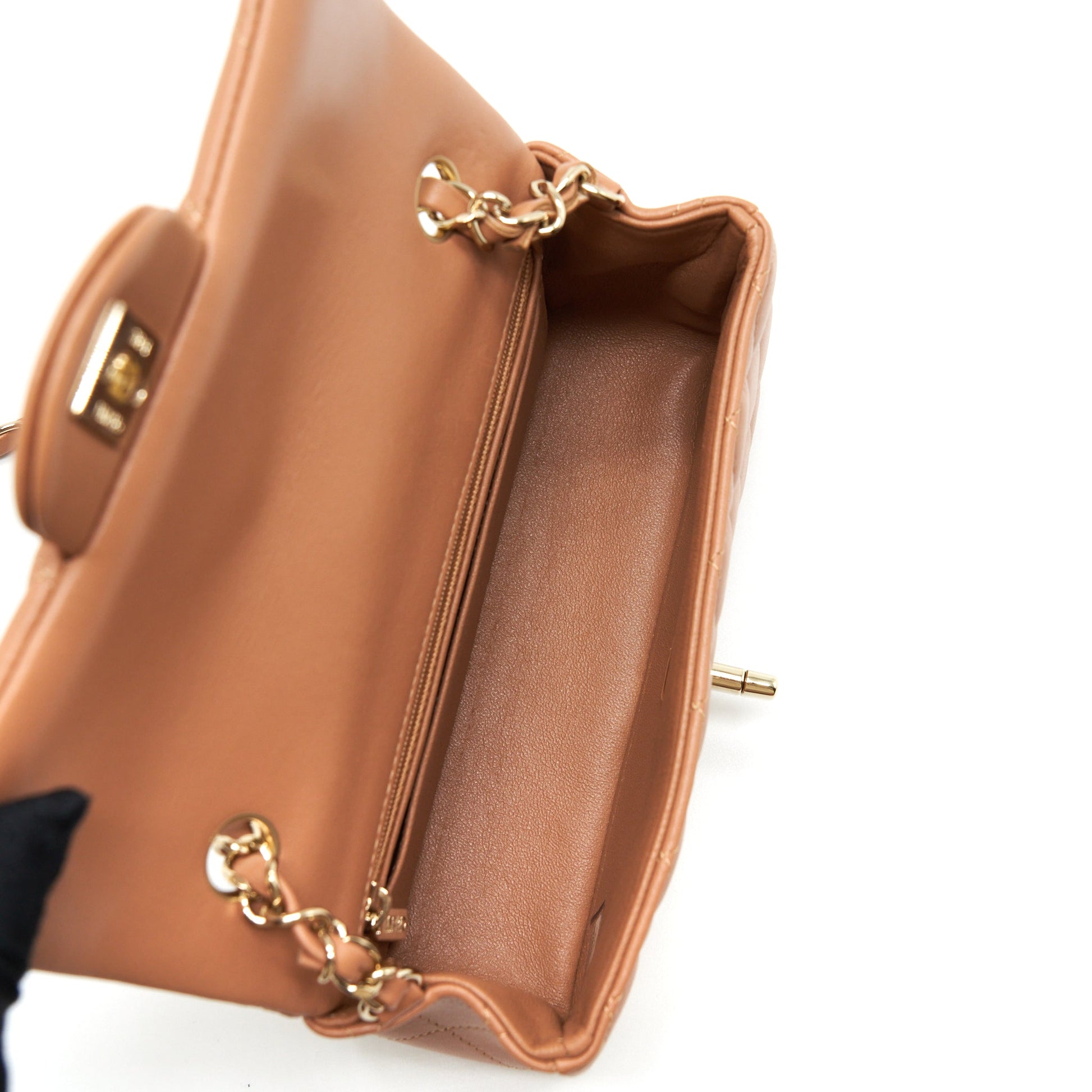 Chanel Mini Rectangular Flap Bag Lambskin Caramel LGHW
