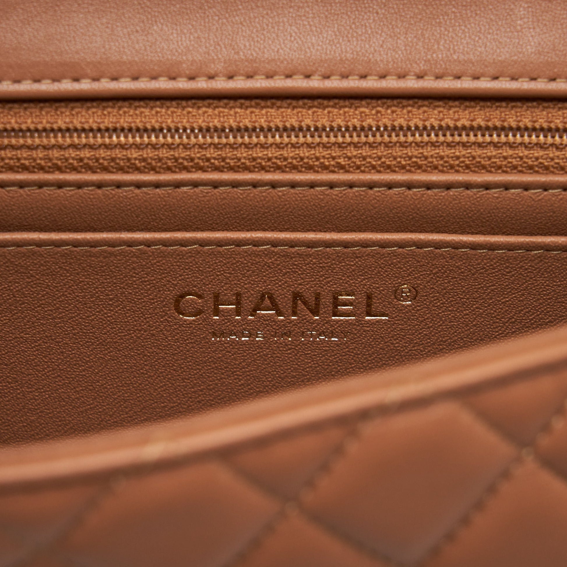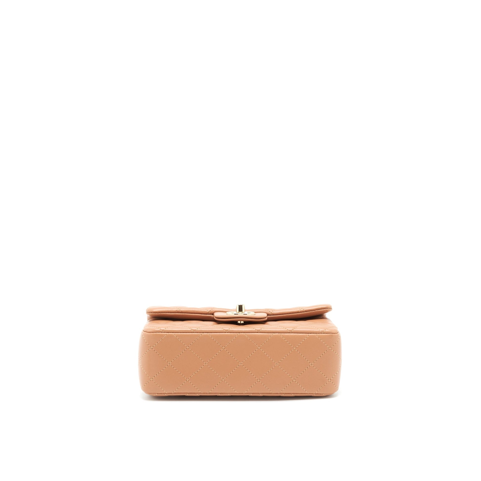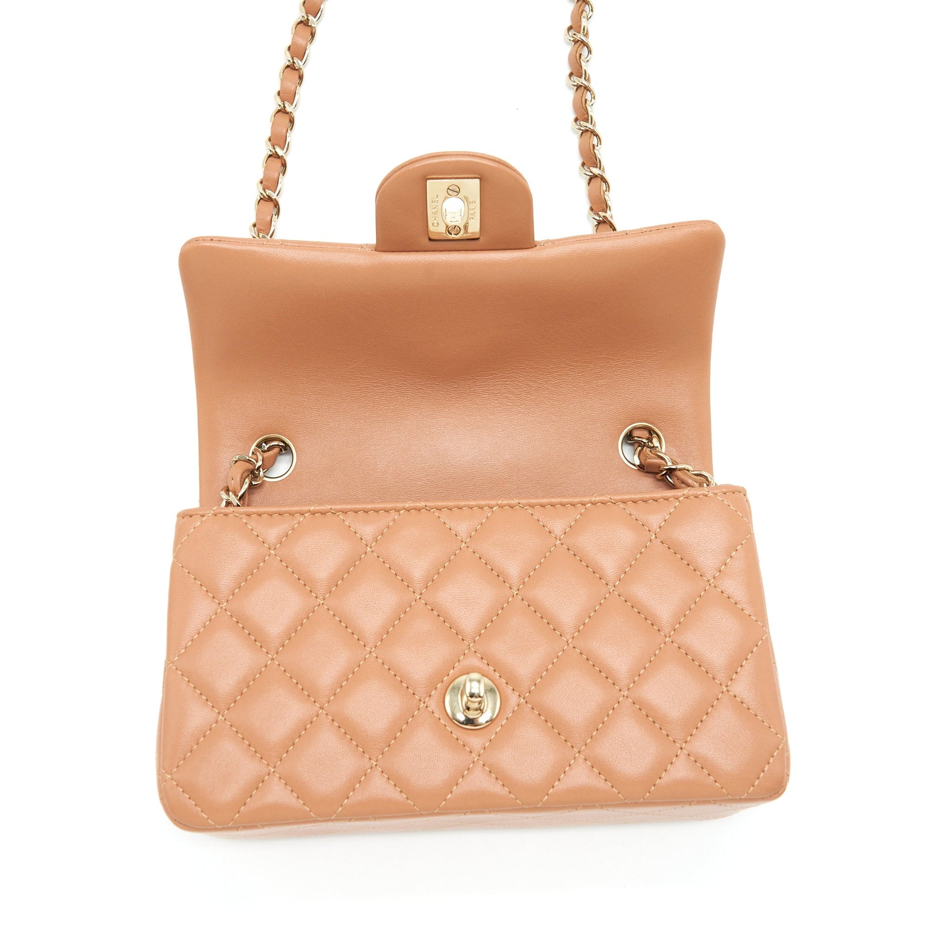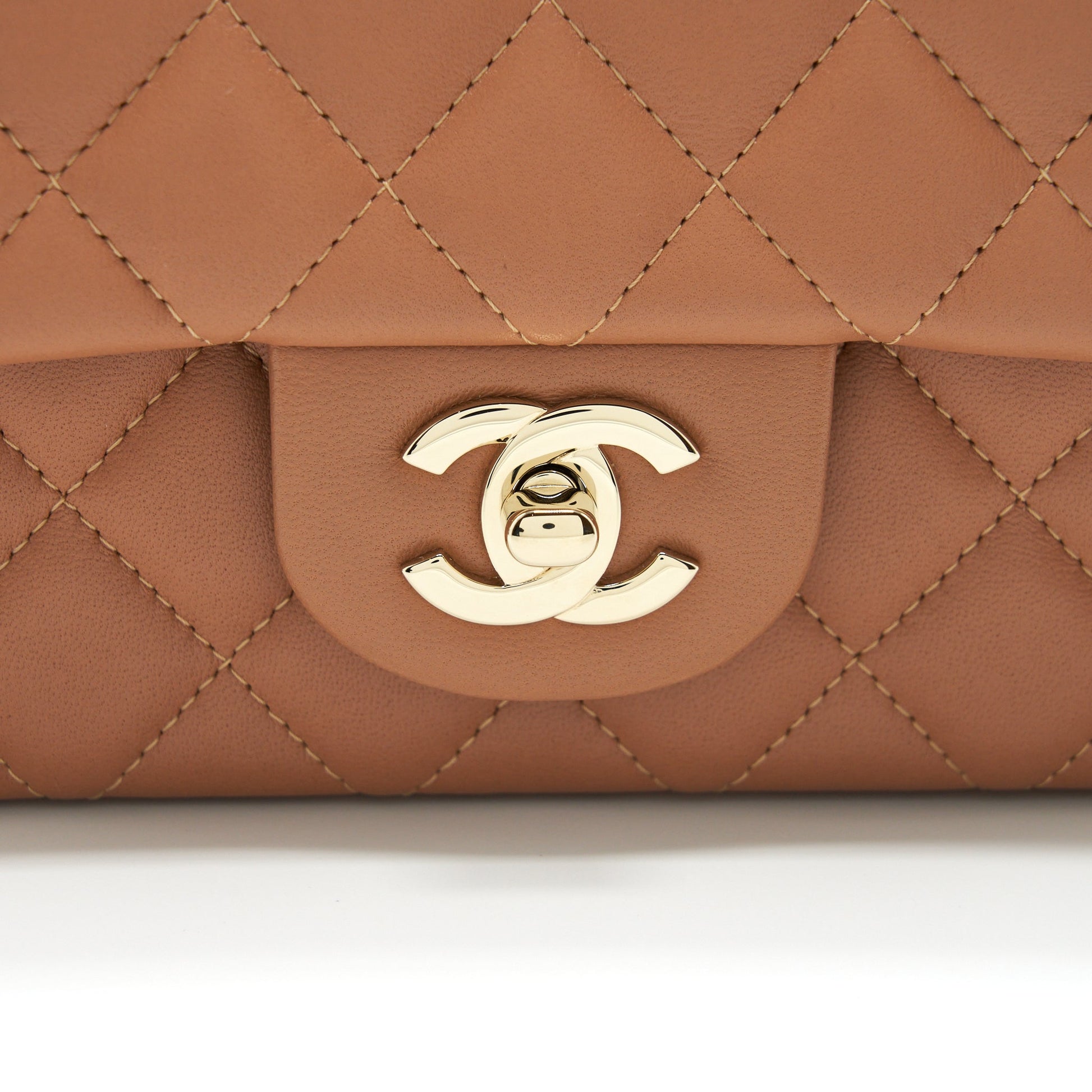 Chanel Mini Rectangular Flap Bag Lambskin Caramel LGHW