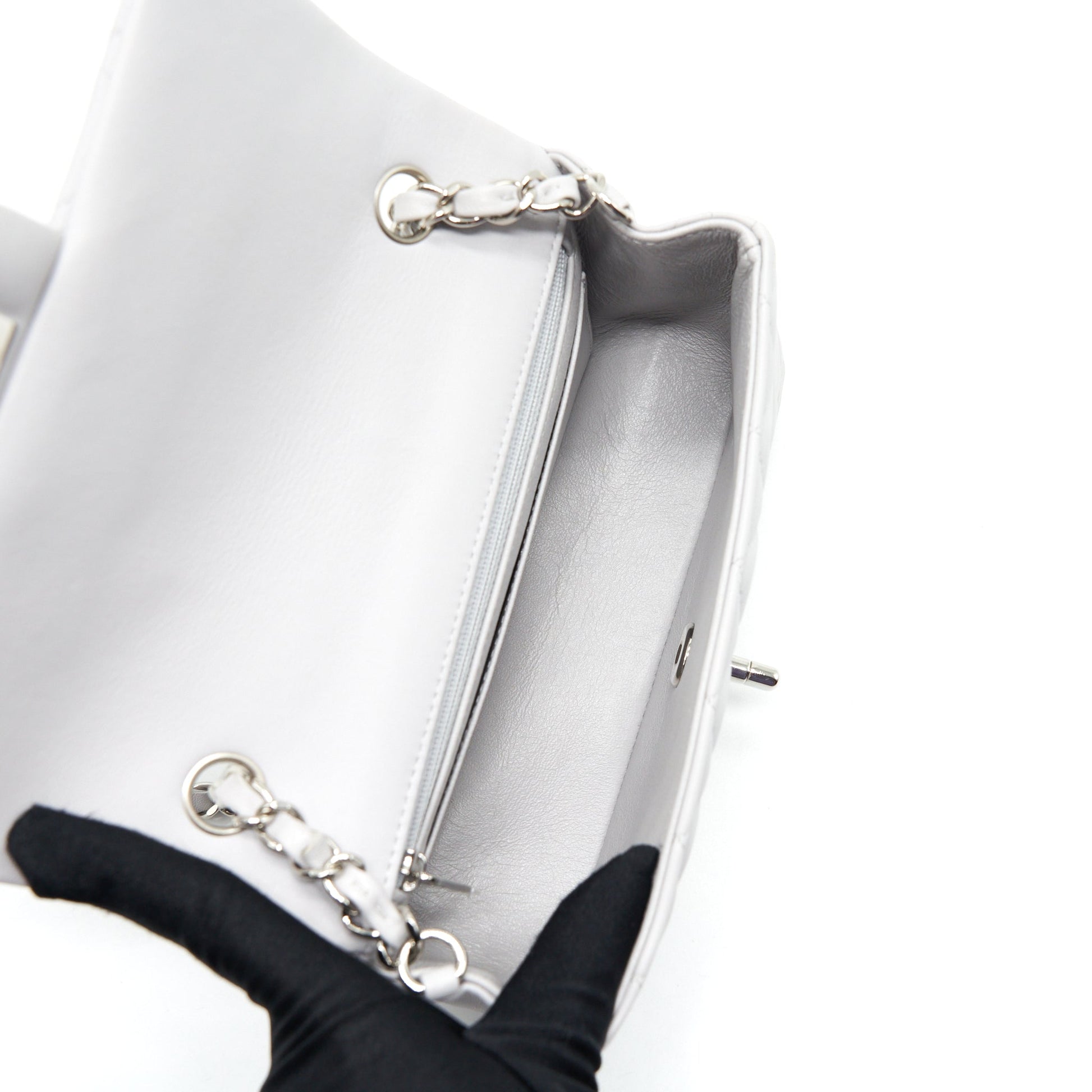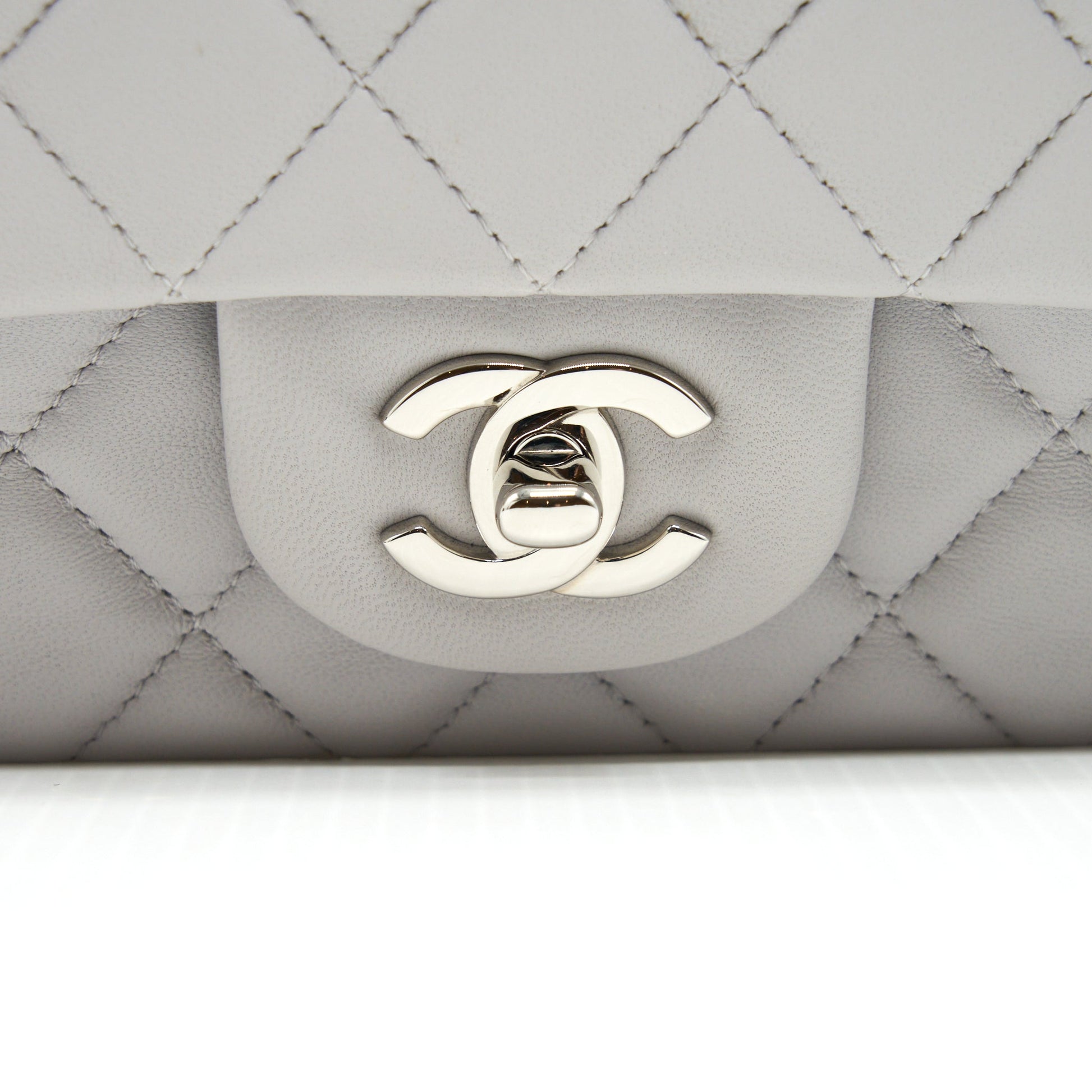 Chanel Mini Rectangular Flap Bag Lambskin Light Grey SHW