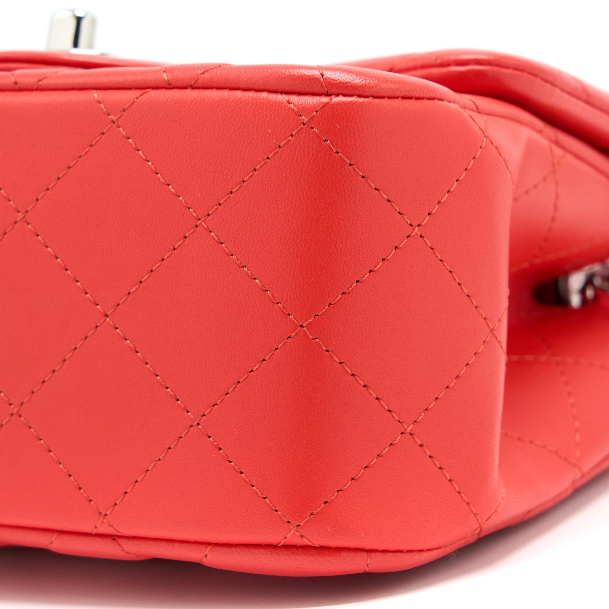 Chanel Mini Square Flap Bag Lambskin Orange Red SHW