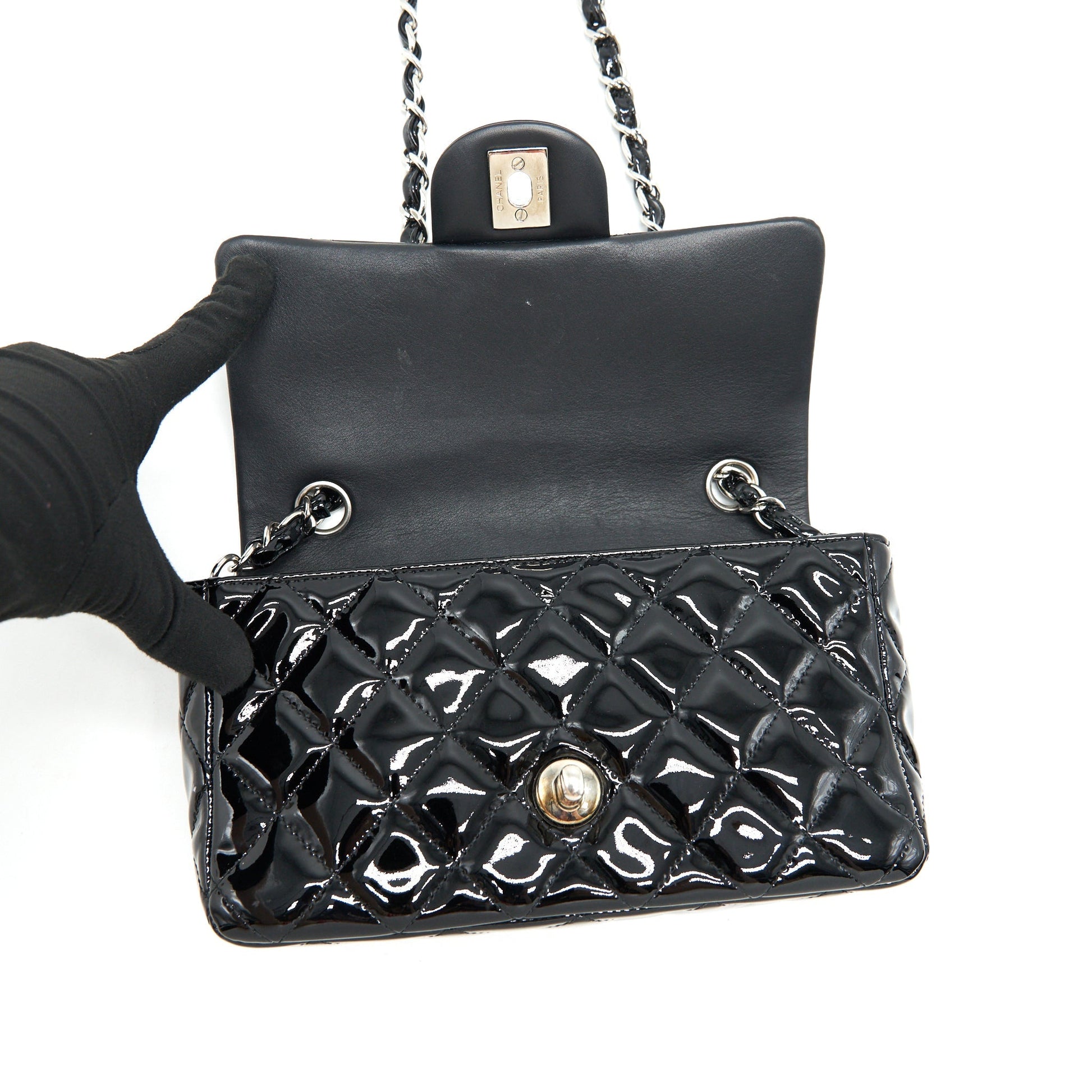 Chanel Mini Rectangular Flap Bag Patent Leather Black SHW