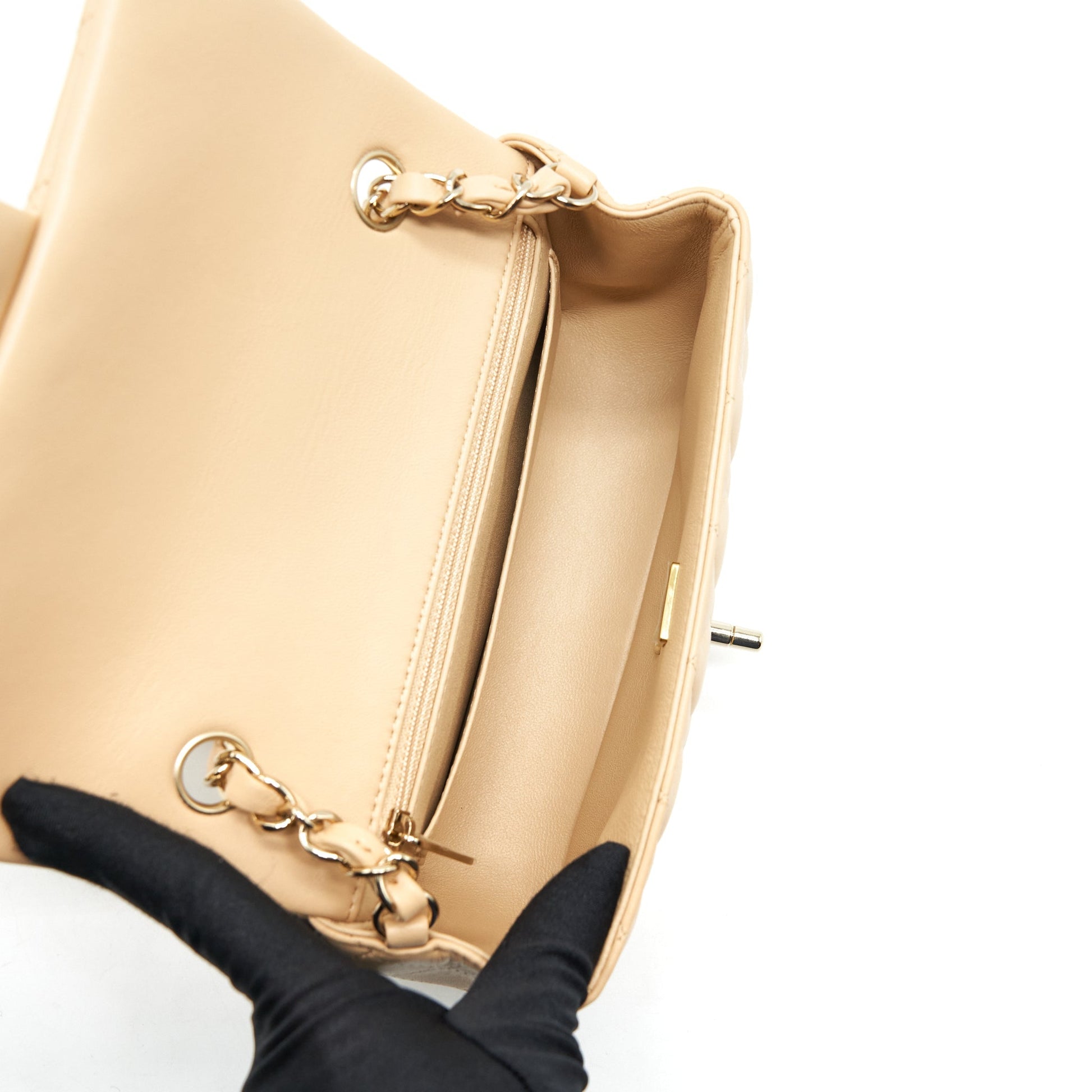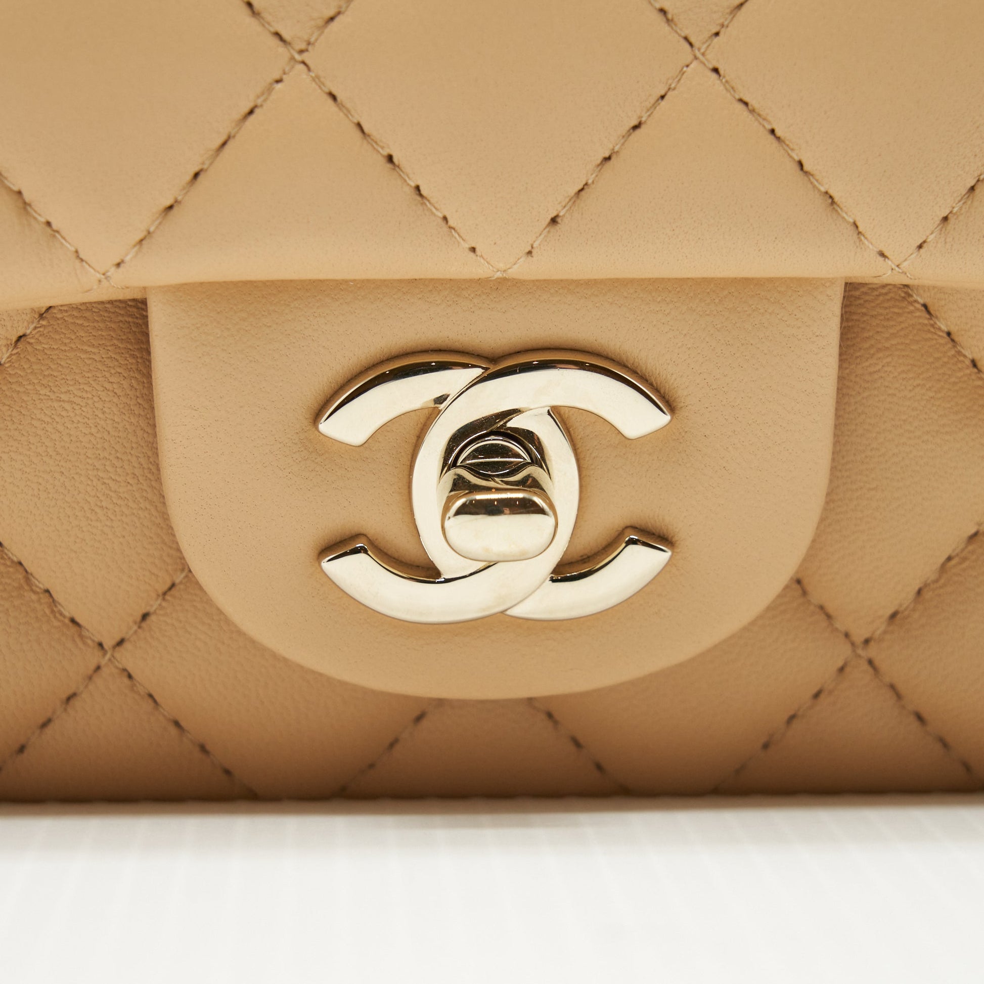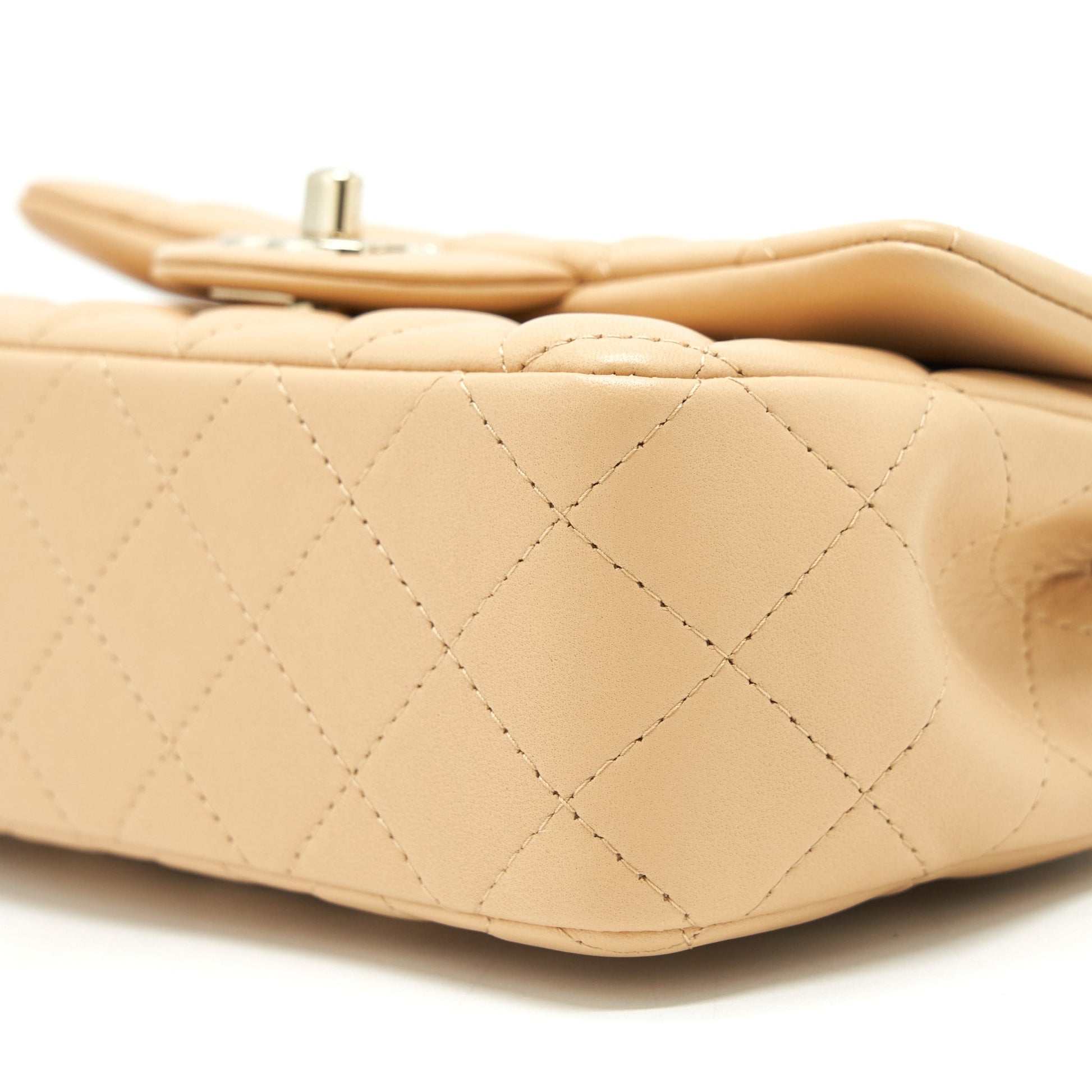 Chanel Mini Rectangular Lambskin Beige LGHW(Microchip)