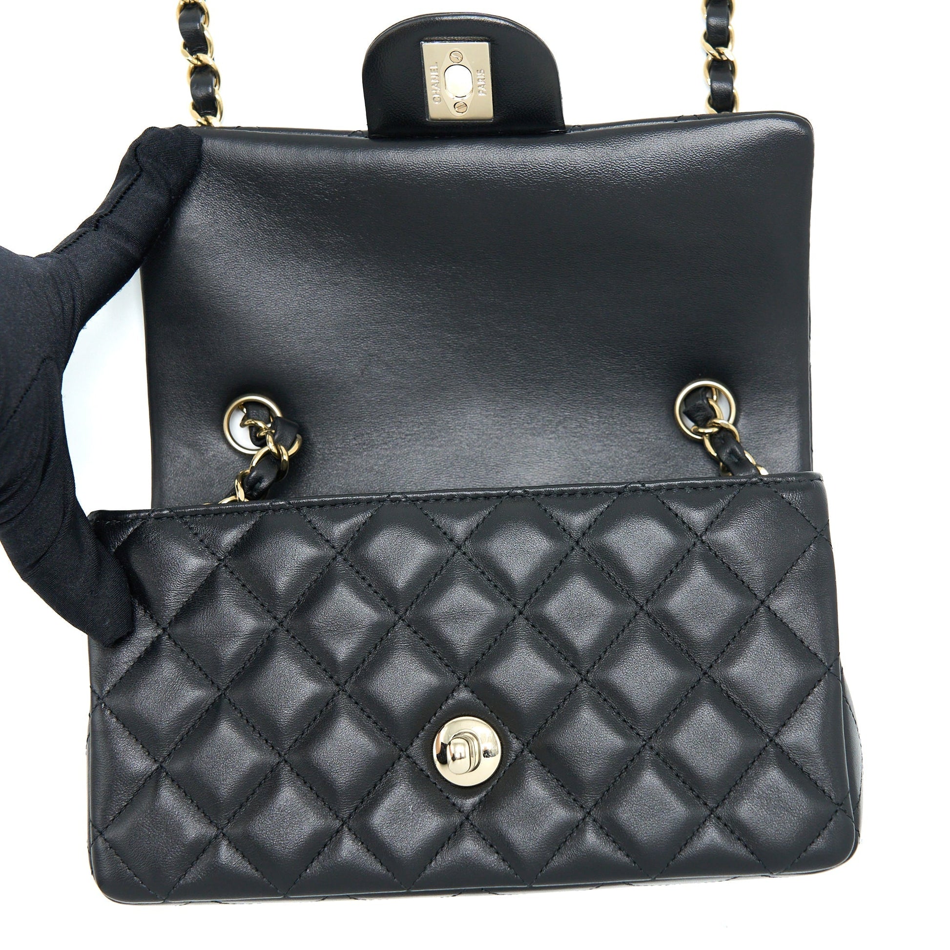Chanel Mini Rectangular Lambskin Black LGHW(Microchip)