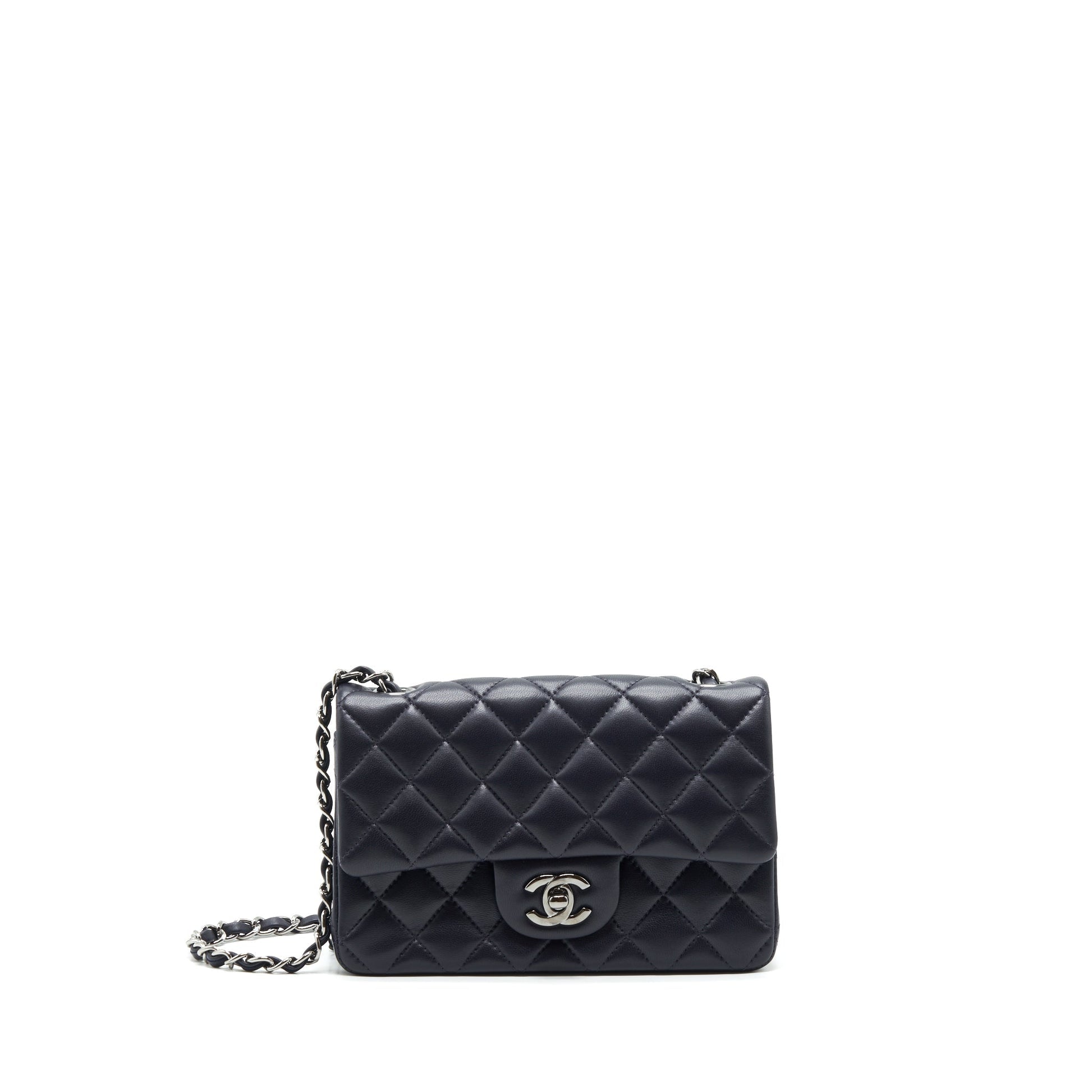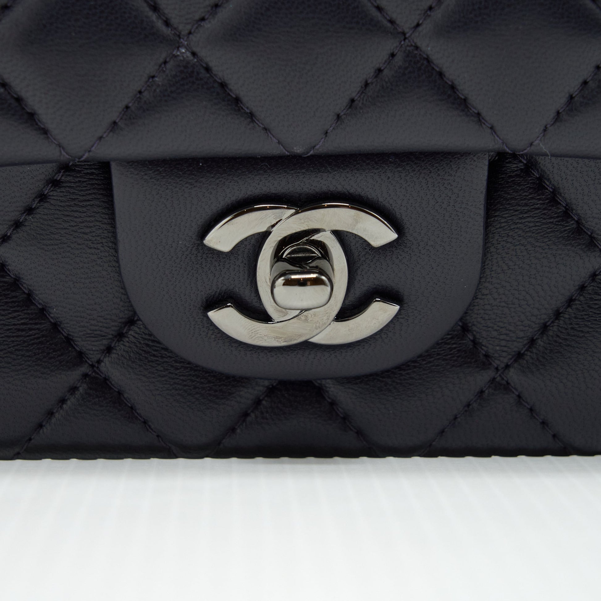Chanel Mini Rectangular Lambskin Dark Purple Black Hardware