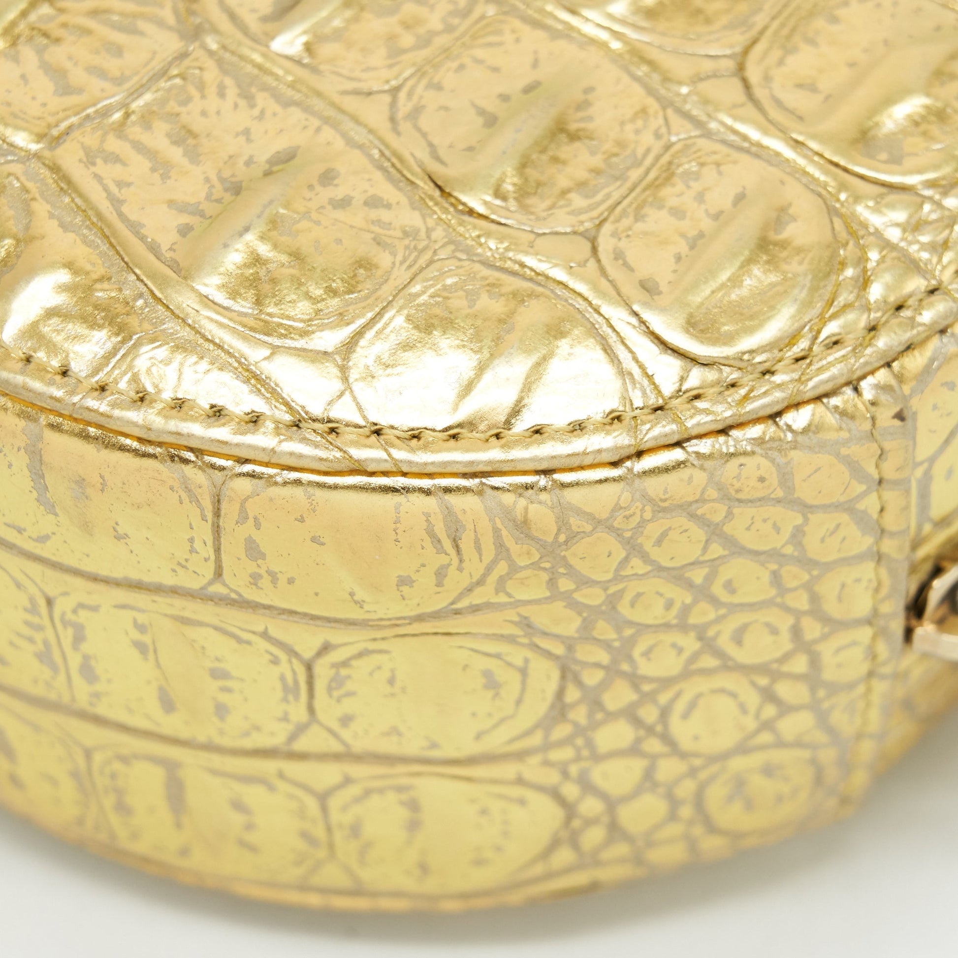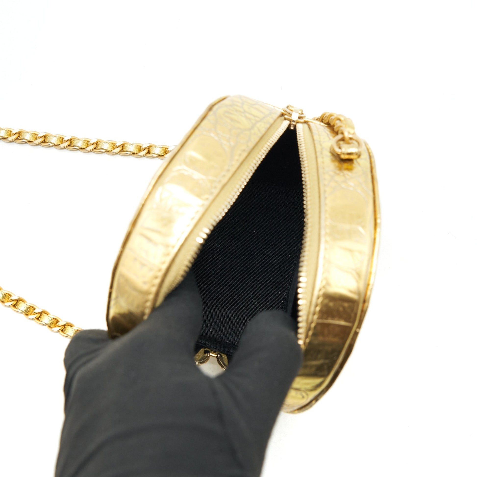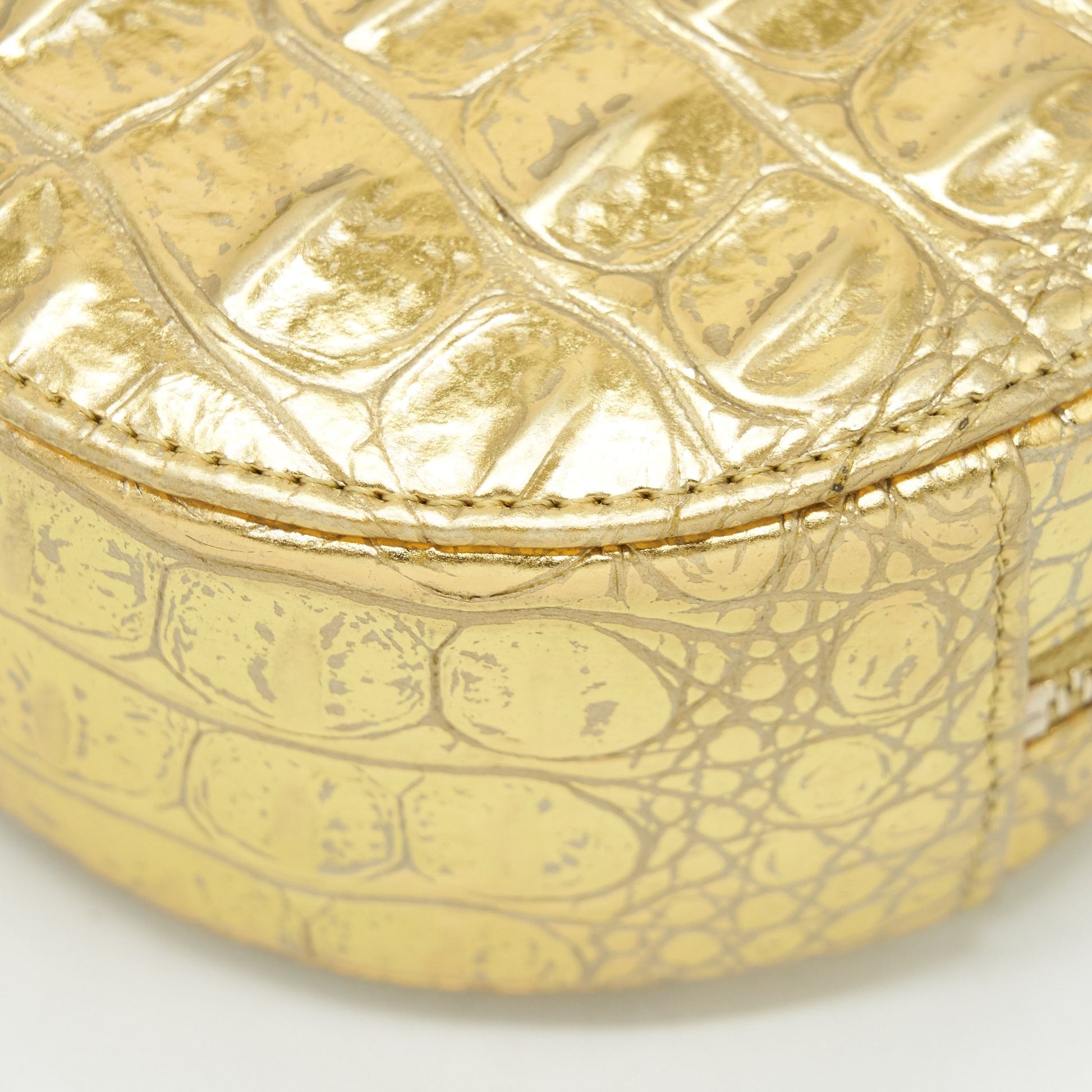 Chanel mini Round Vanity with chain Croc Embossed leather Gold GHW
