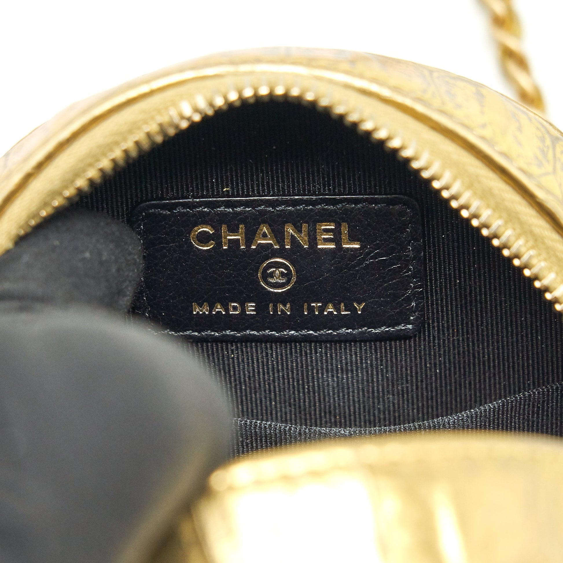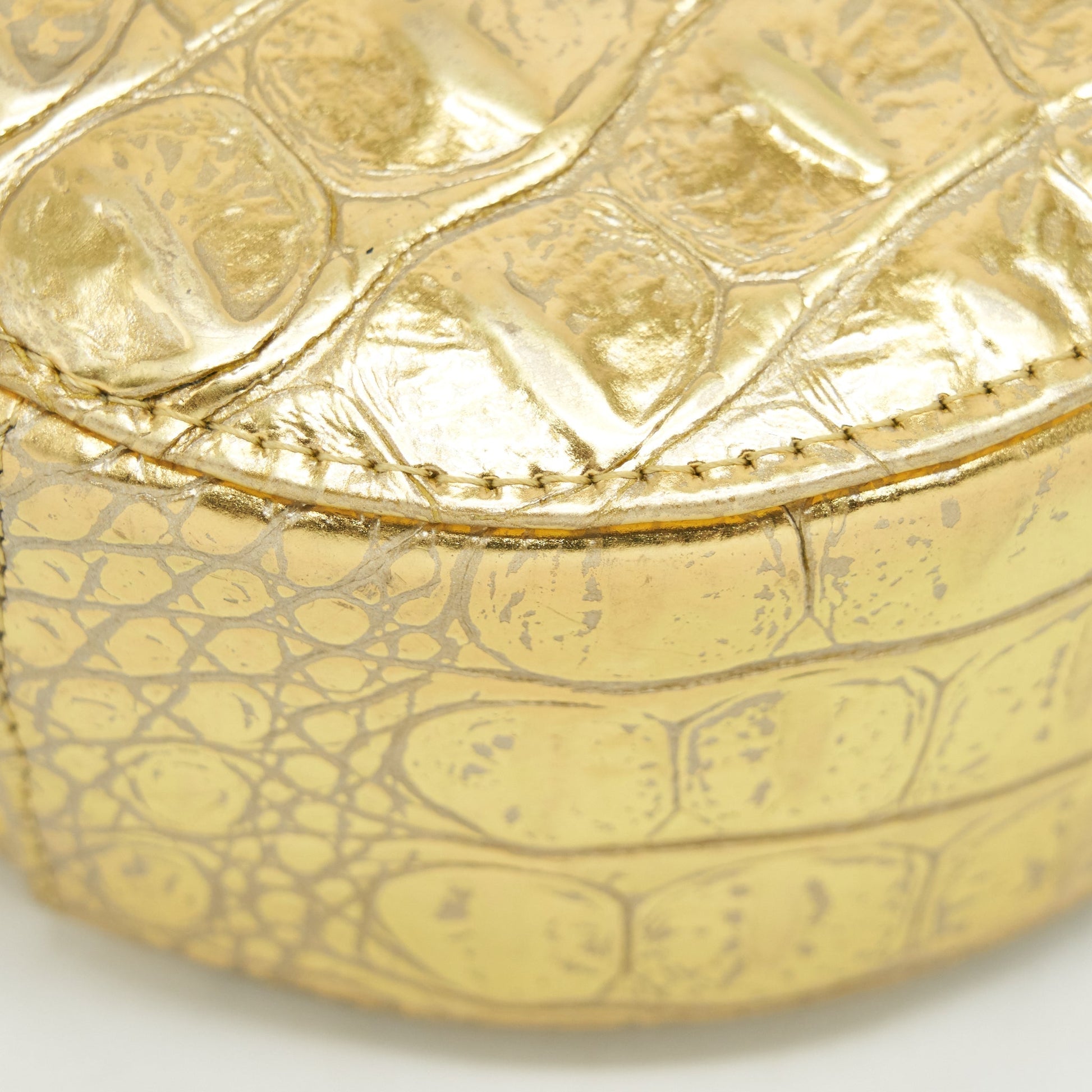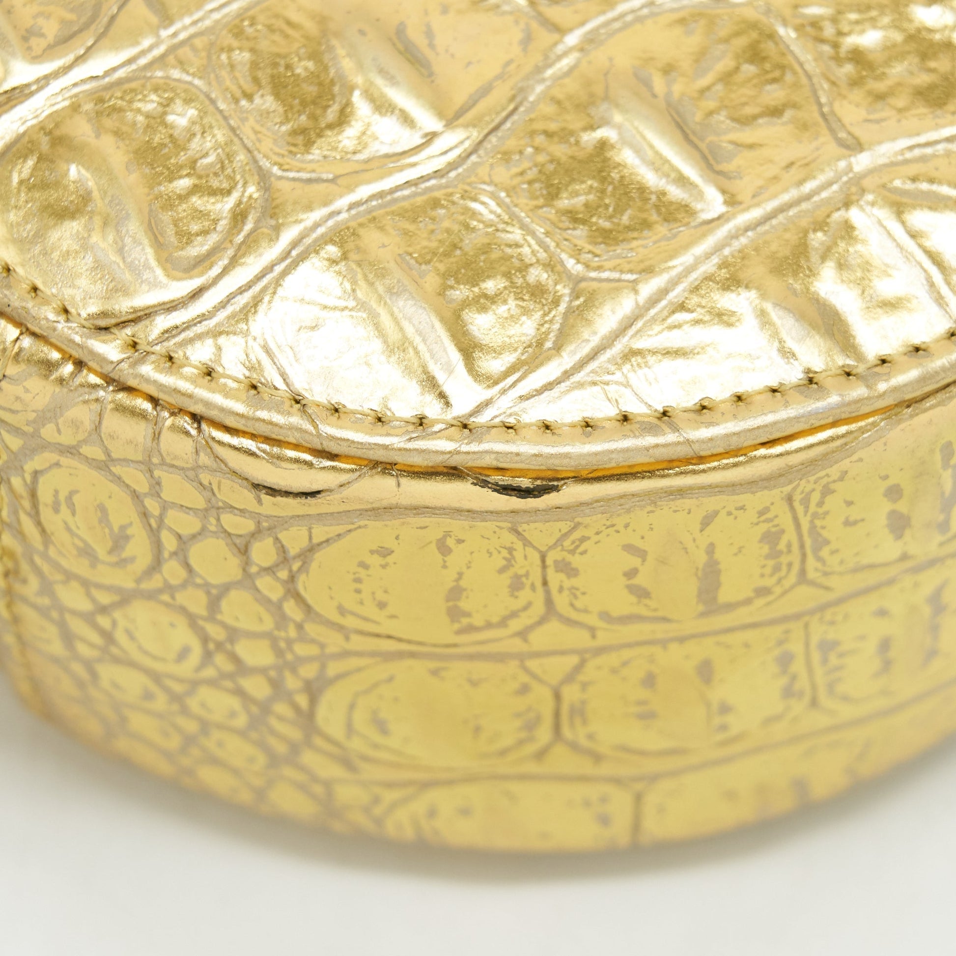 Chanel mini Round Vanity with chain Croc Embossed leather Gold GHW