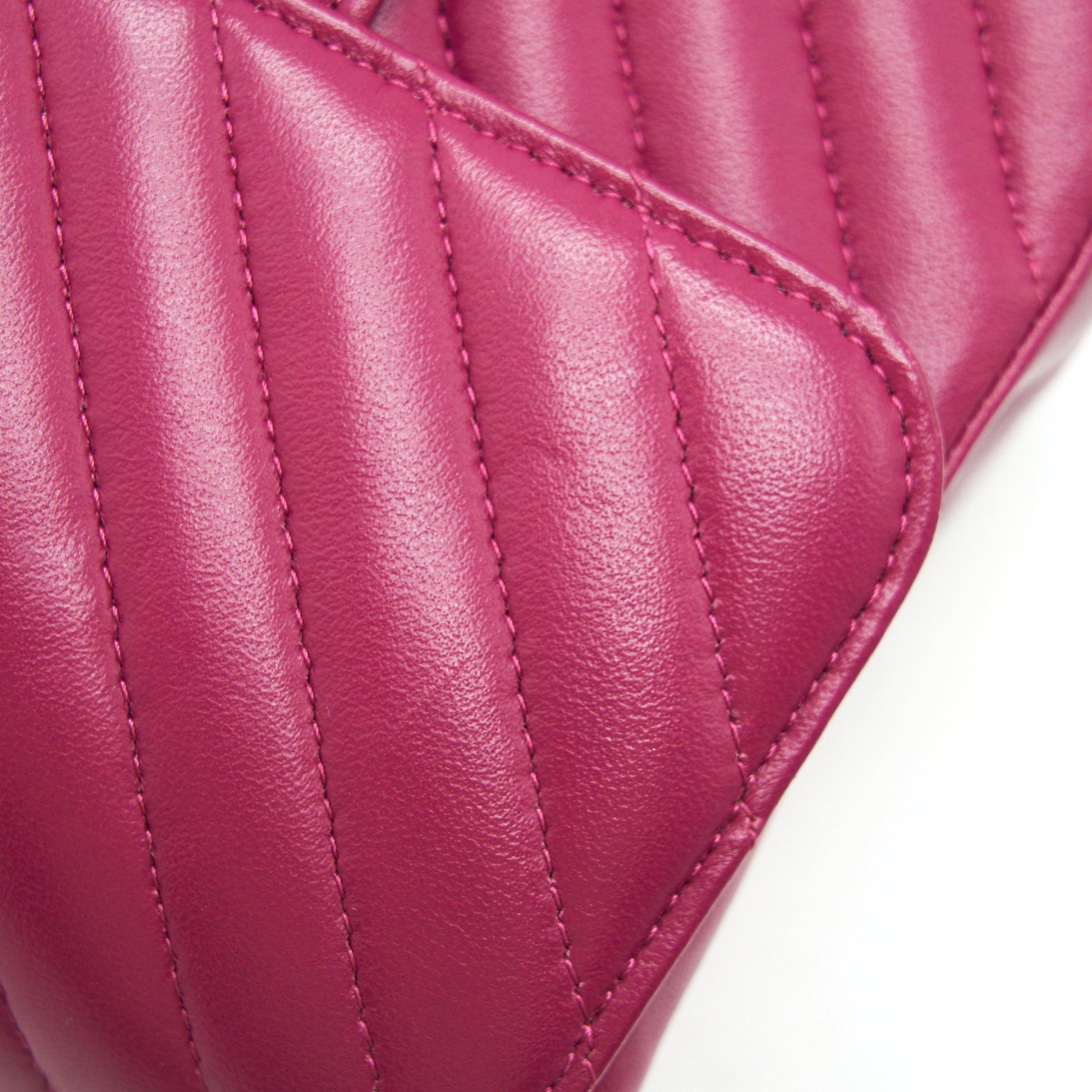 CHANEL MINI SQUARE CHEVRON RASPBERRY RED LAMBSKIN GHW