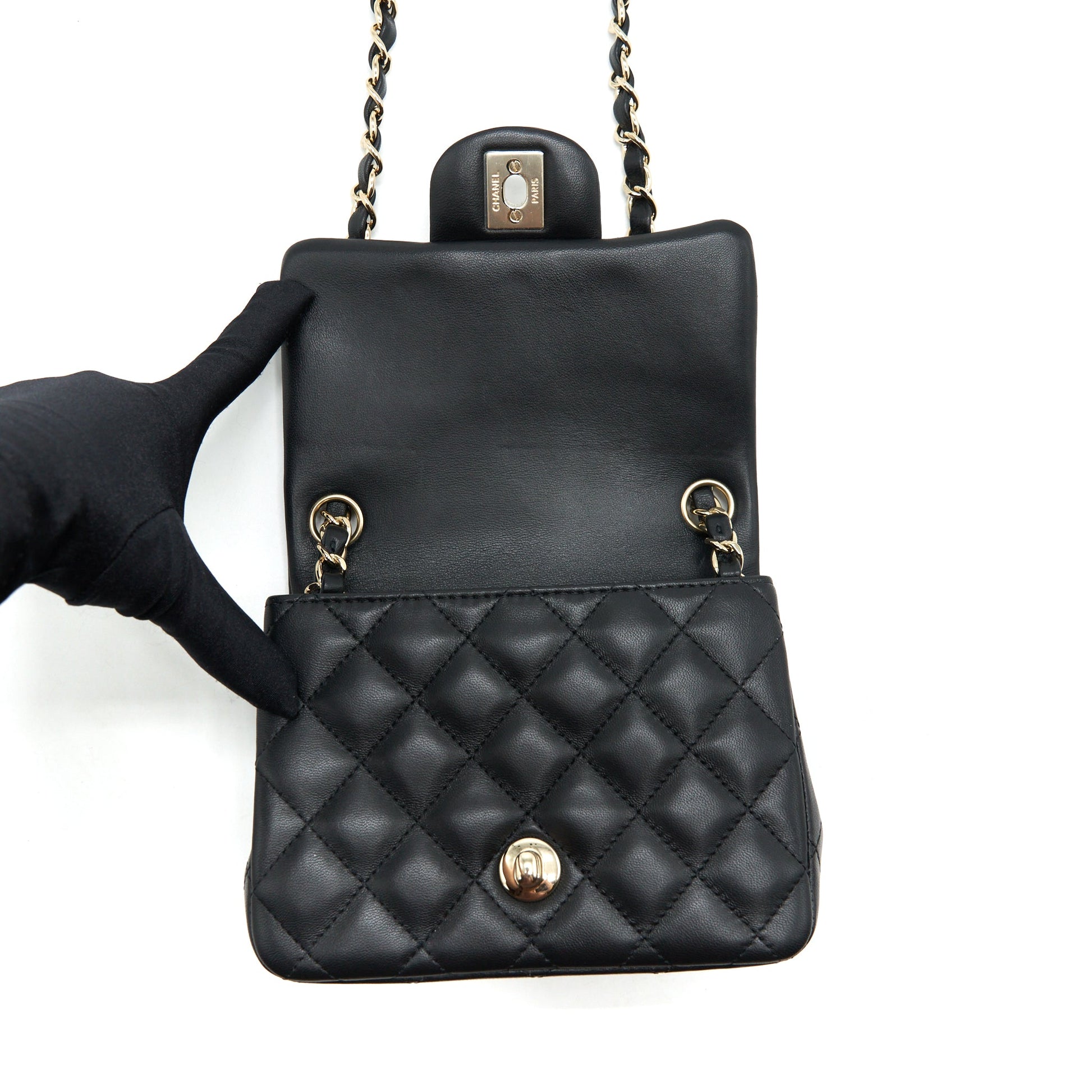 Chanel Mini Square Flap Bag Lambskin Black LGHW