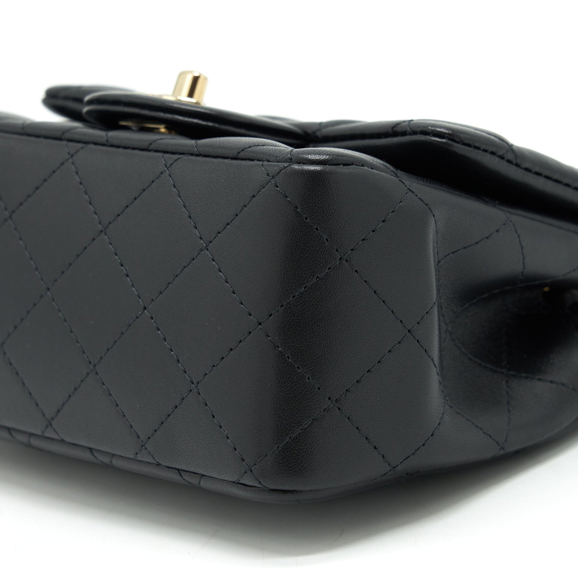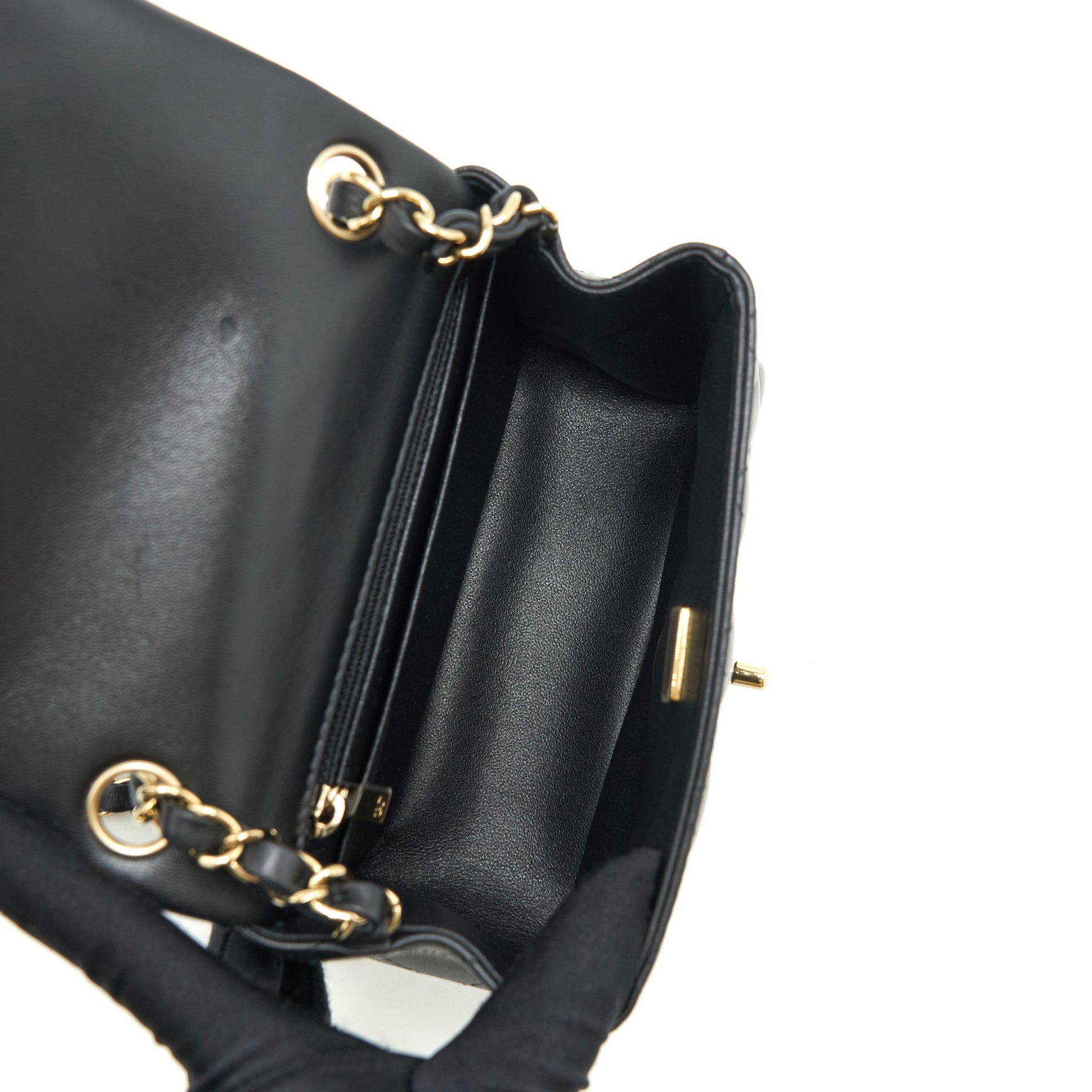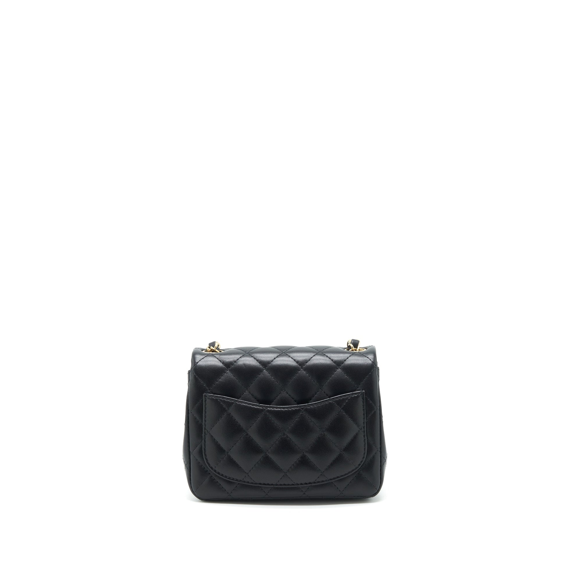 Chanel Mini Square Flap Bag Lambskin Black LGHW (Microchip)