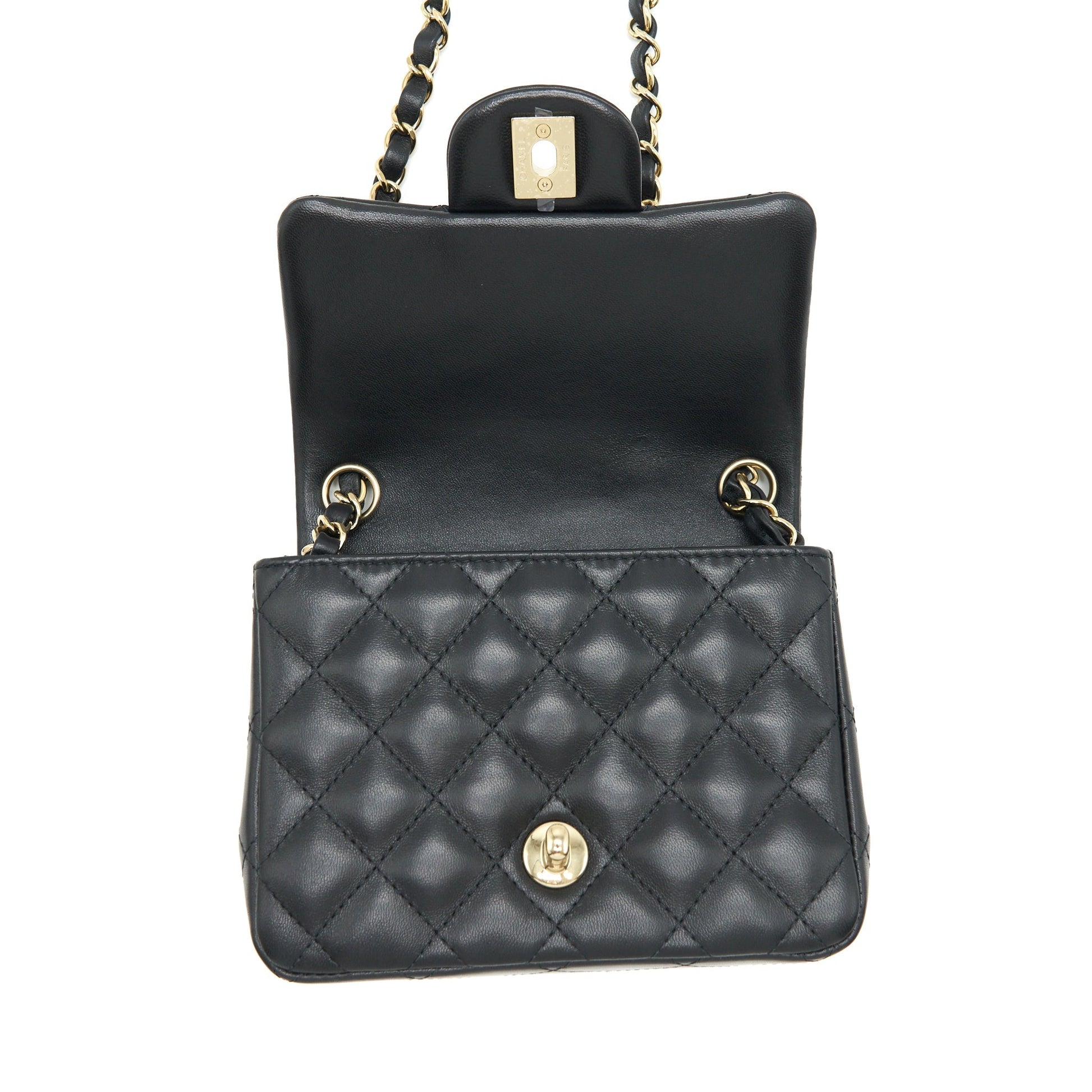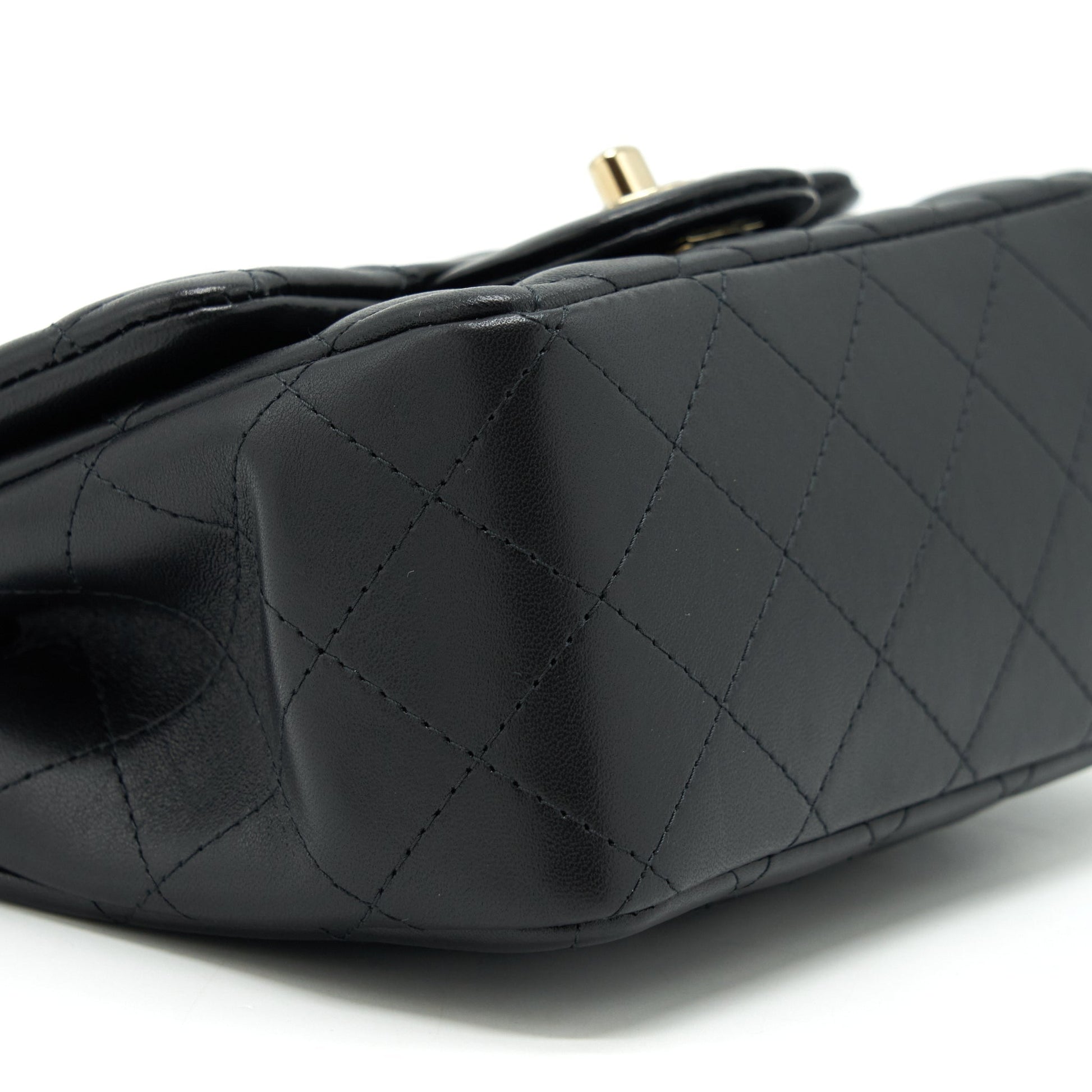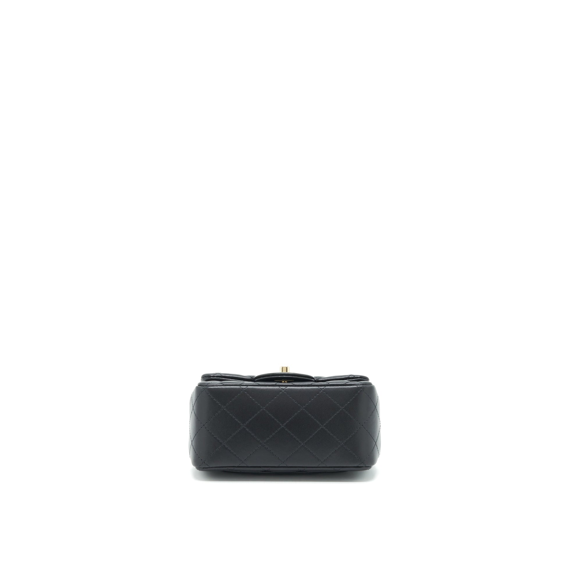 Chanel Mini Square Flap Bag Lambskin Black LGHW (Microchip)