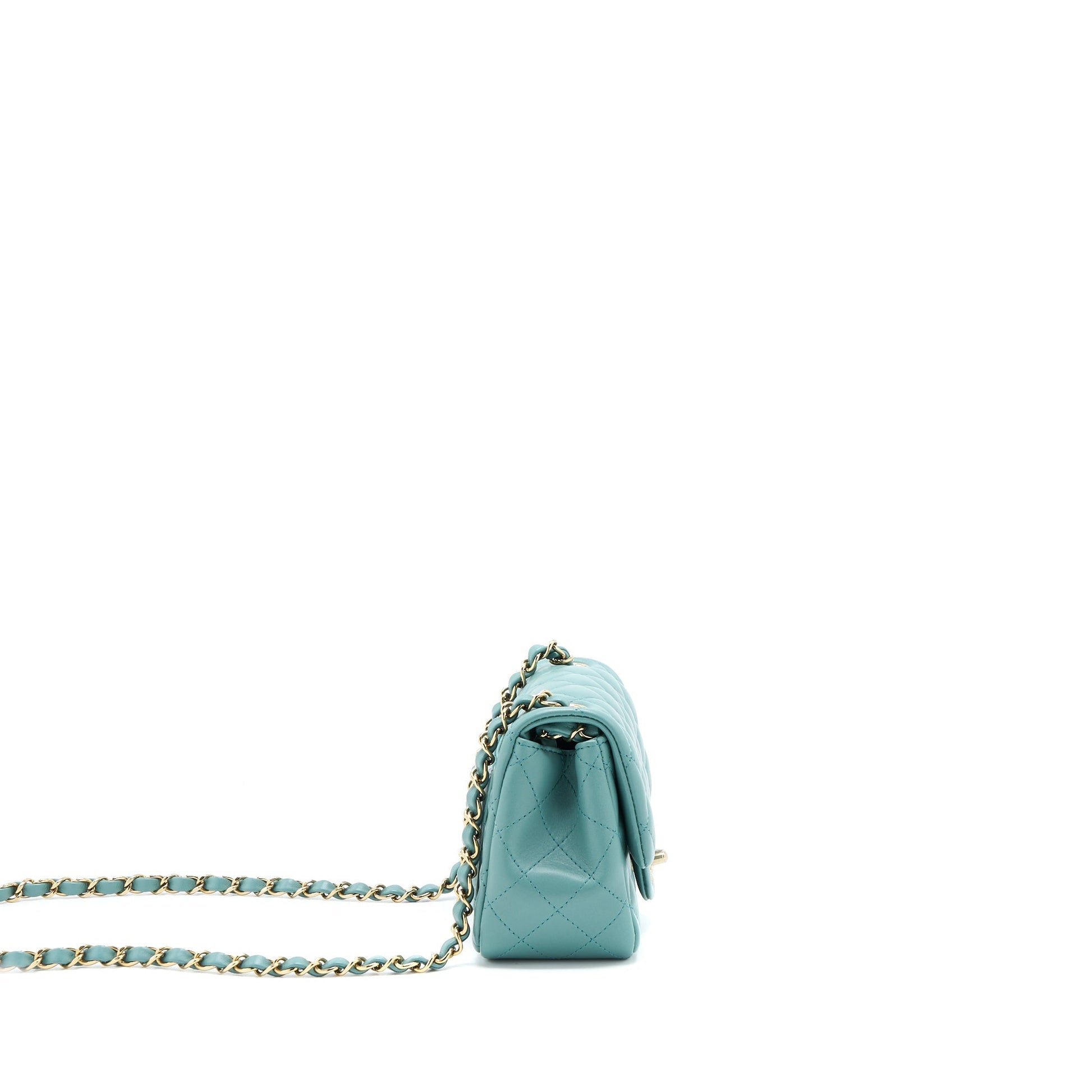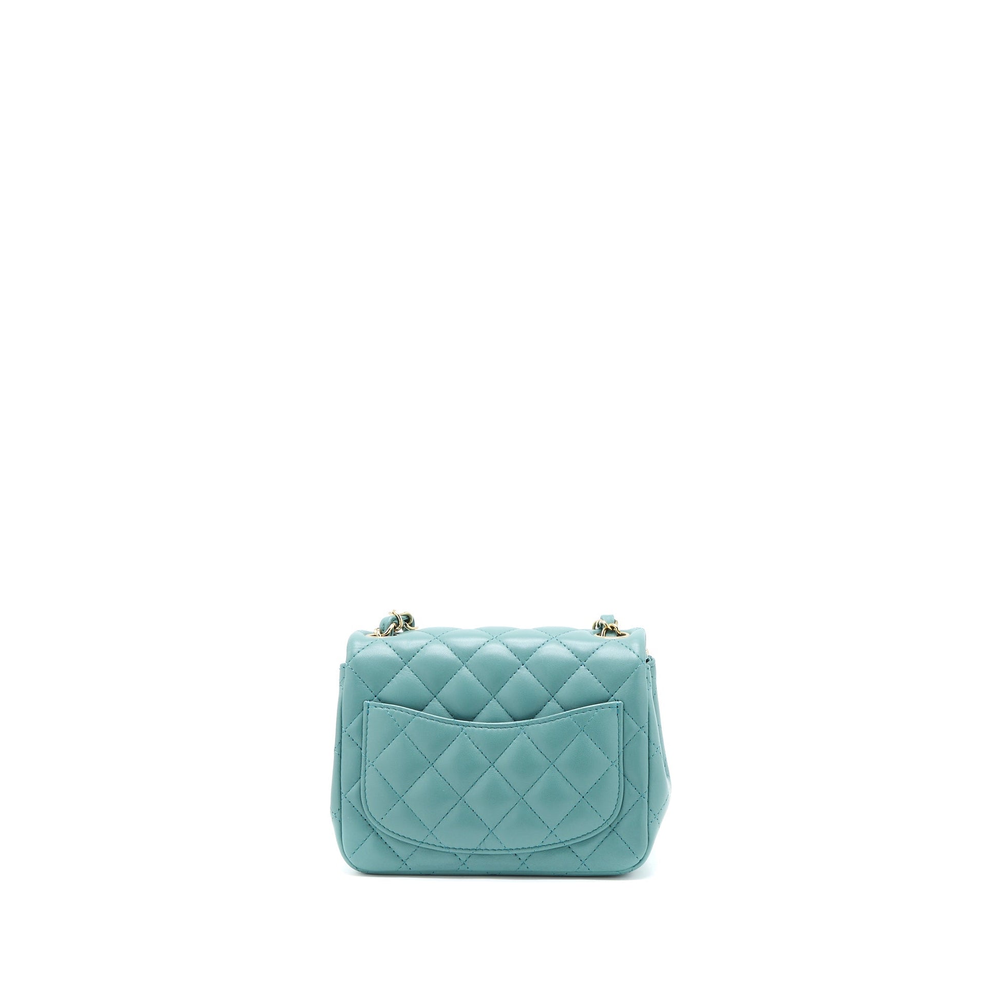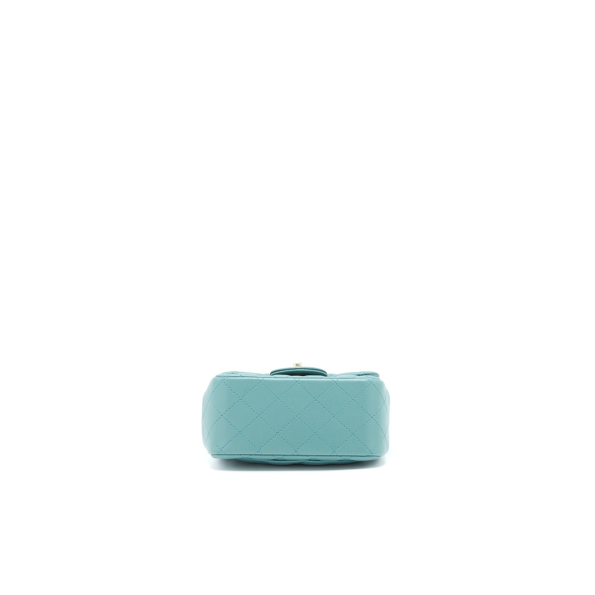 Chanel Mini Square Flap Bag Lambskin Light Green LGHW (Microchip)