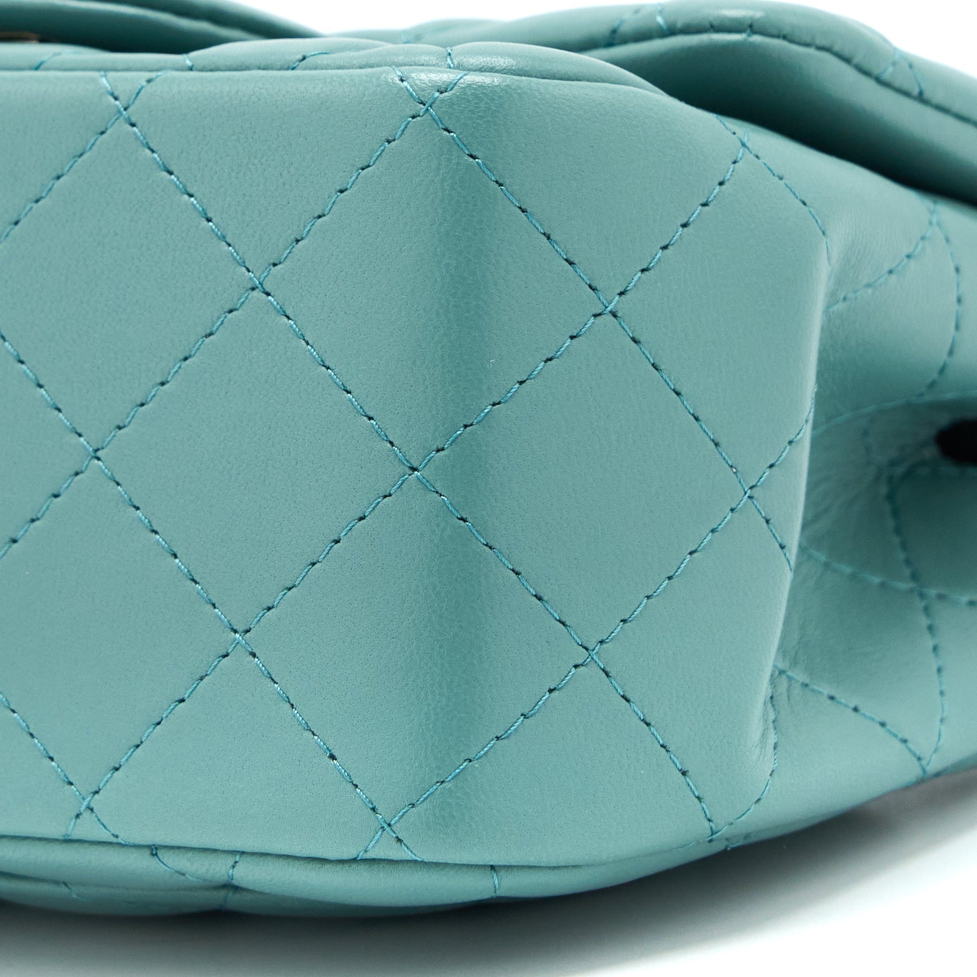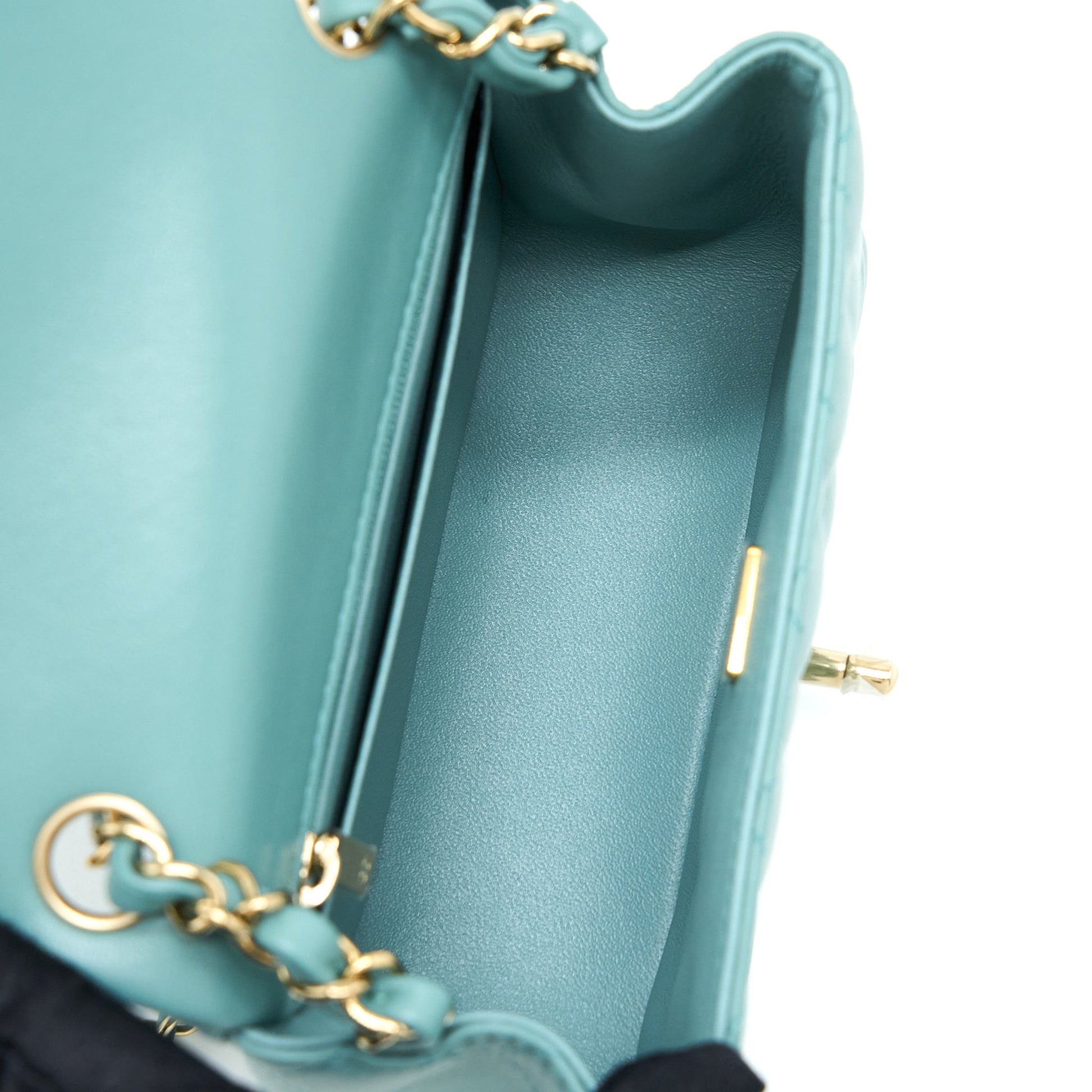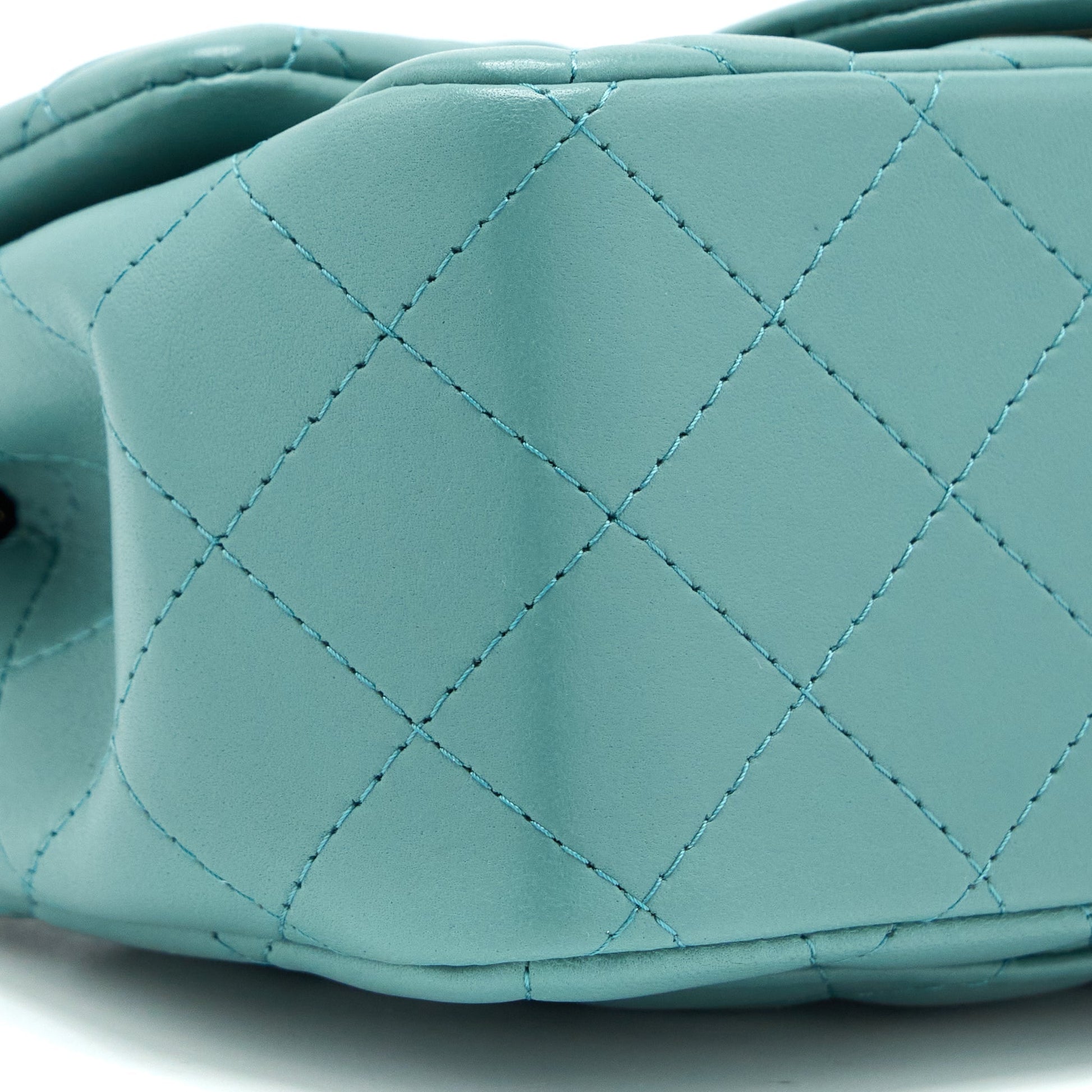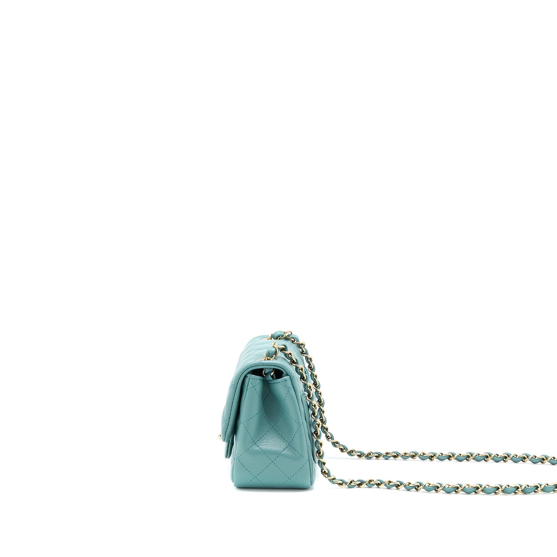 Chanel Mini Square Flap Bag Lambskin Light Green LGHW (Microchip)
