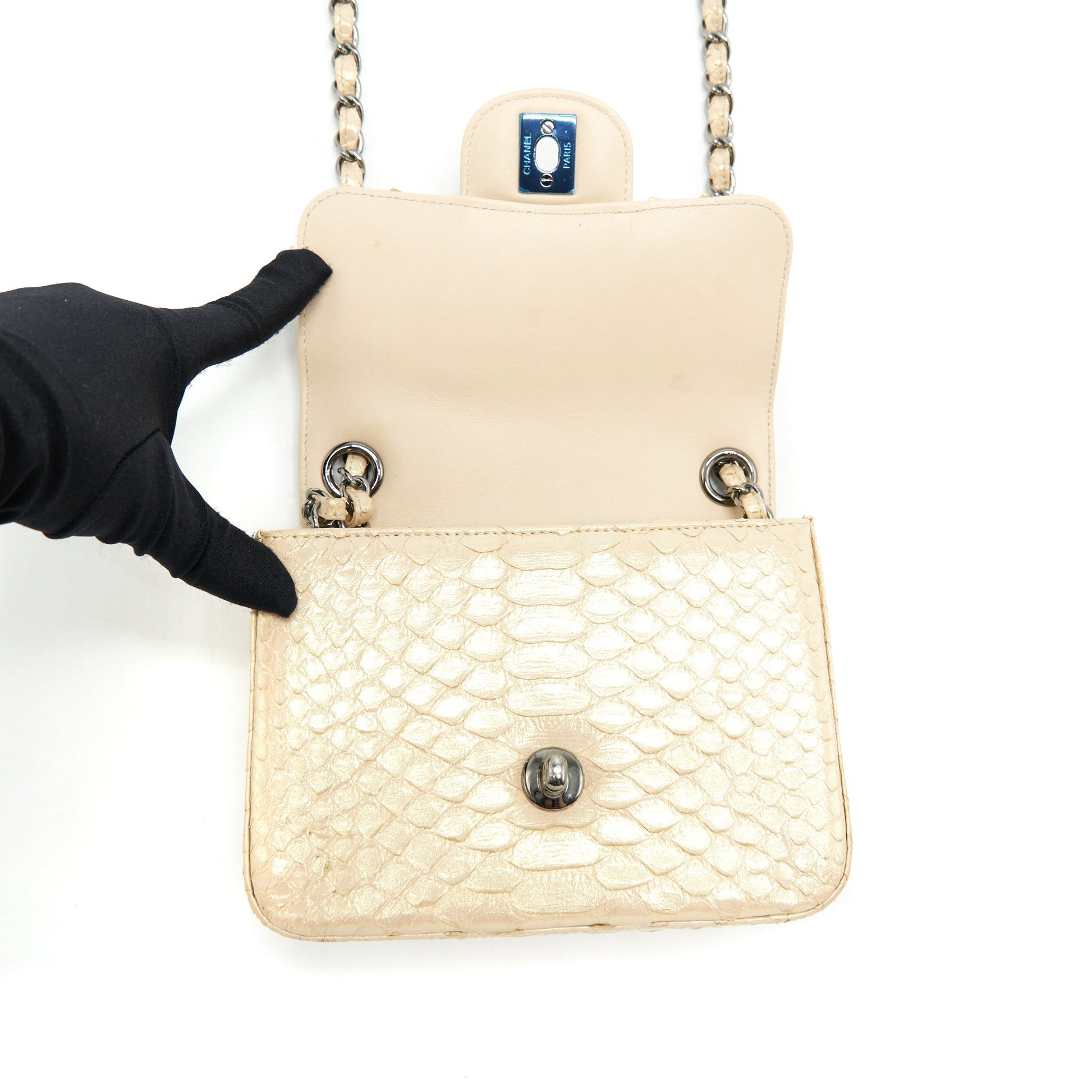 Chanel Mini Square Flap Bag Python Iridescent Light Beige SHW