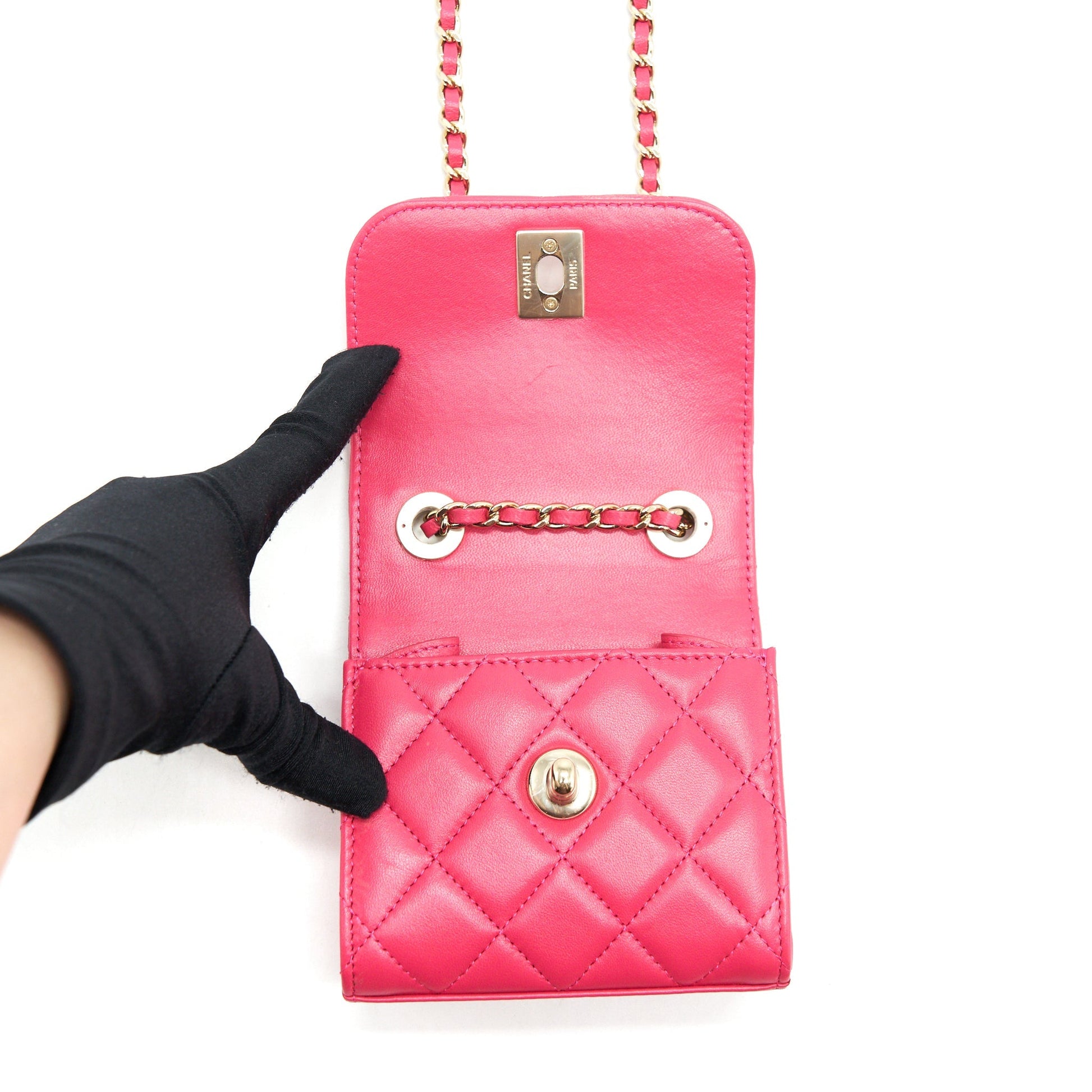 Chanel mini trendy cc chain wallet lambskin hot pink LGHW