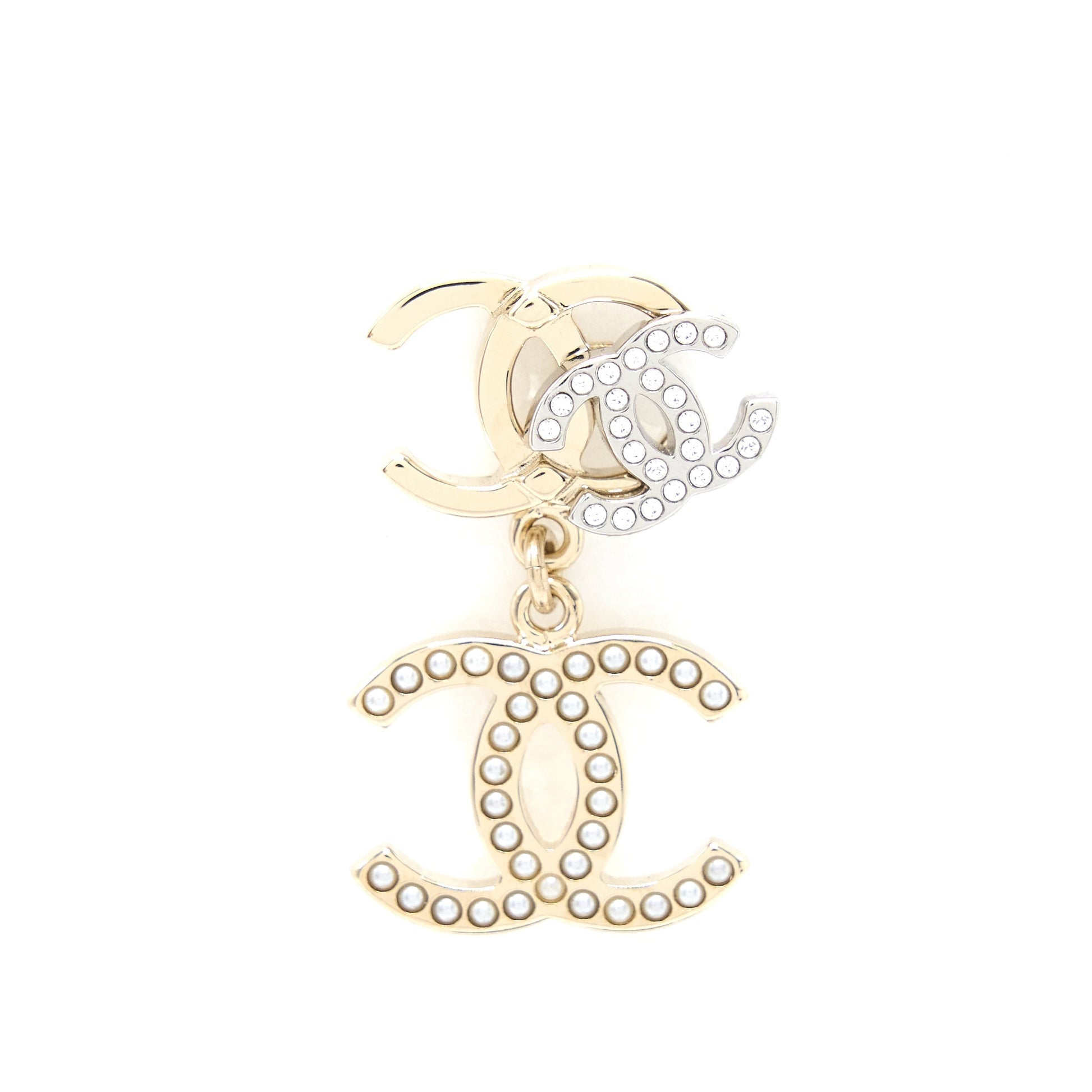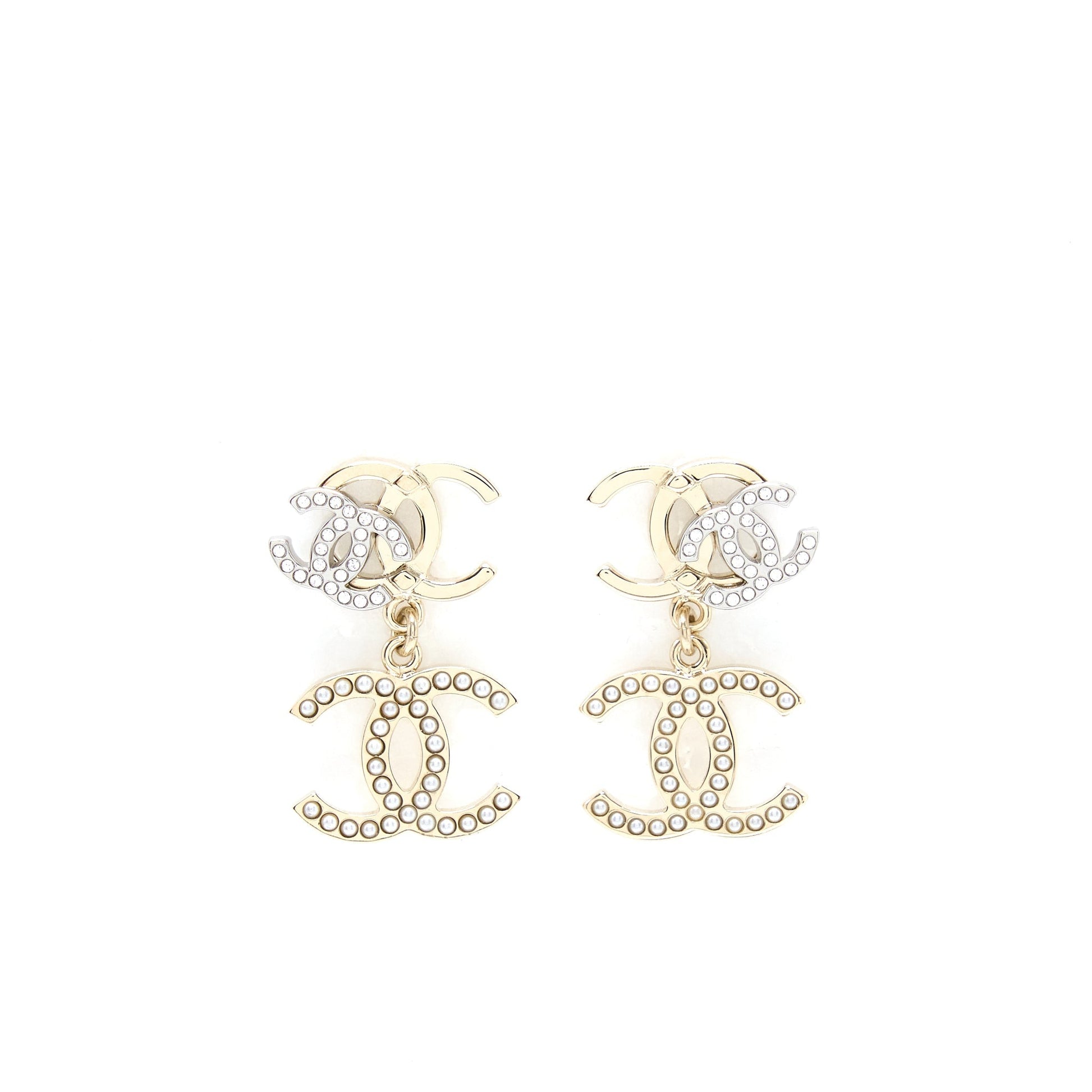 Chanel Multi CC Drop Earrings With Crystal And Pearl