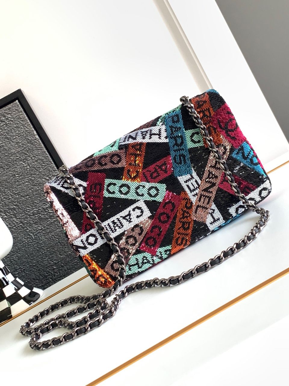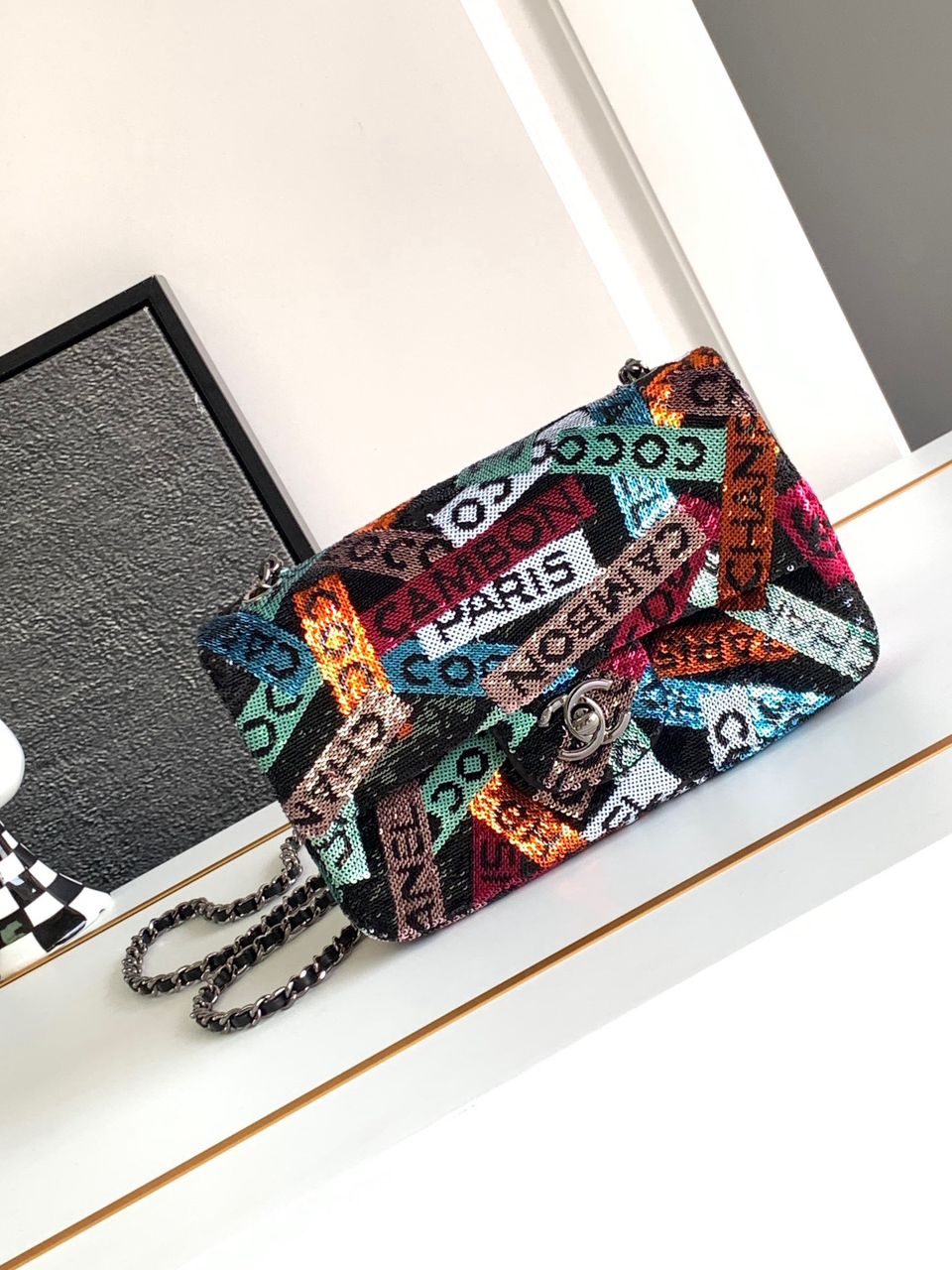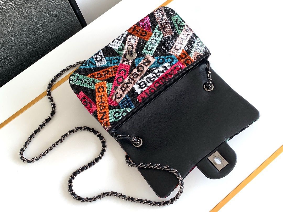CHANEL Multicolor Sequins Half Small Flap, Multicolor
