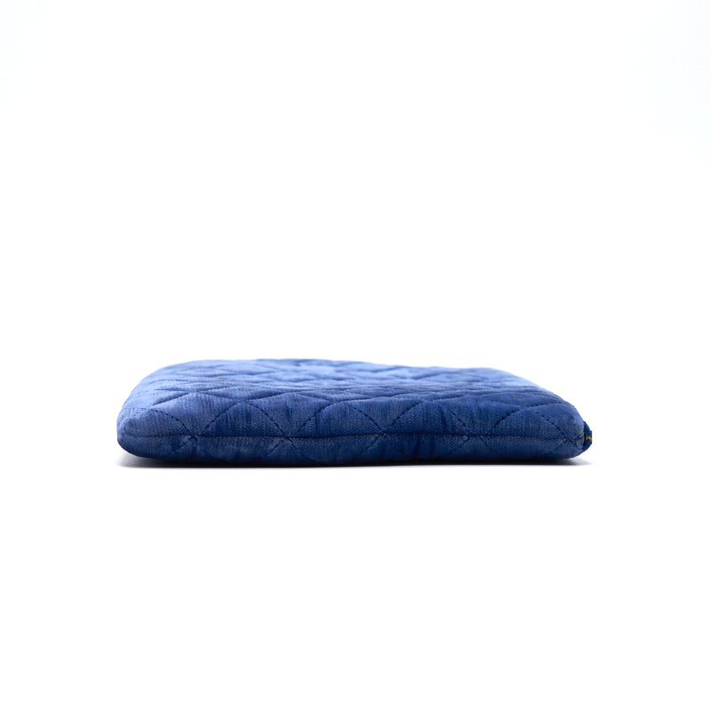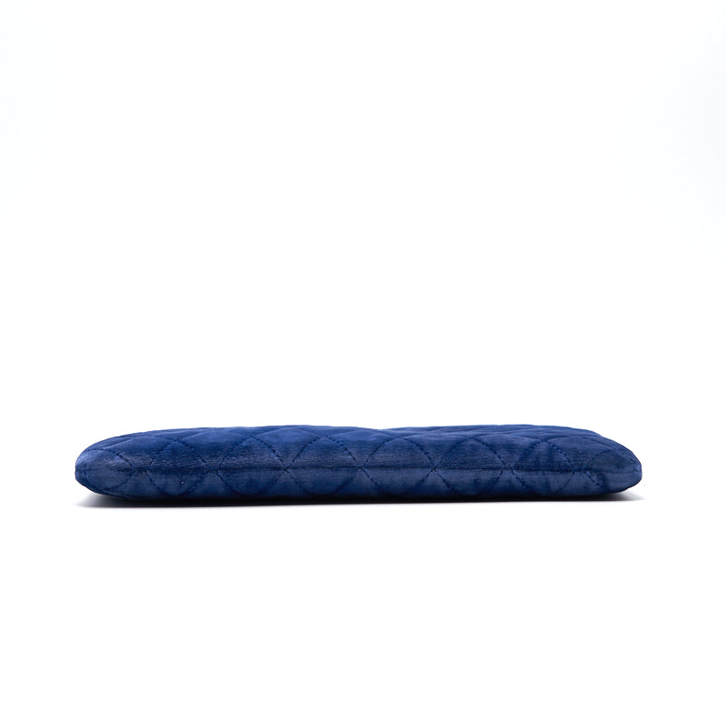 Chanel Navy Velvet Classic Quilted Medium O Case Clutch Purse Bag