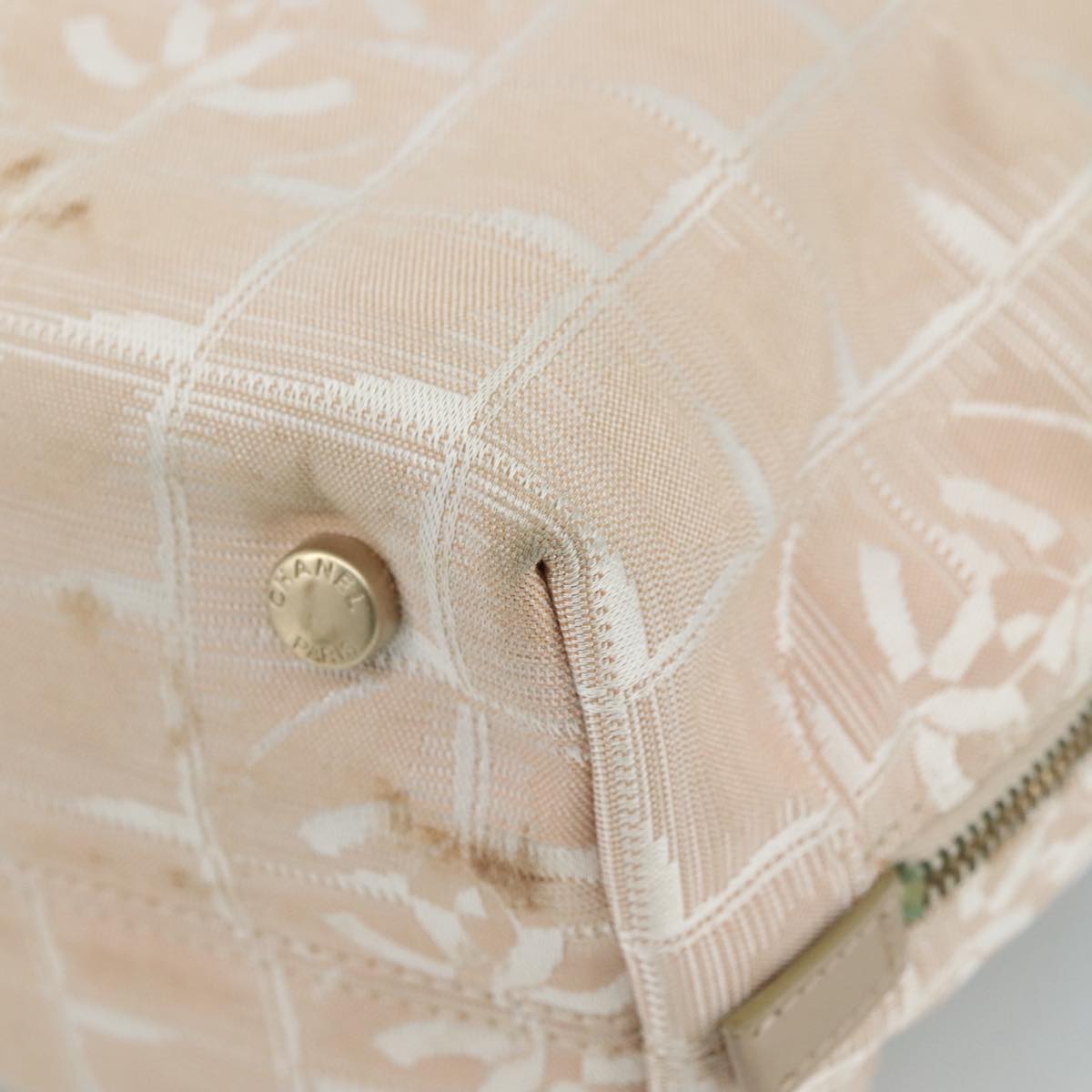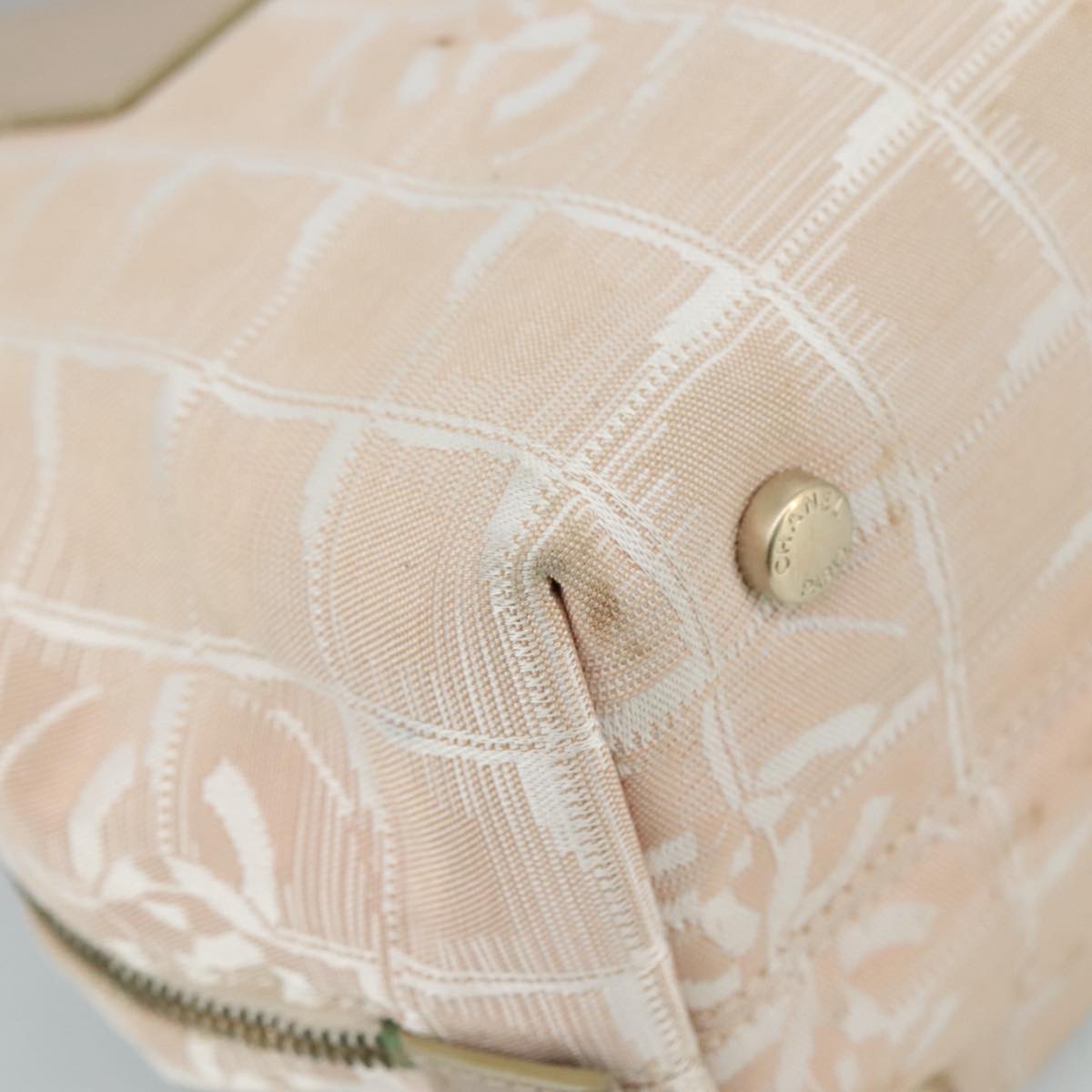 CHANEL New Travel Line Hand Bag Nylon Leather Beige Gold CC bs20923