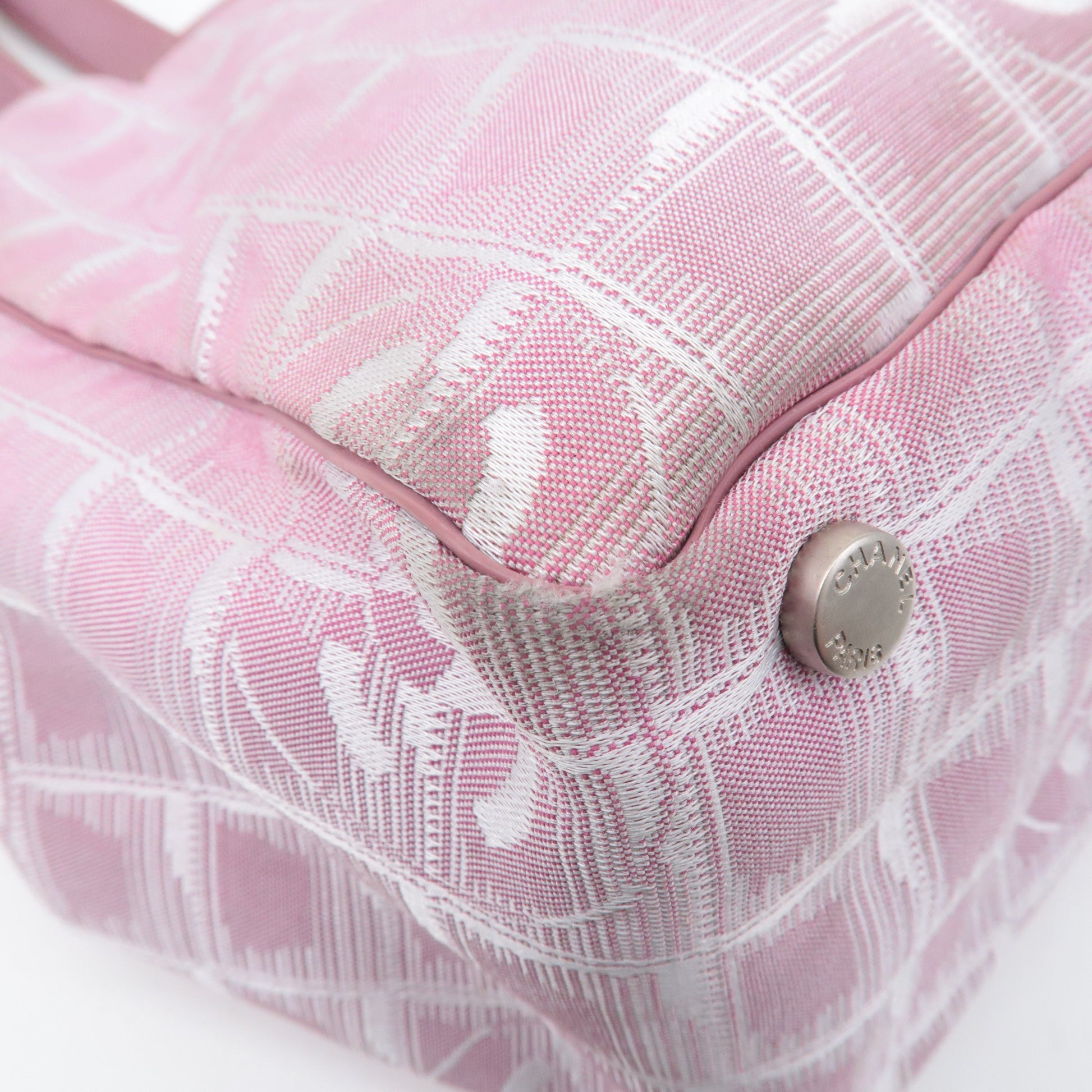 CHANEL New Travel Line Nylon Jacquard Leather Tote Bag MM A15991