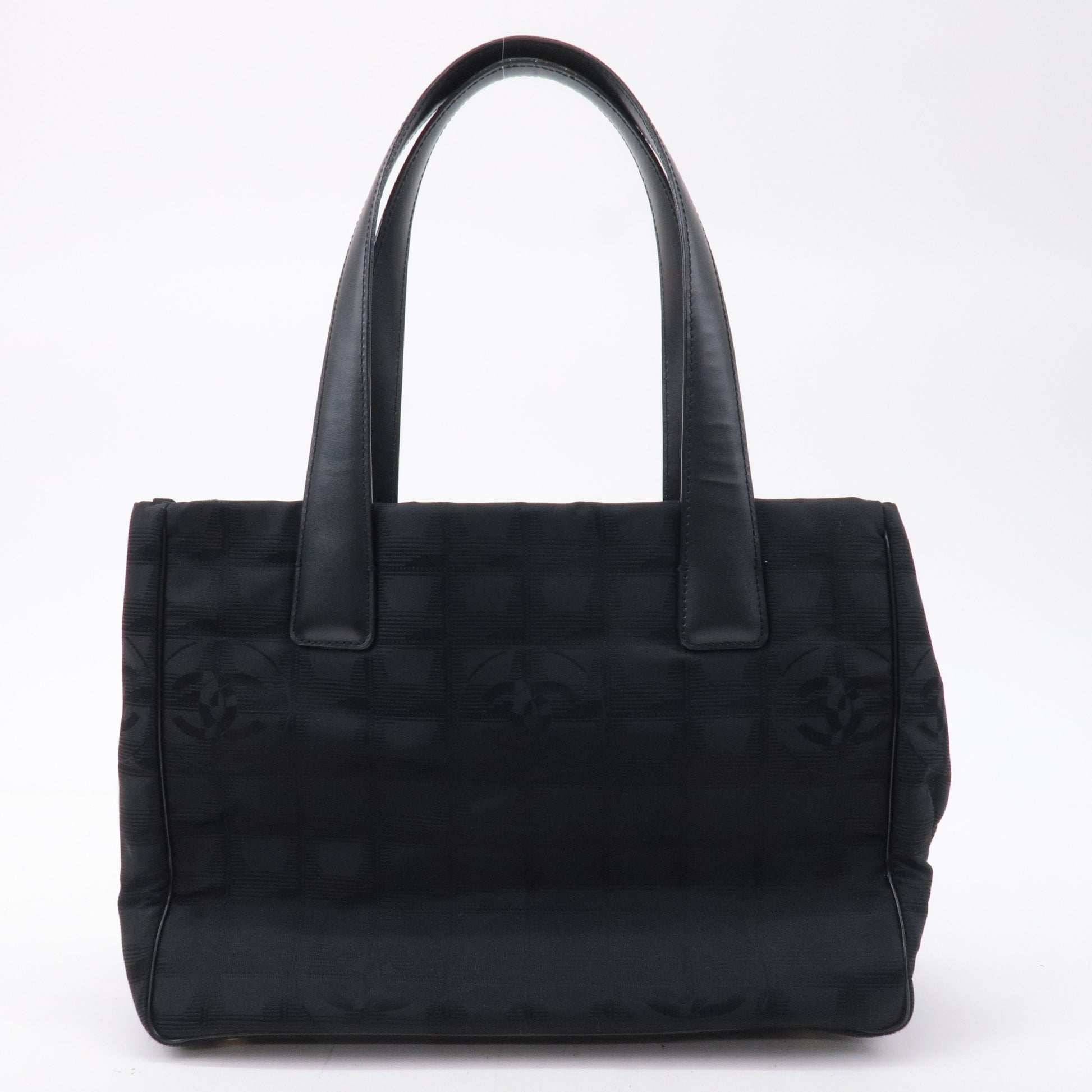 CHANEL New Travel Line Nylon Jacquard PM Tote Bag Black A20457