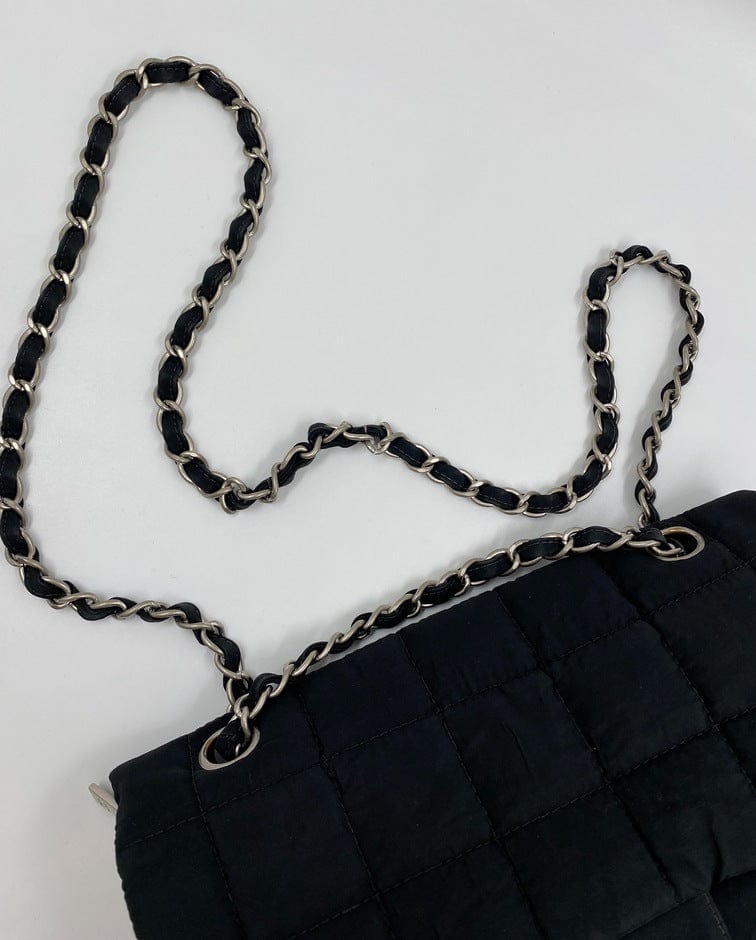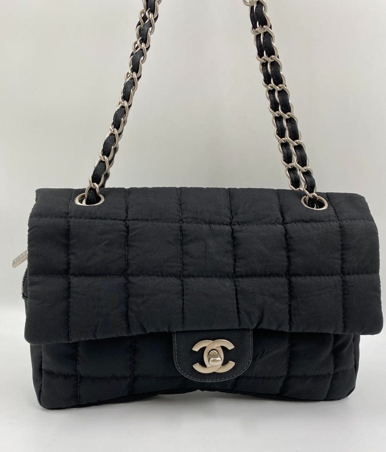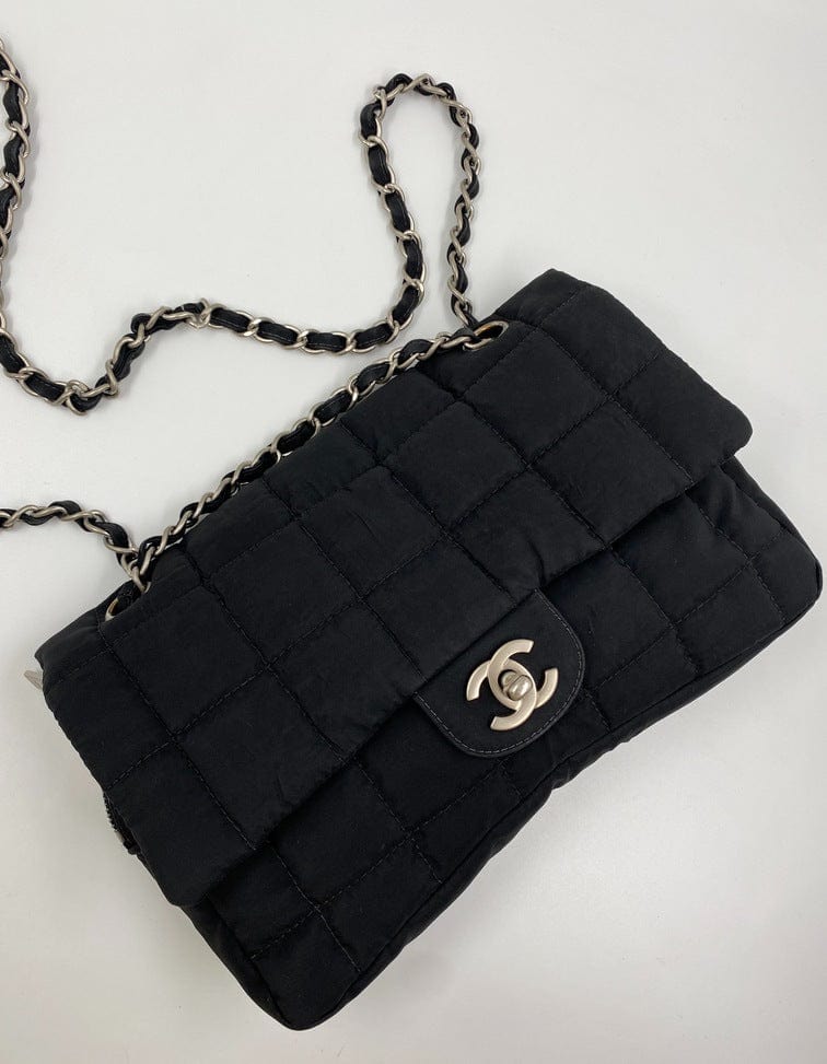 Chanel Black Nylon Chocolate Bar Flap Bag