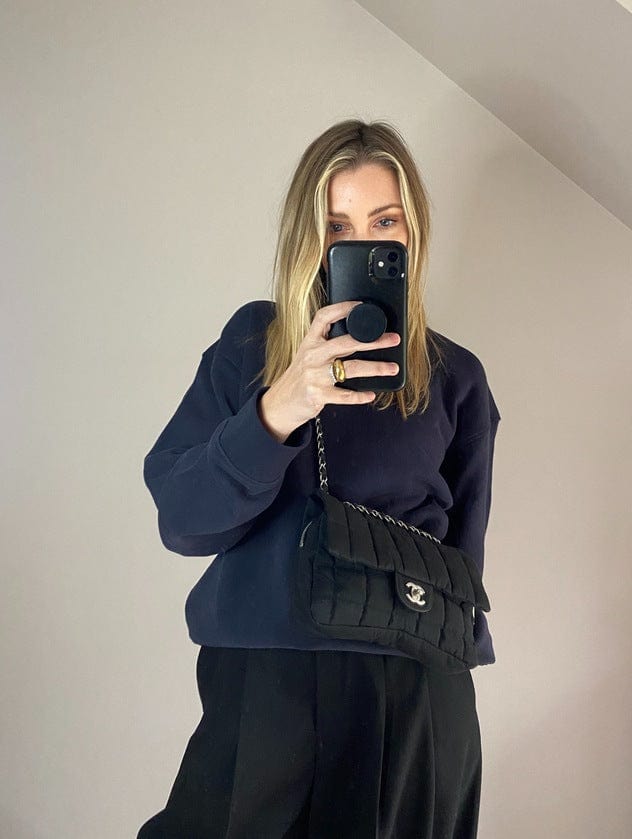 The chain in convertible and can be worn on the shoulder or across the body. At its shortest the drop is 23cm and at its longest the chain drop is 43cm.