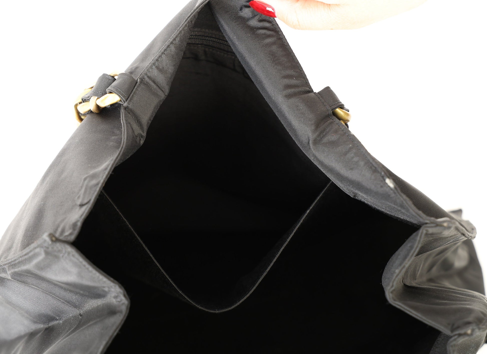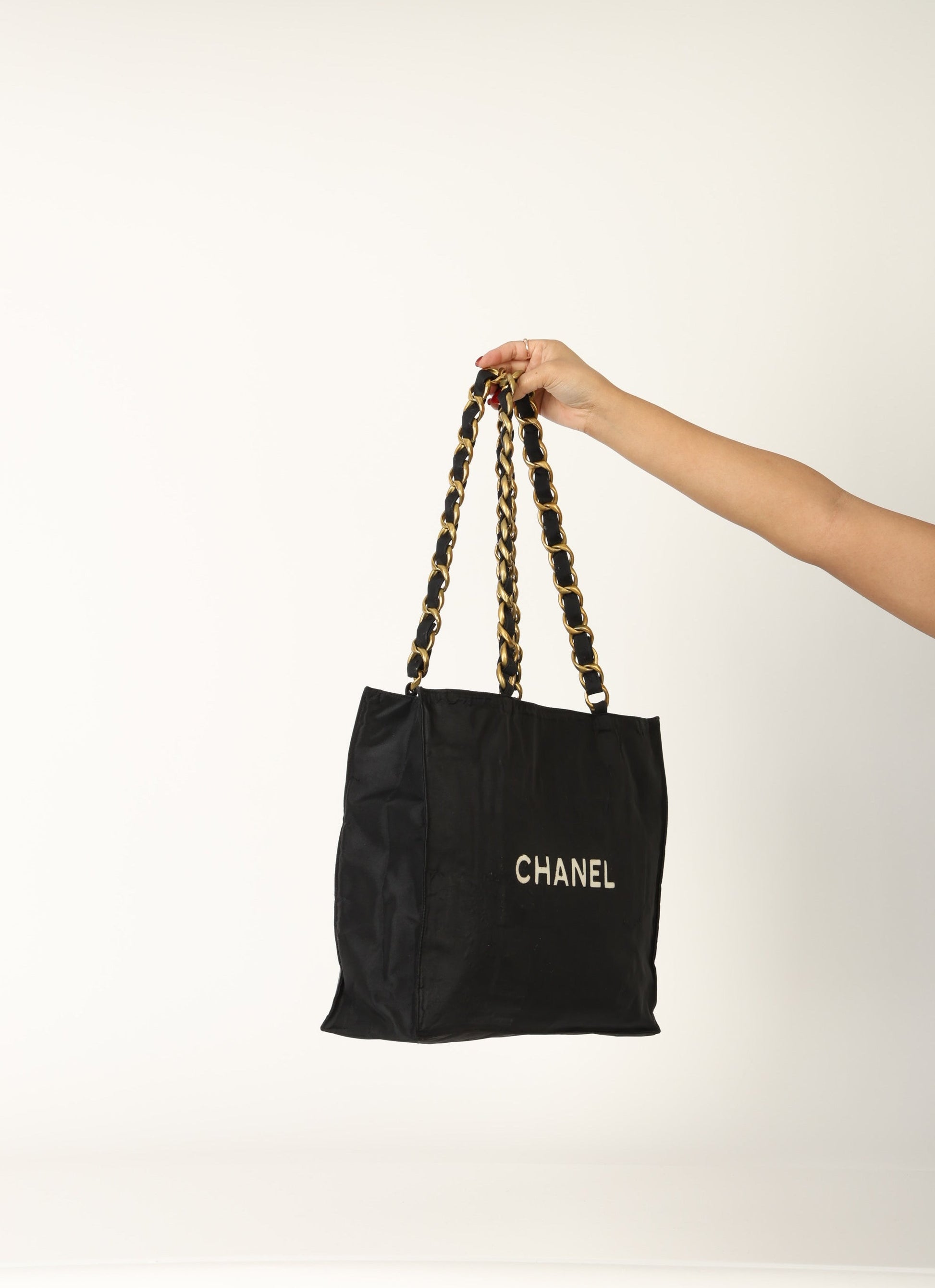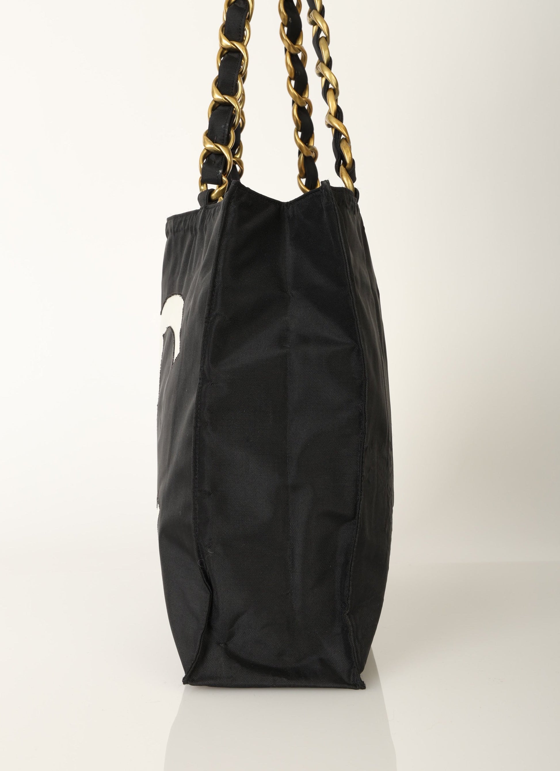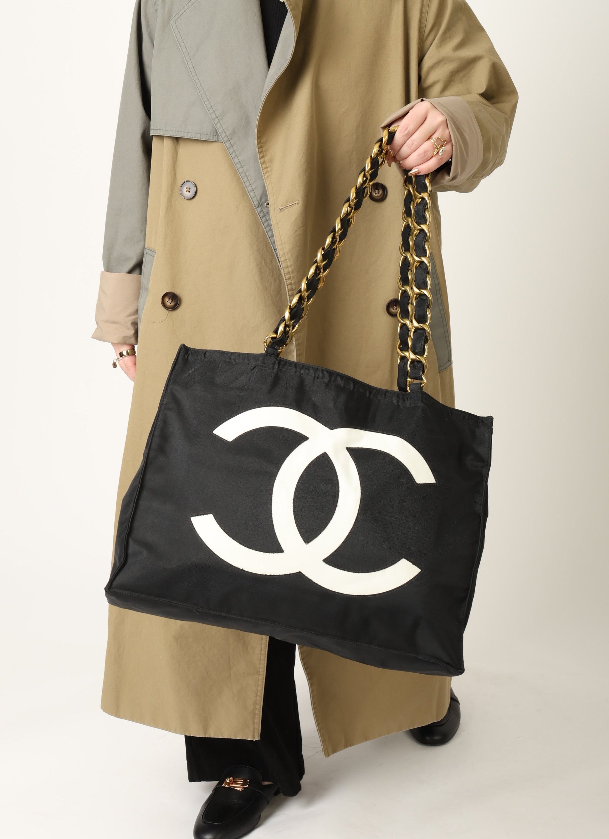 Dropping in the shop is a stunning Chanel Nylon Chunky Chain Tote!?Crafted in the durable nylon material, this tote is extremely spacious and perfect for fitting all of your everyday essentials and more! The large Chanel timeless logo is shown on the front and Chanel in bold white letters is shown on the back. The hardware is crafted from gorgeous 24k gold-plated hardware. Such a great bag to use for travel or a weekend getaway! You can fit your laptop, a book or two, and the rest of your daily essentials.?