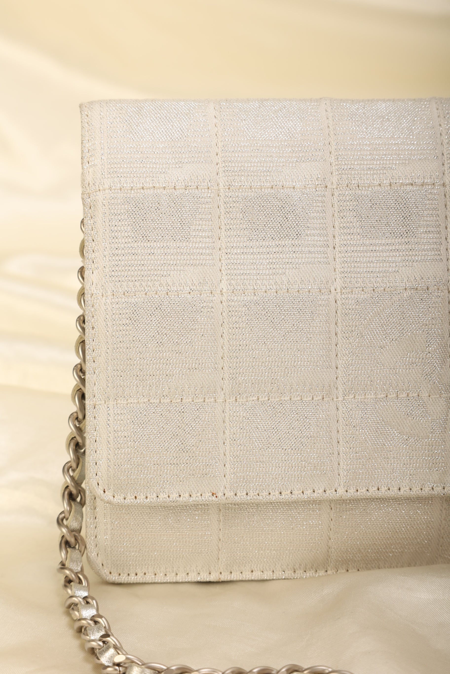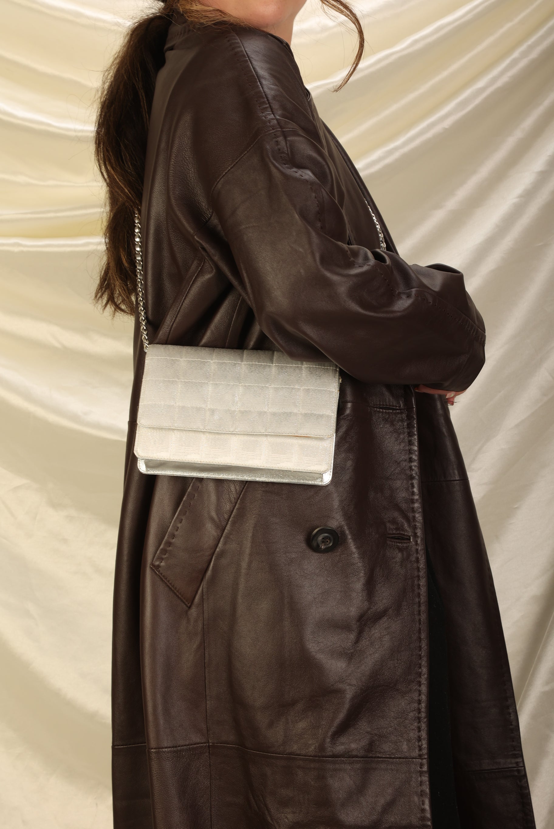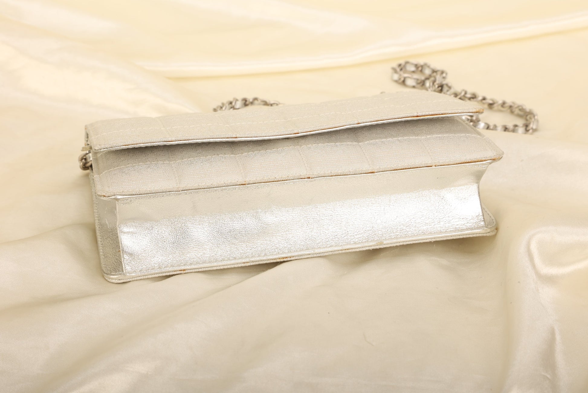 A rare?and timeless?metallic Chanel adorned in the iconic CC logo. Matte?silver?hardware with lambskin leather strap makes this bag easy to style up or down. Can be as a shoulder bag or crossbody!