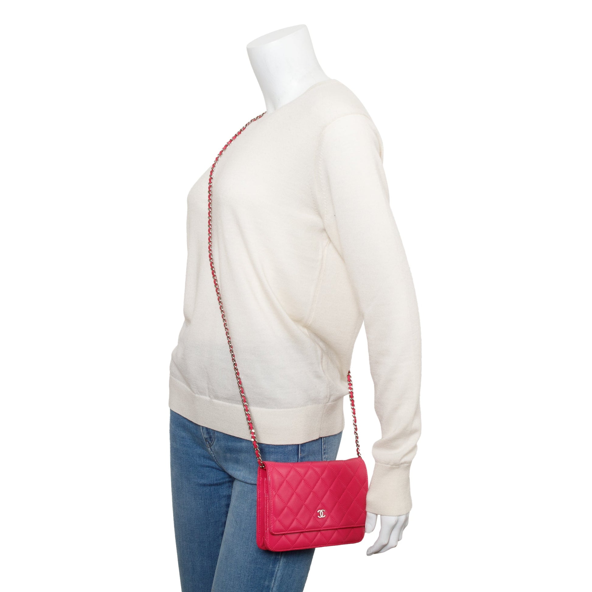 Chanel Pink Quilted Lambskin Leather Classic Wallet on Chain w/ Authenticity Card