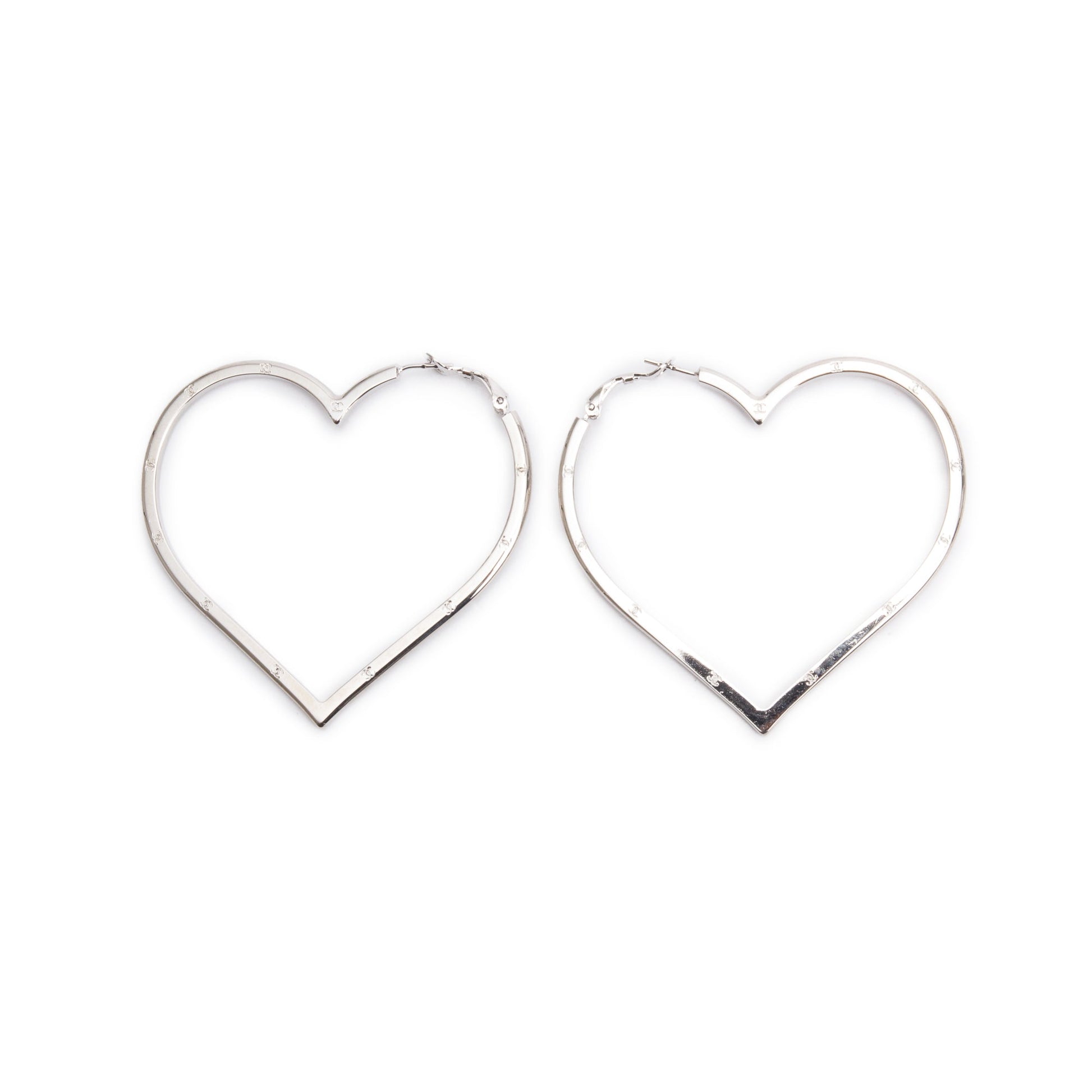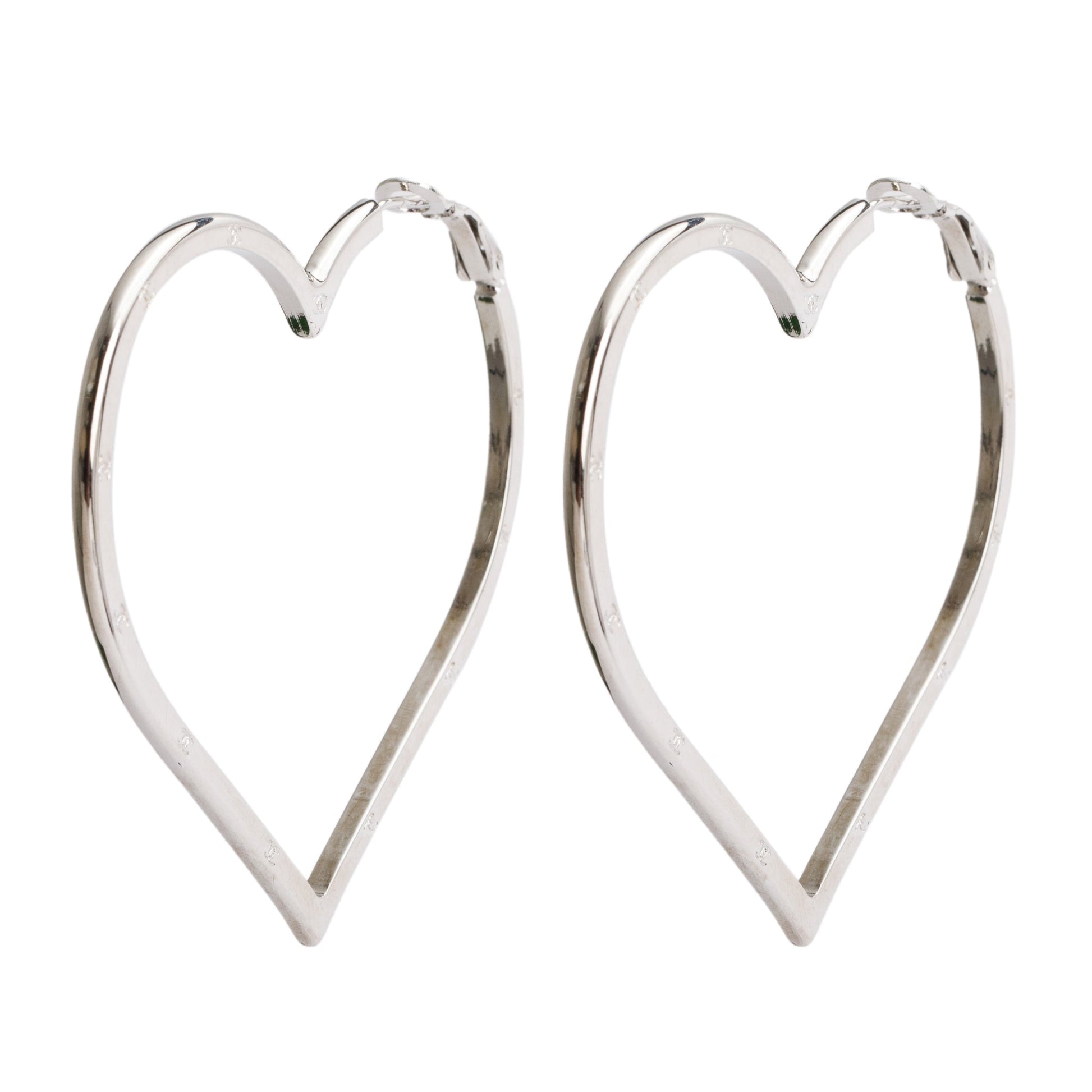 Chanel Palladium Plated CC Heart Hoop Earrings