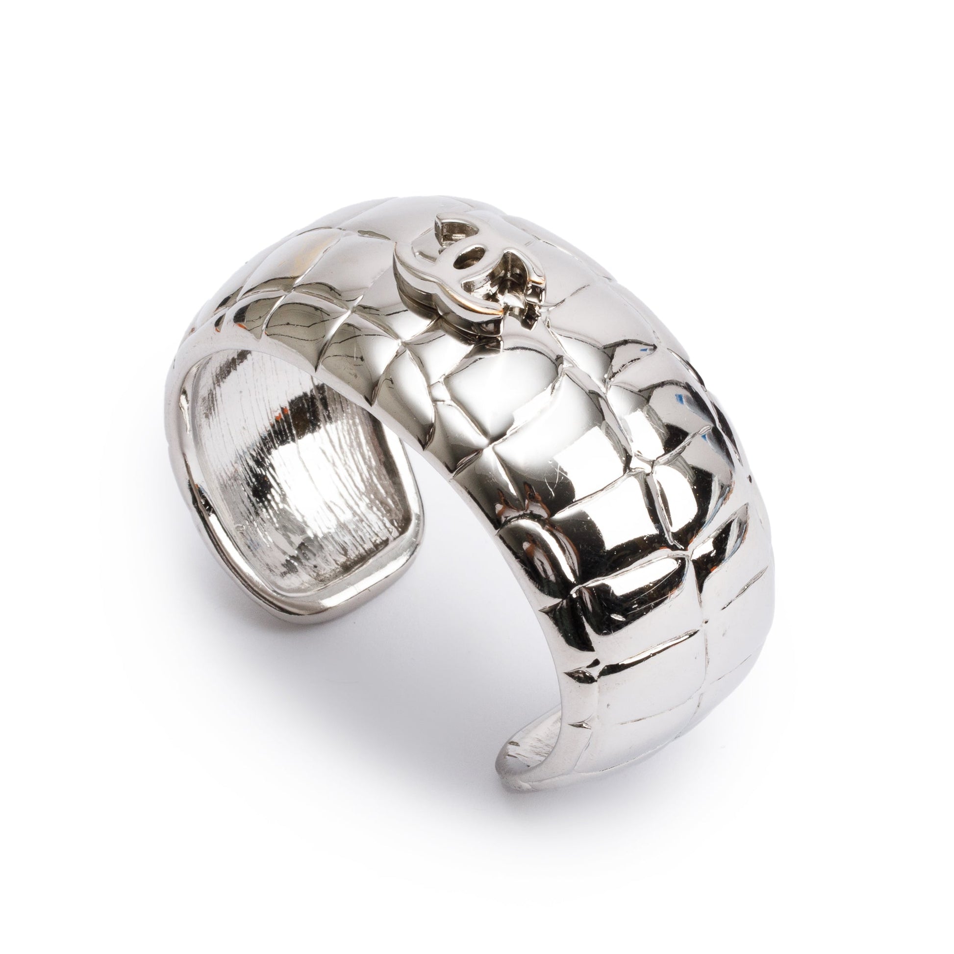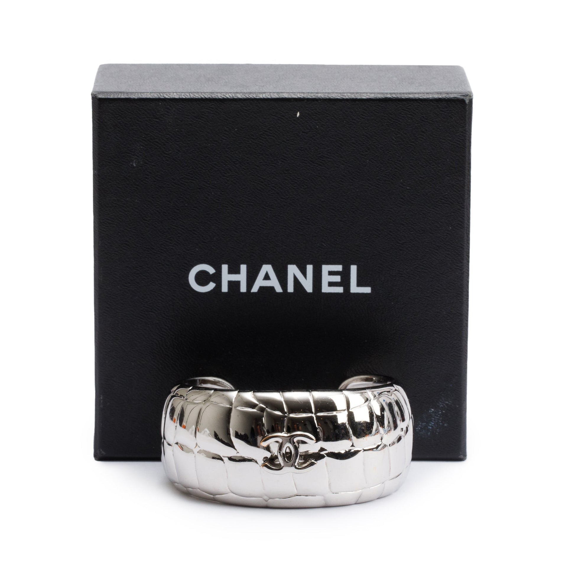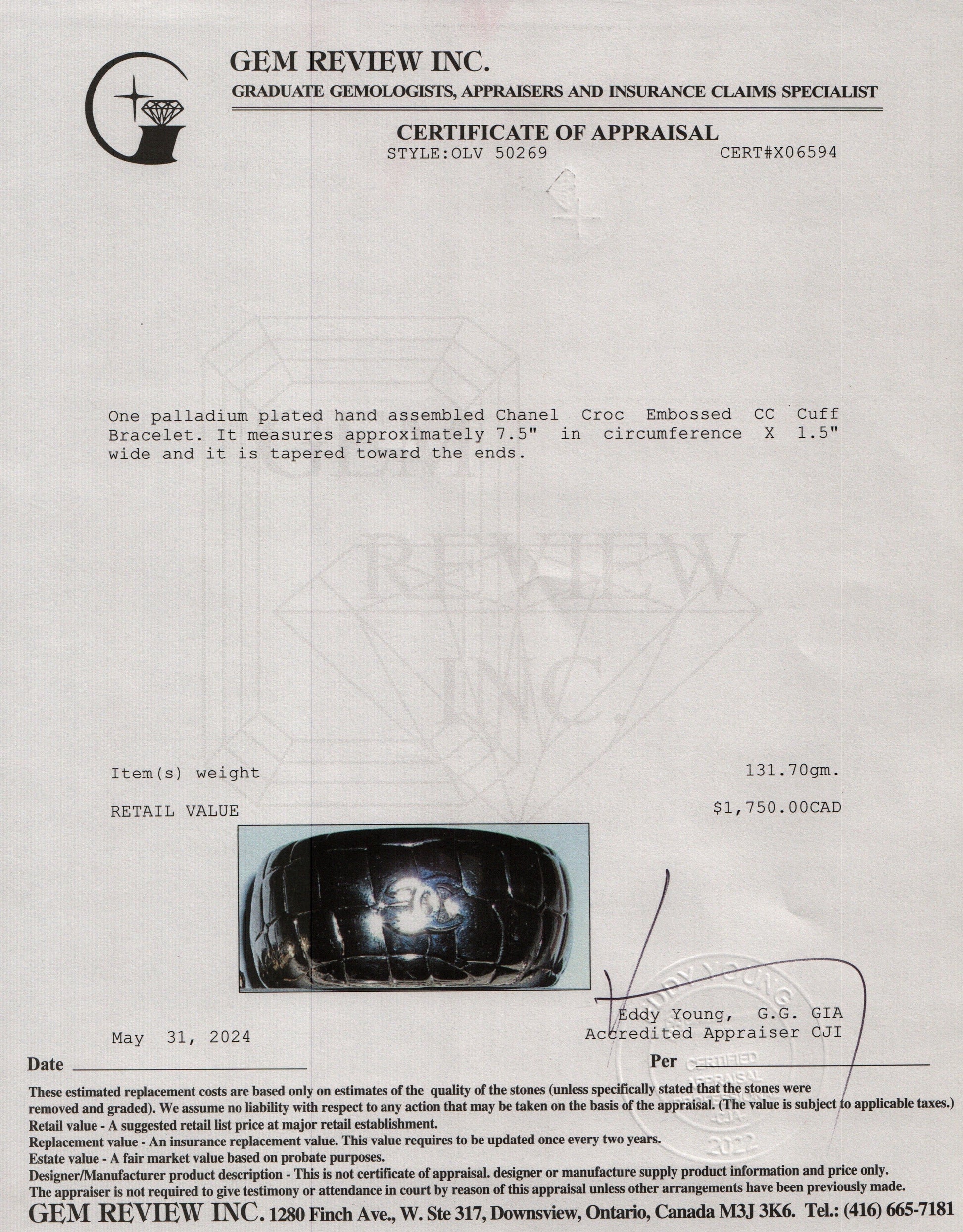 Chanel Palladium Plated Croc Embossed CC Cuff Bracelet w/ Box & Receipt