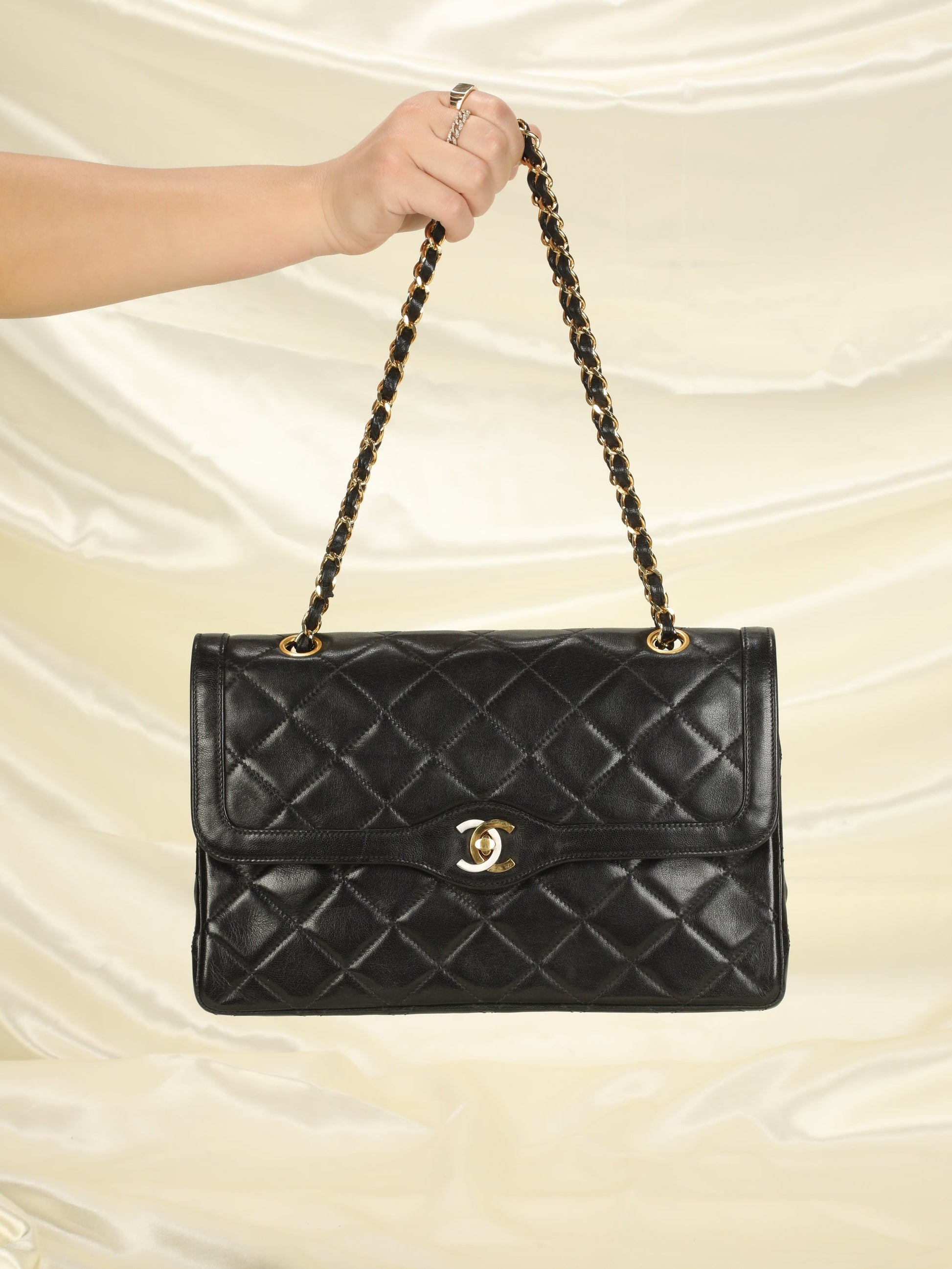 First time having a medium size of this beauty in the shop!? Chanel lambskin?double flap mixed with silver and gold hardware on turnlock, this is a rare Chanel gem. Did we mention it's a DOUBLE FLAP! Vintage Chanel crafted in the 90's= 24k hardware and soft buttery lambskin. Can be loved for years to come. Don't miss out on this gorgeous find! Bag 6000+.