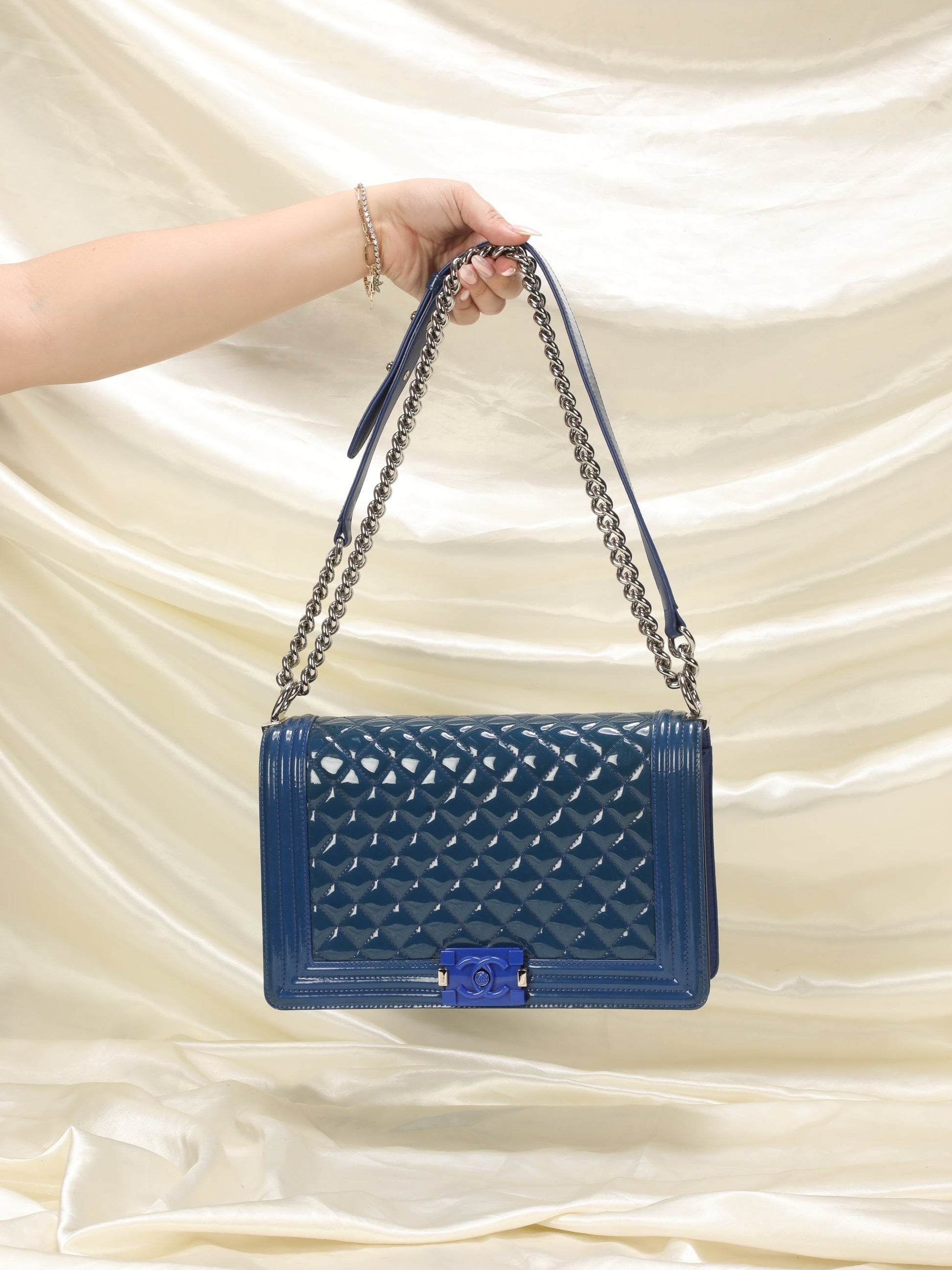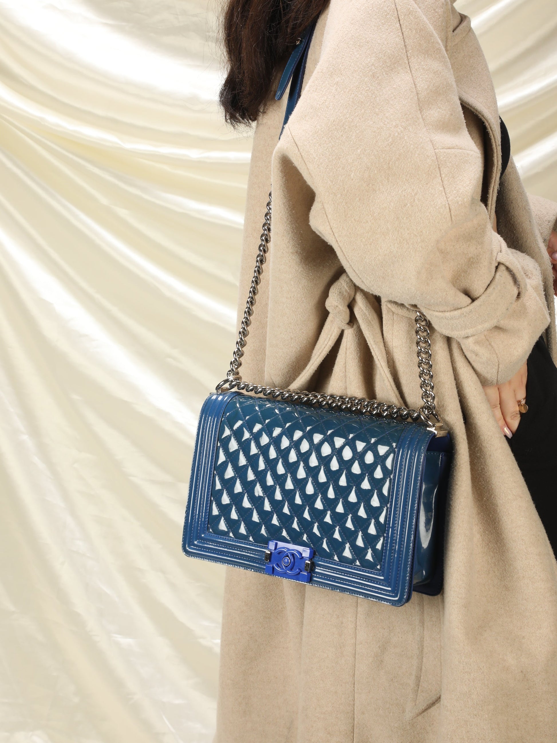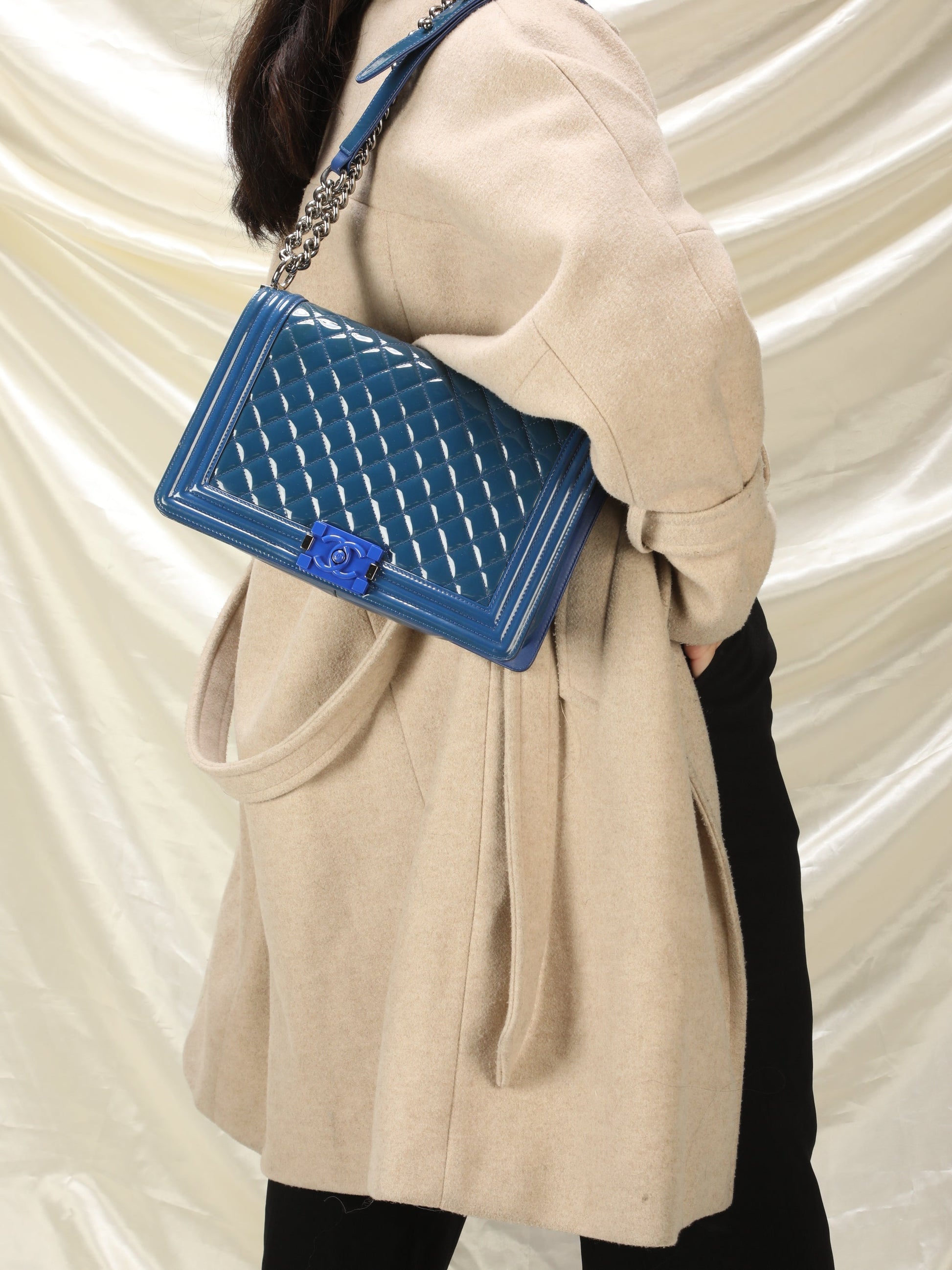 ELECTRIFYING. In a vibrant?electric blue, this Chanel Boy?bag is truly a statement piece. This gorgeous pop of color combined with the?edgy?silver hardware allows this to be an extremely?eye-catching?bag. Wear with a minimal outfit for an effortless?edge?to your look!