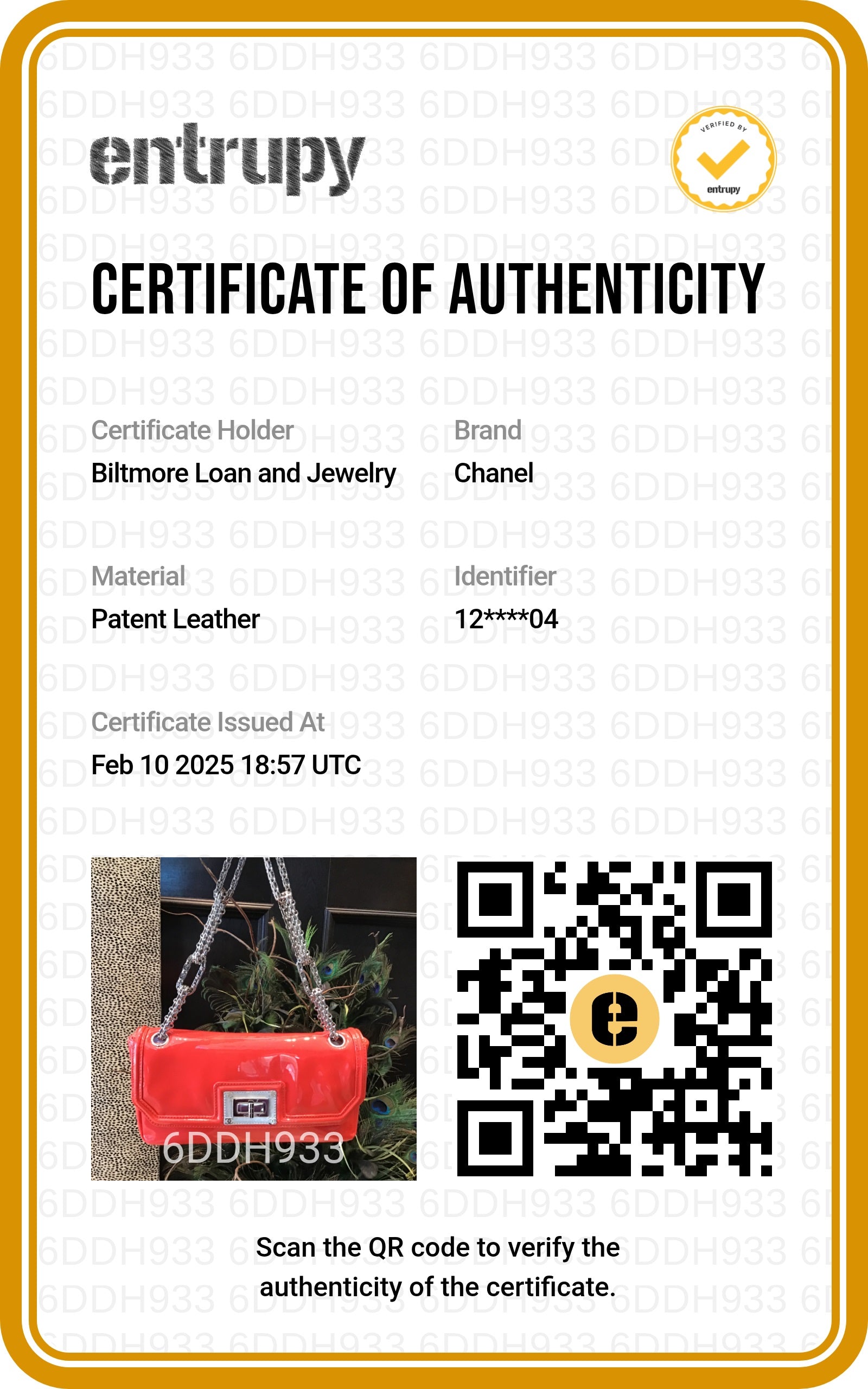 Includes: The Relux Dust bag, Chanel card & Entrupy