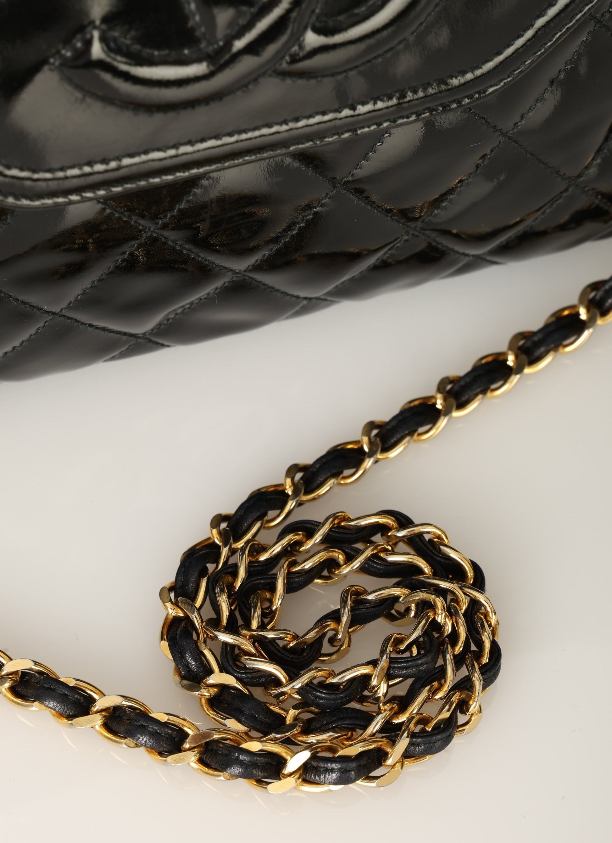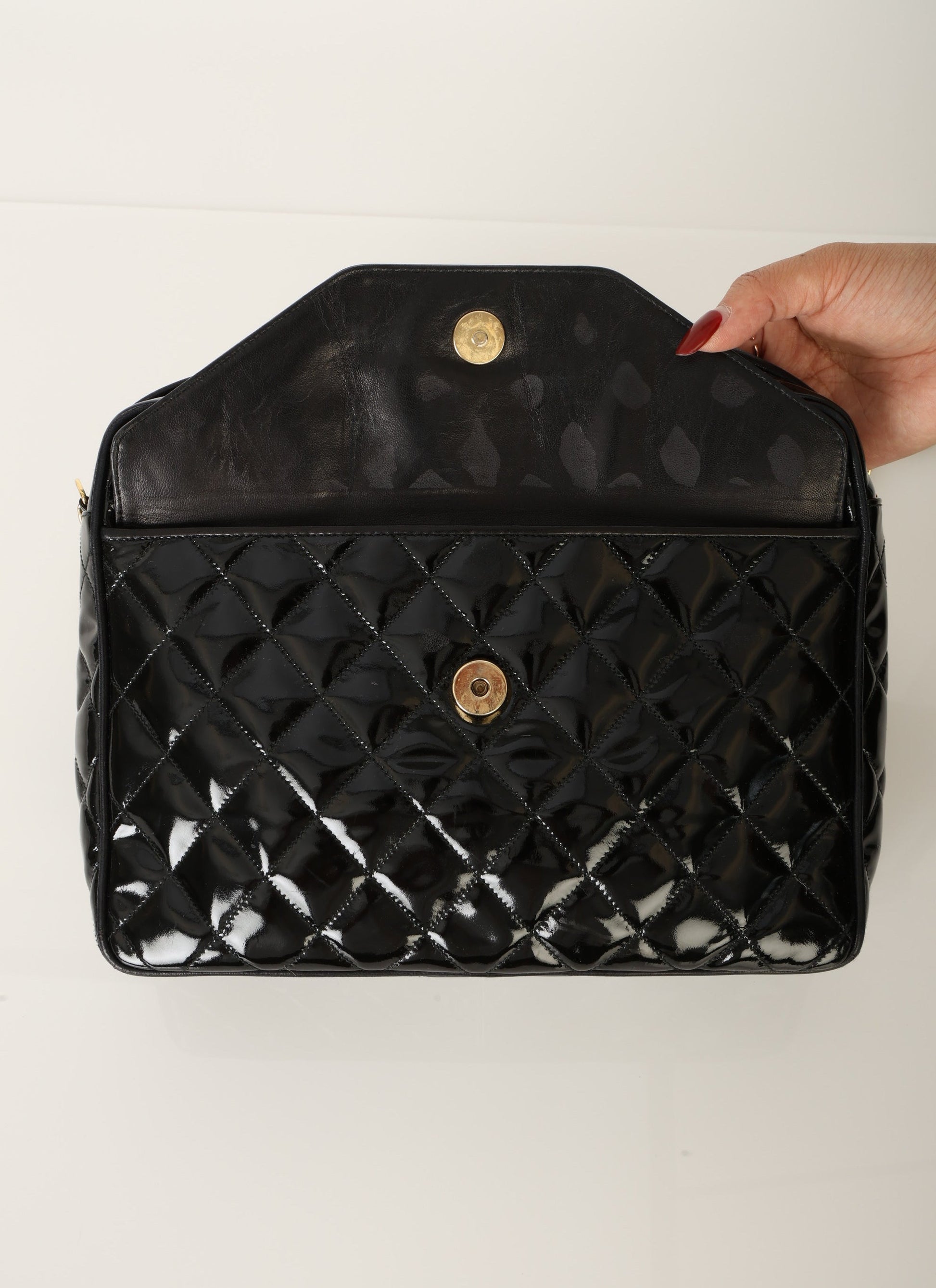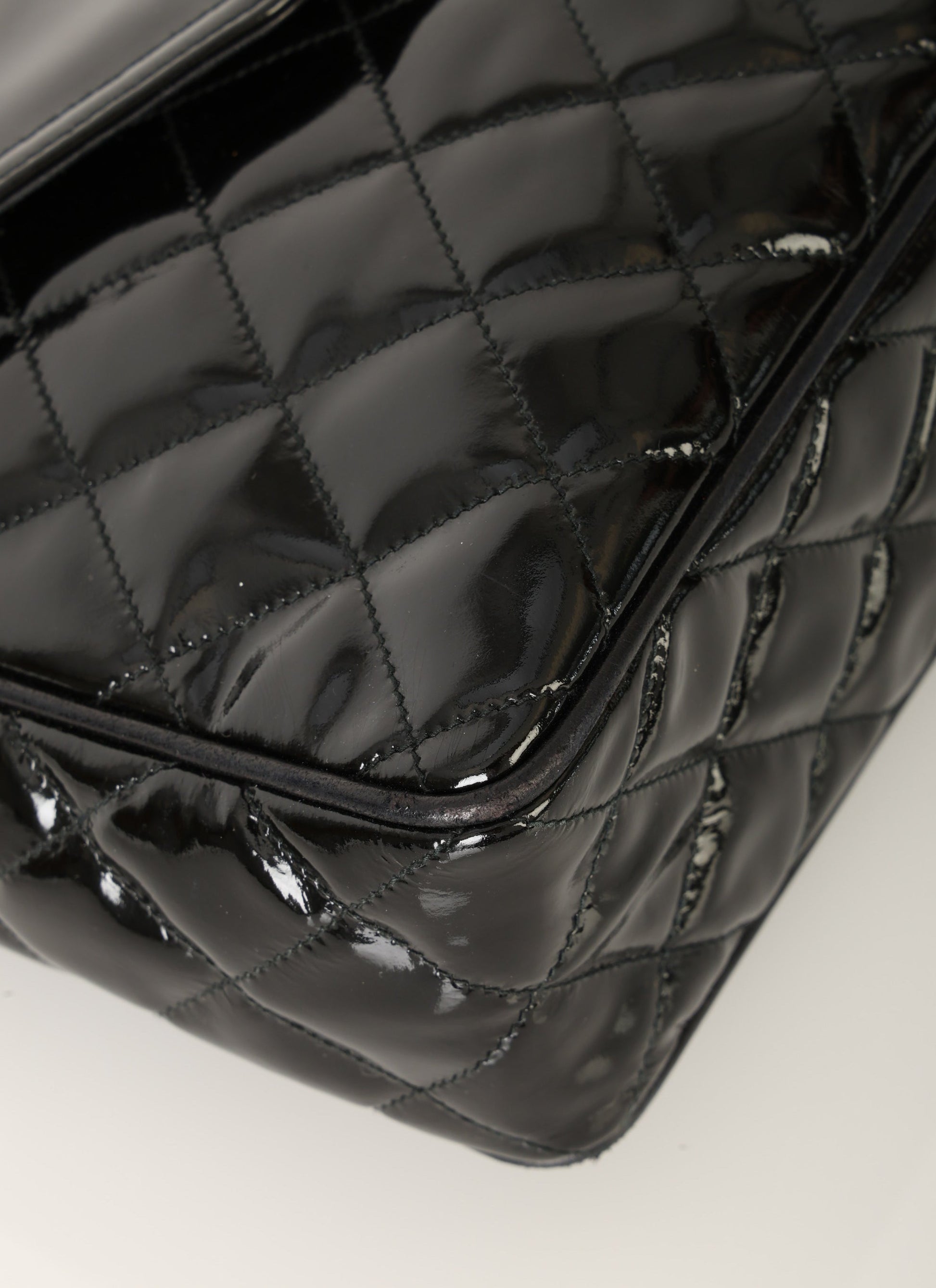Please note: Light patent marks underneath front flap. Light rubbing on corners and edges. Mark on back bottom right of patent. Light wear on patent due to normal use. Please refer to photos for more details.?