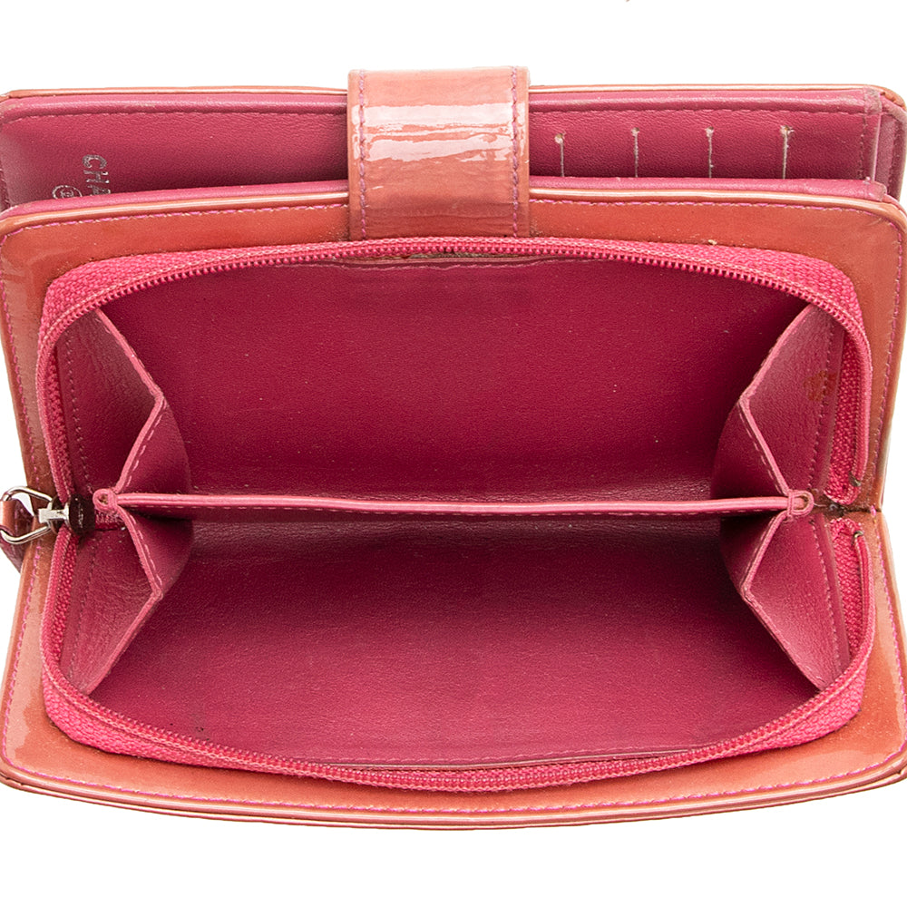 Chanel Patent Leather Camellia CC L-Double Wallet (SHF-20612)