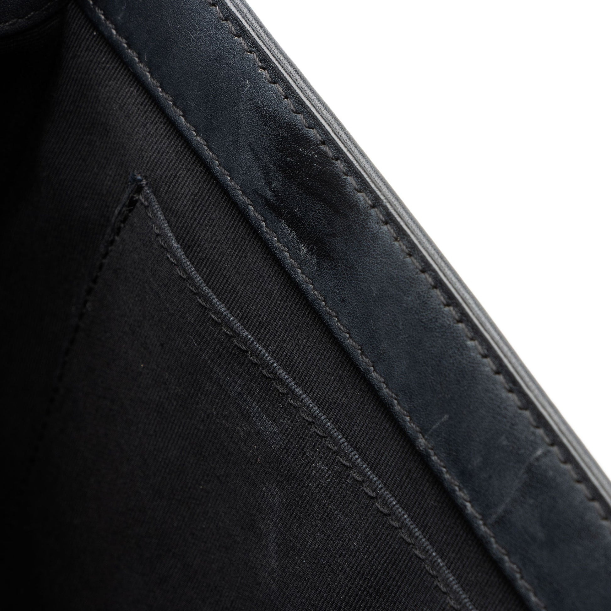 Condition Notes: Light creasing to exterior sides by corners. Minor marks and scuffs throughout exterior. Light creasing throughout shoulder strap. Light surface scratches to hardware. Scuffs throughout interior flap and interior front leather. Light wear throughout interior.