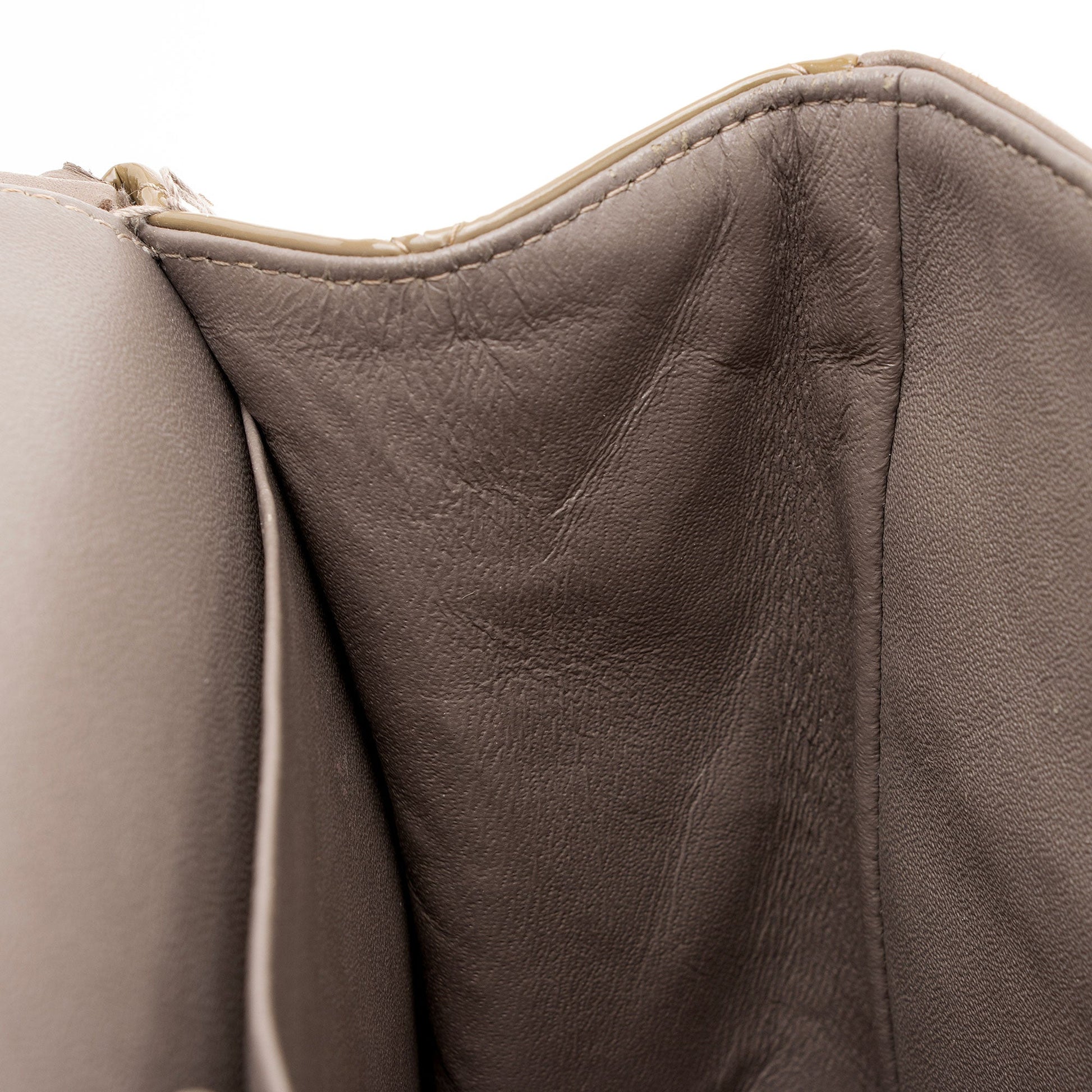Condition Notes: Visible marks and light scuffs throughout exterior. Minor creasing throughout exterior. Darkening and marks throughout patent leather woven throughout shoulder strap. Visible surface scratches to hardware. Visible scuffs and wear throughout interior flap. Ink mark to interior flap. Light creasing and scuffs throughout interior.