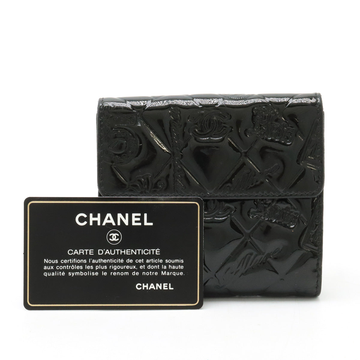 Item name : Chanel Patent Leather Icon Charm Wallet Black