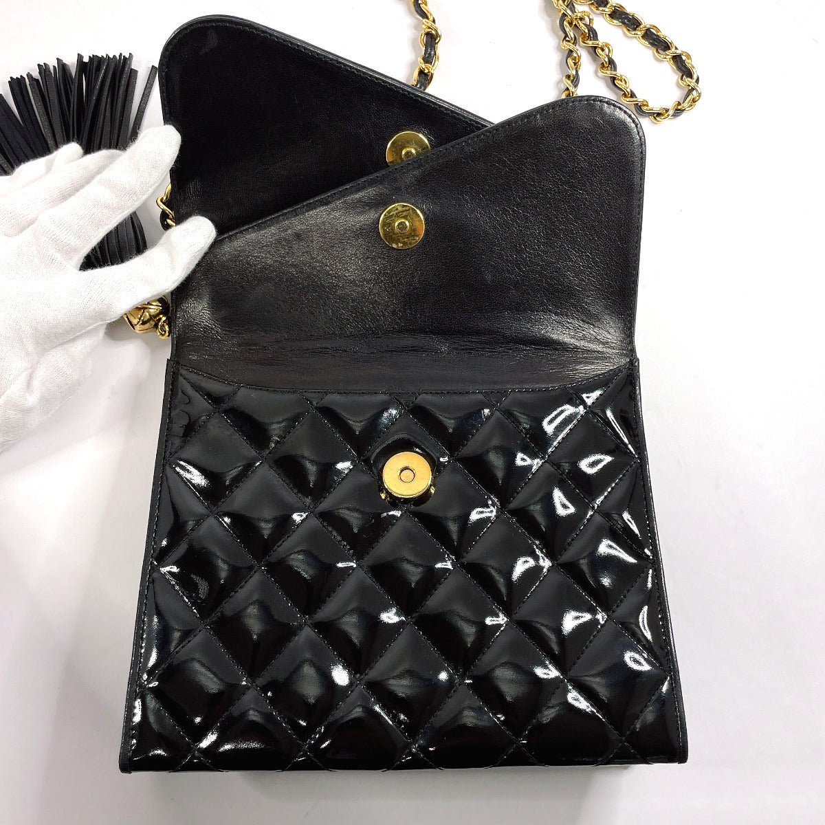 Chanel Patent Leather Matelasse W Flap Bag
