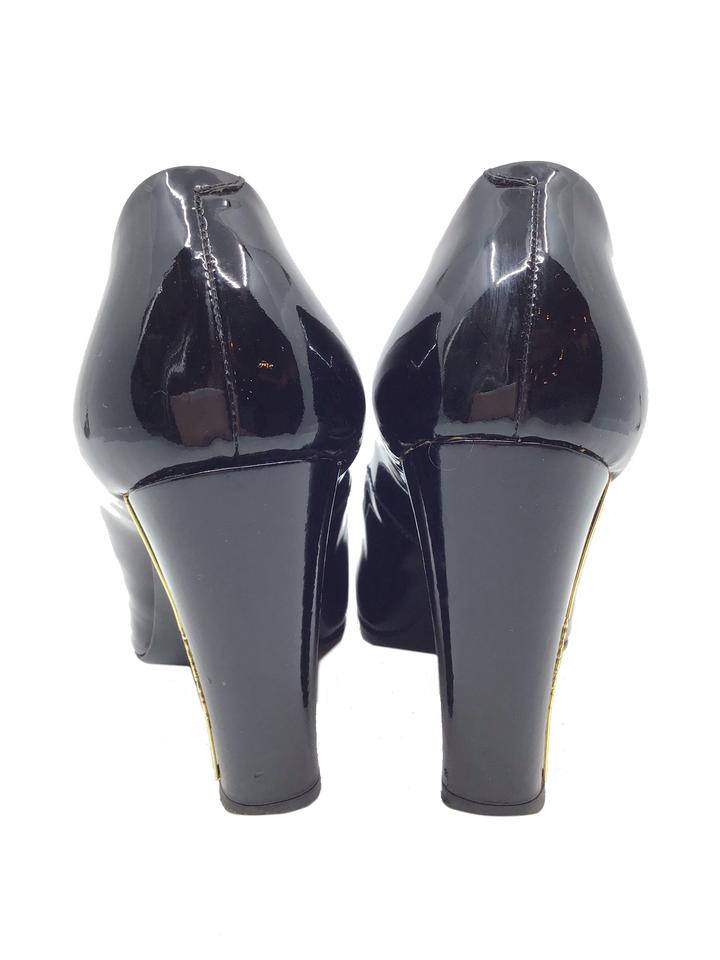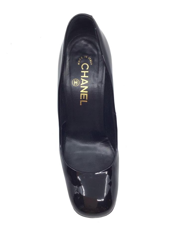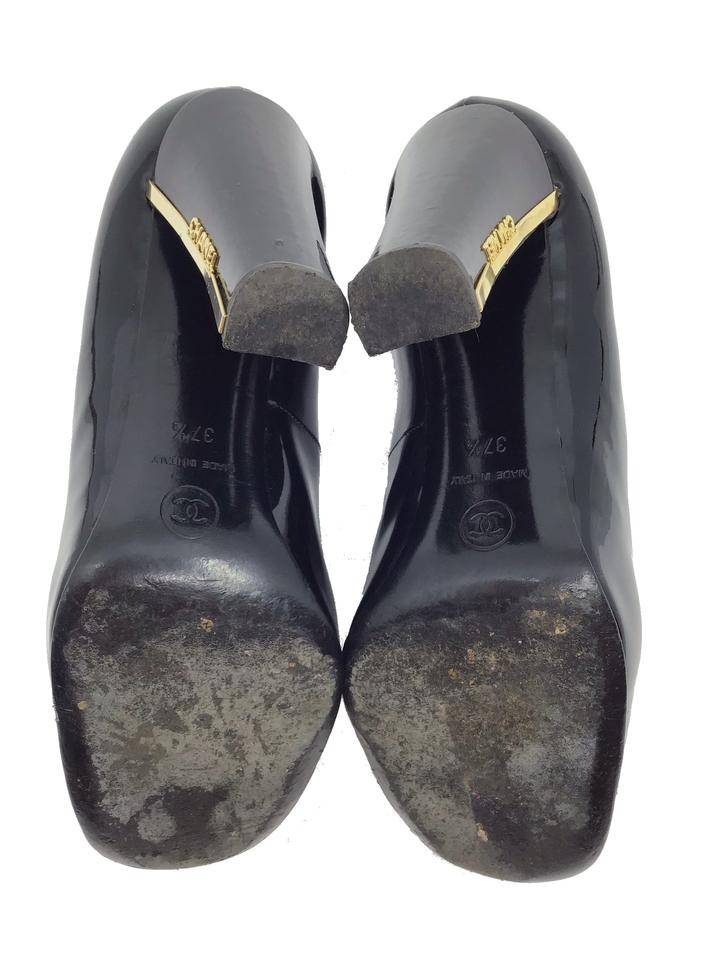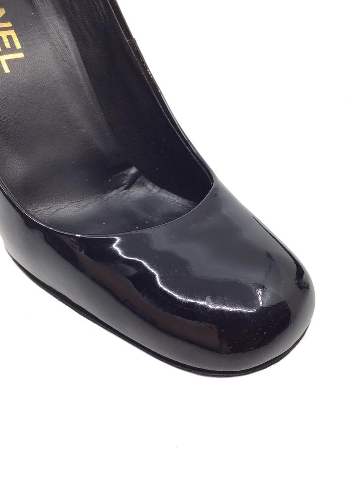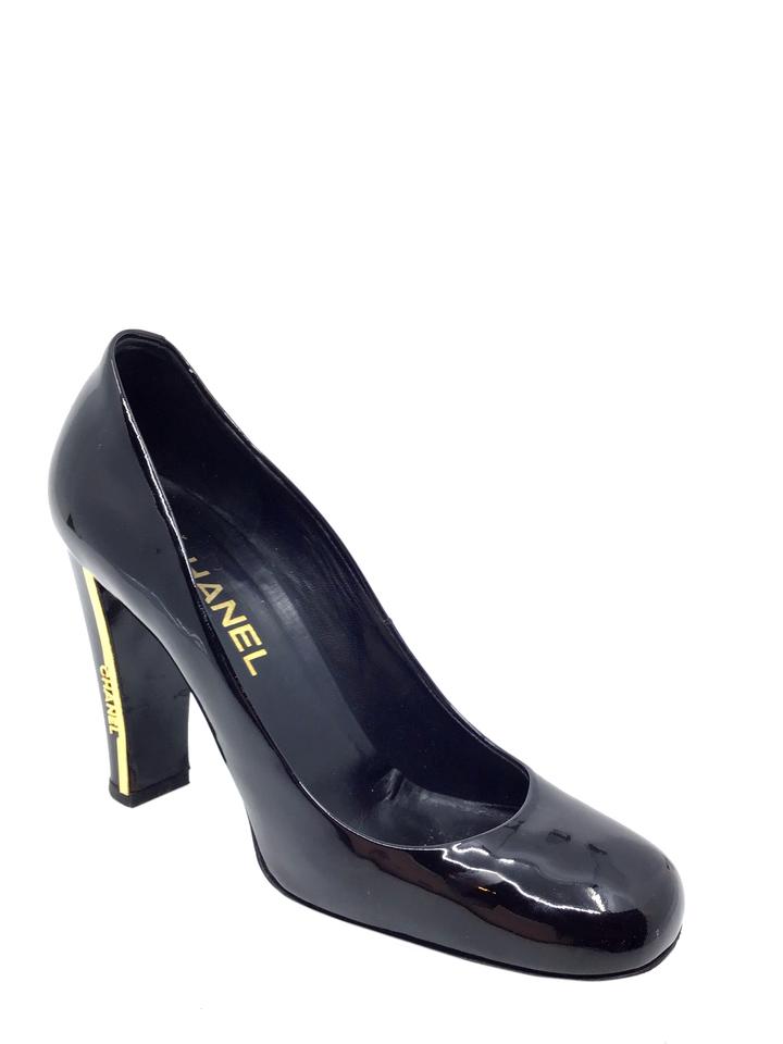 Chanel Patent Leather Metal Logo Heel Pumps Size 7.5
