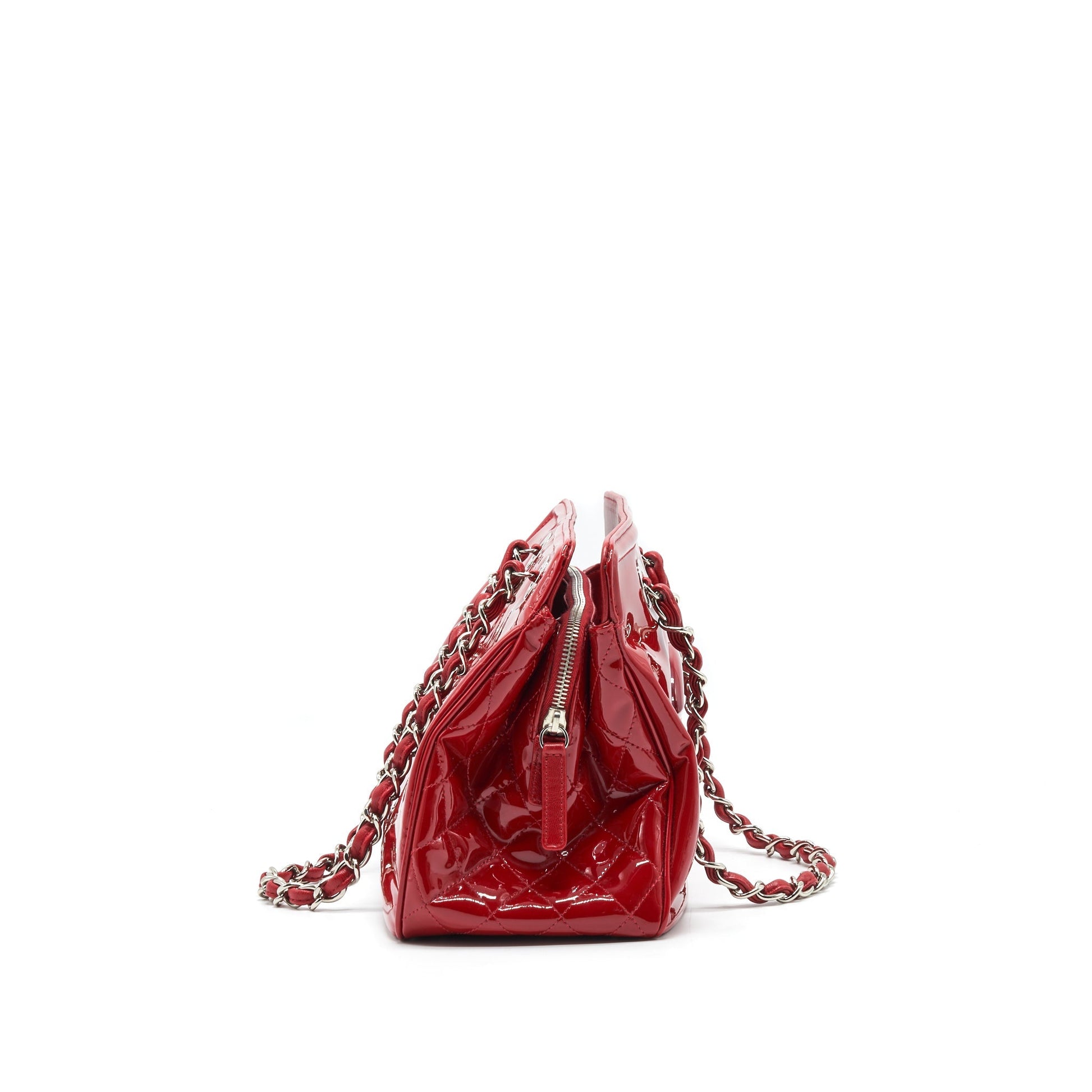 Chanel Patent Leather Tote Bag With Chain In Red SHW