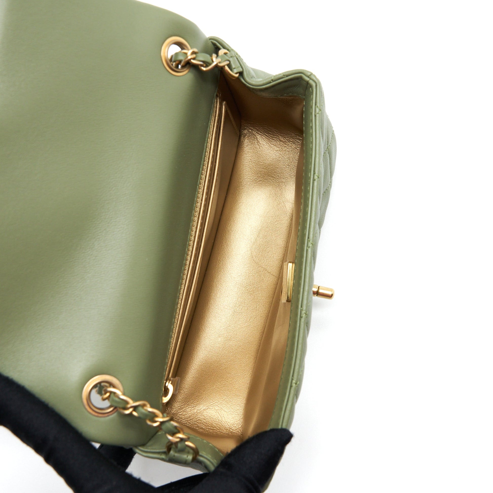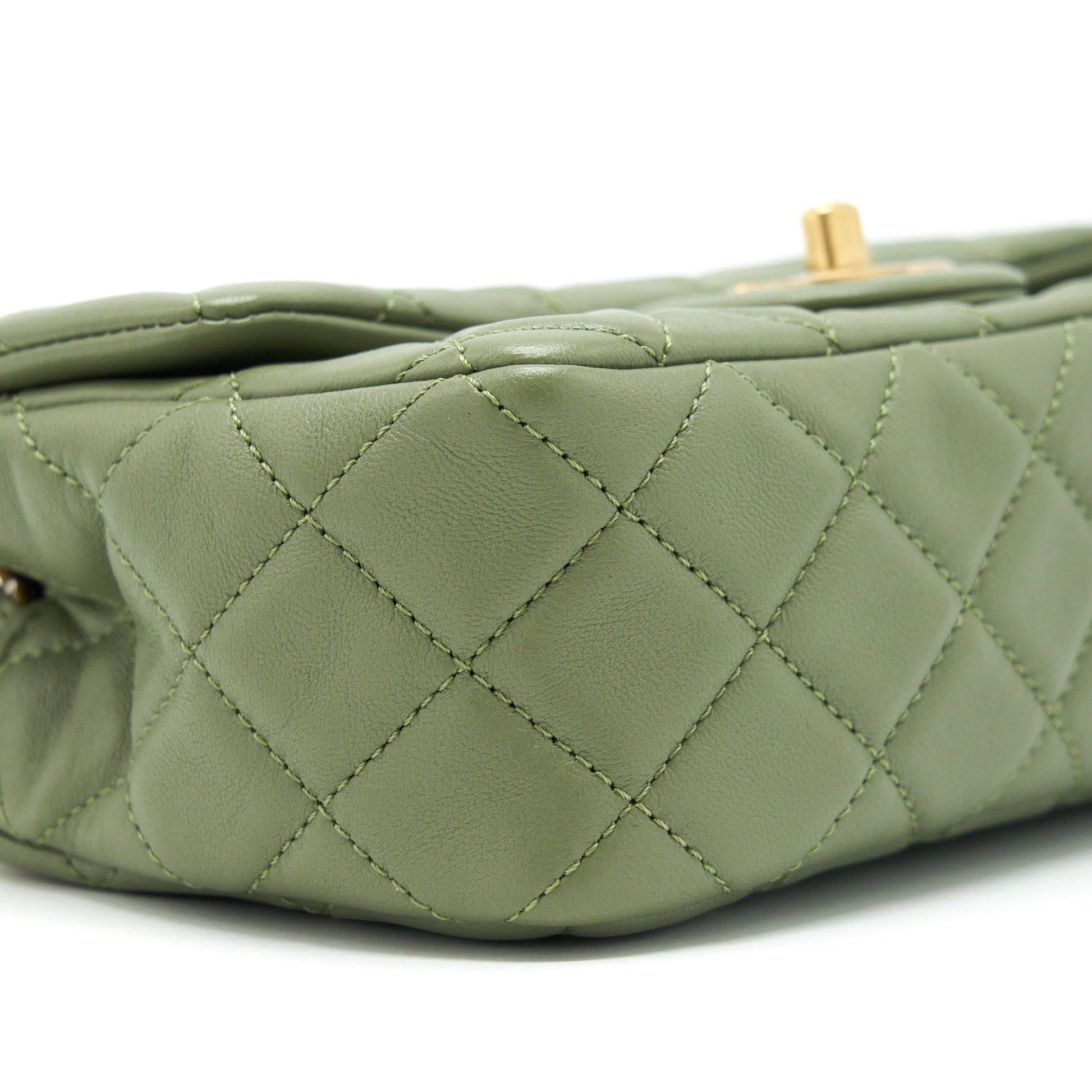 Chanel Pear Crush Mini Rectangular Flap Bag 21B Lambskin Green GHW (Microchip)
