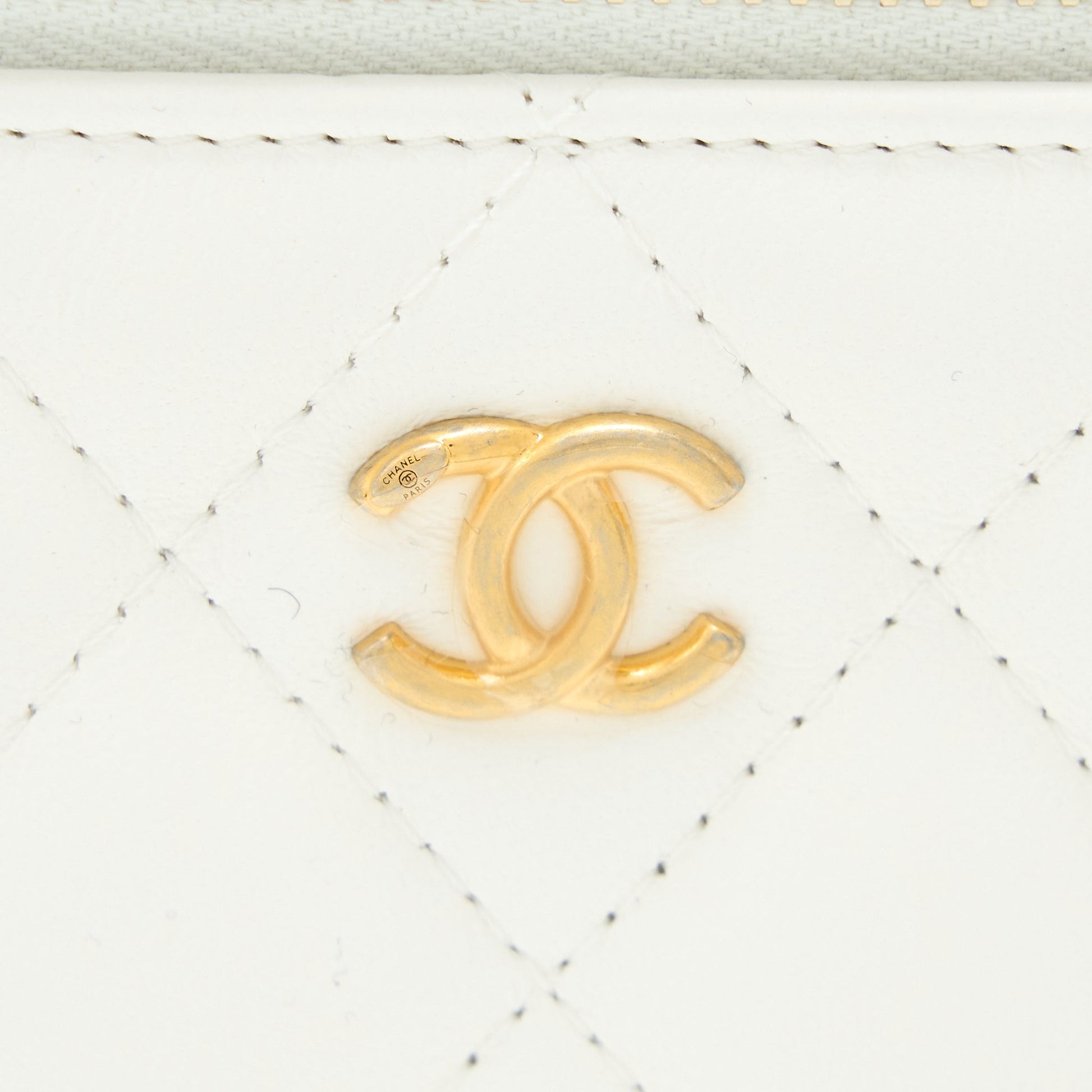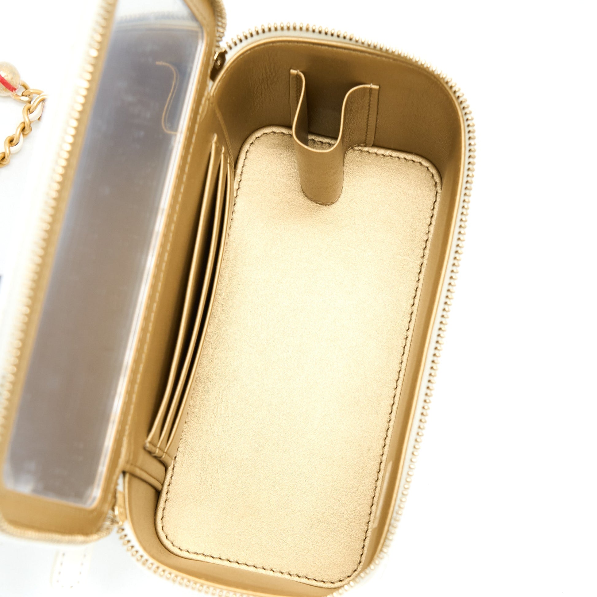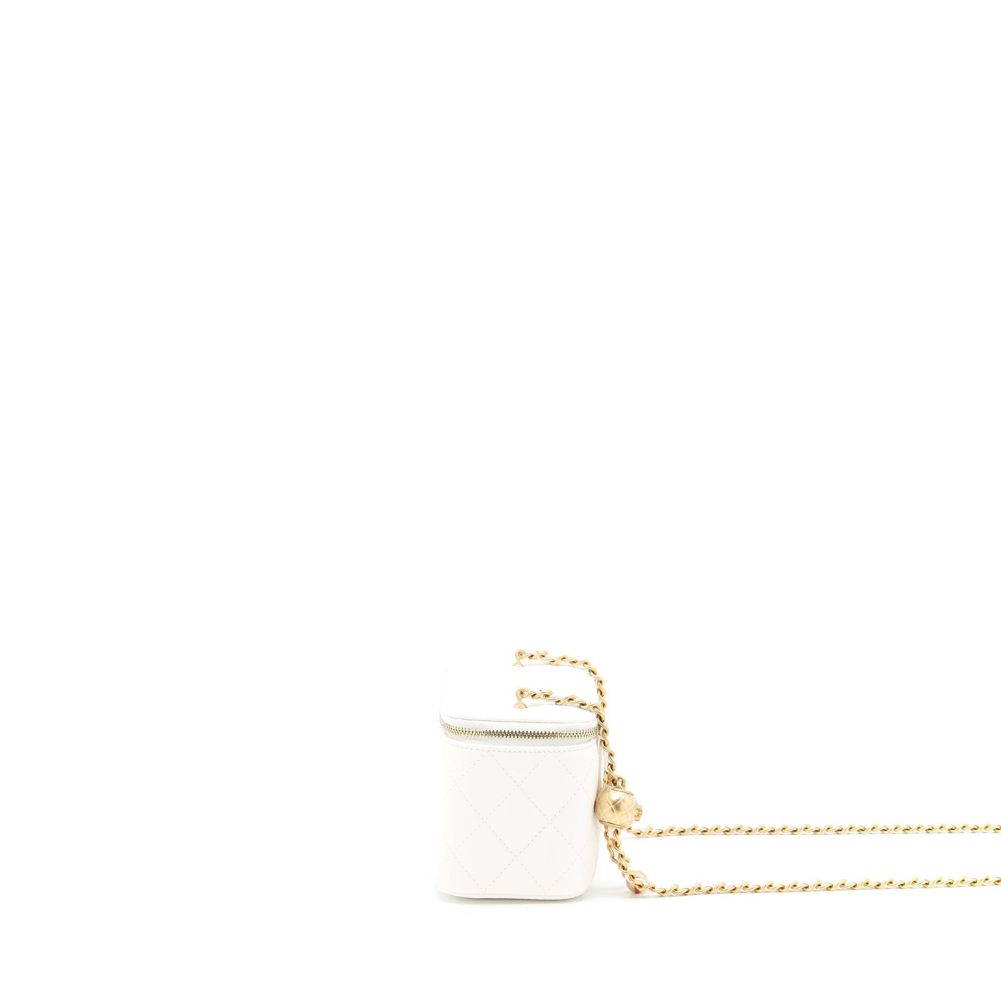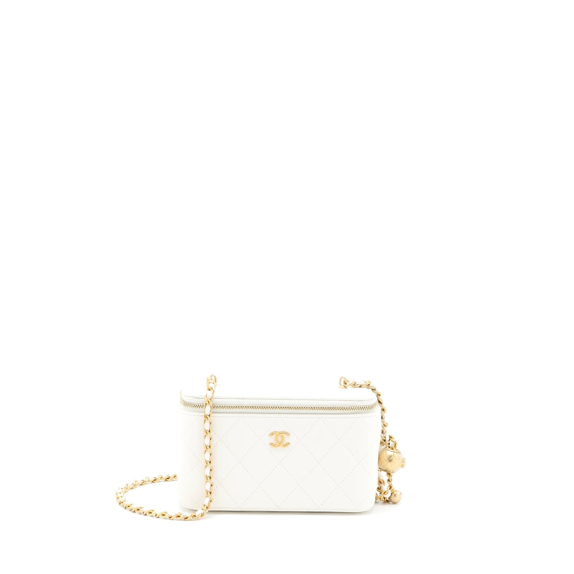 Chanel Pearl Crush Long Vanity Case Lambskin White Brushed GHW
