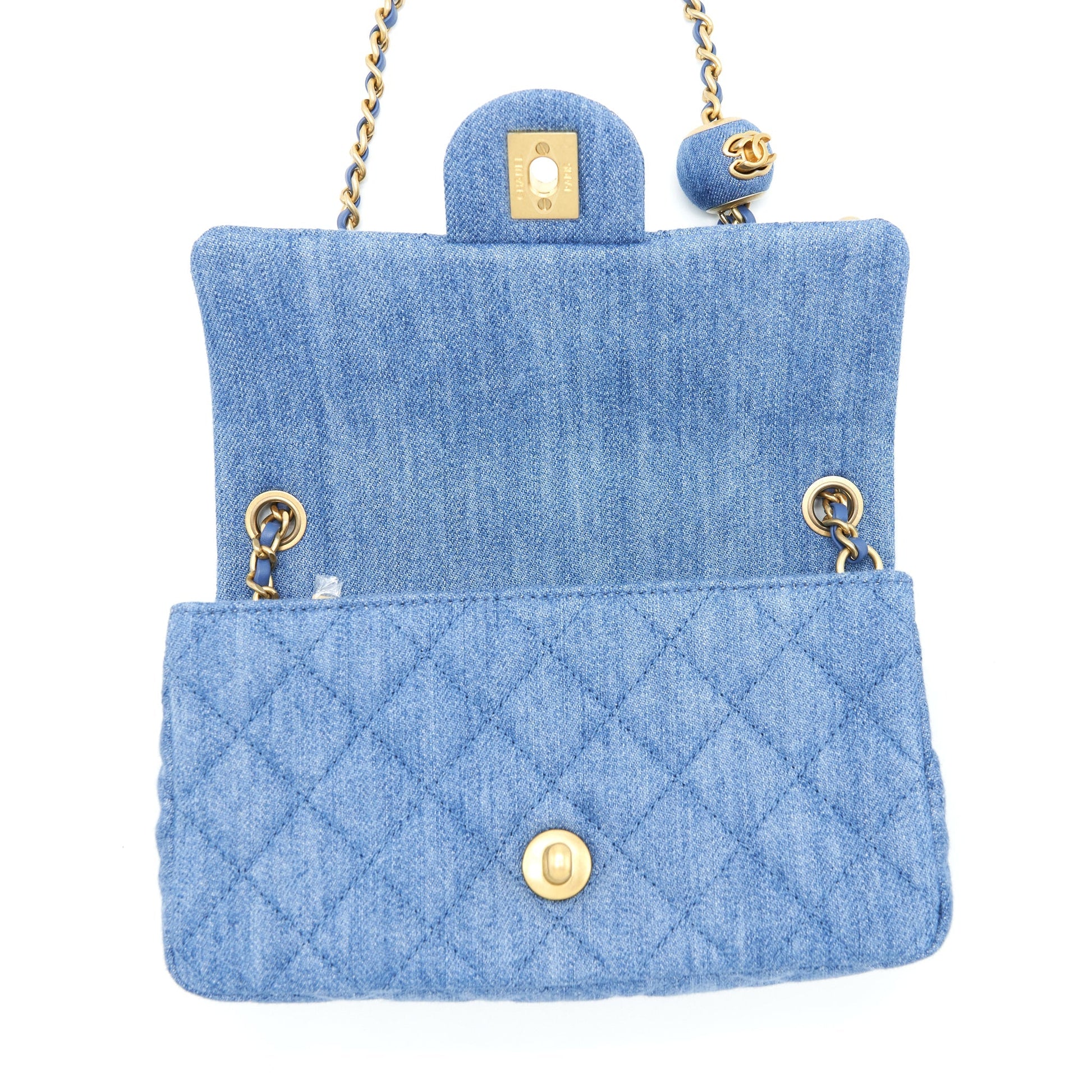 Chanel Pearl Crush Mini Rectangular Flap Bag Denim Blue GHW (Microchip)