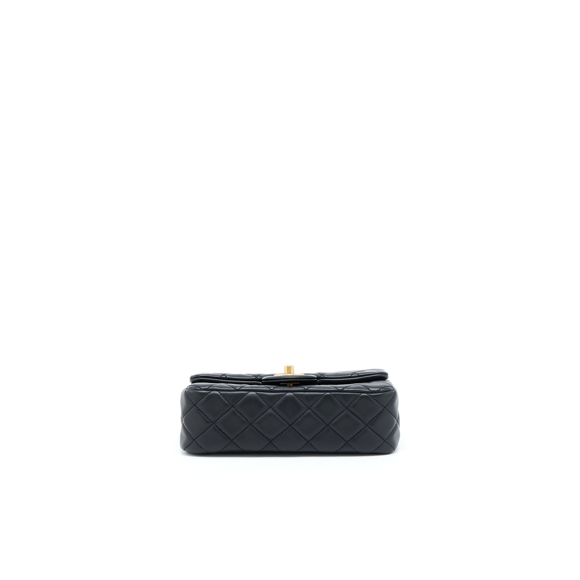 Chanel Pearl Crush Mini Rectangular Flap Bag Lambskin Black Brushed GHW