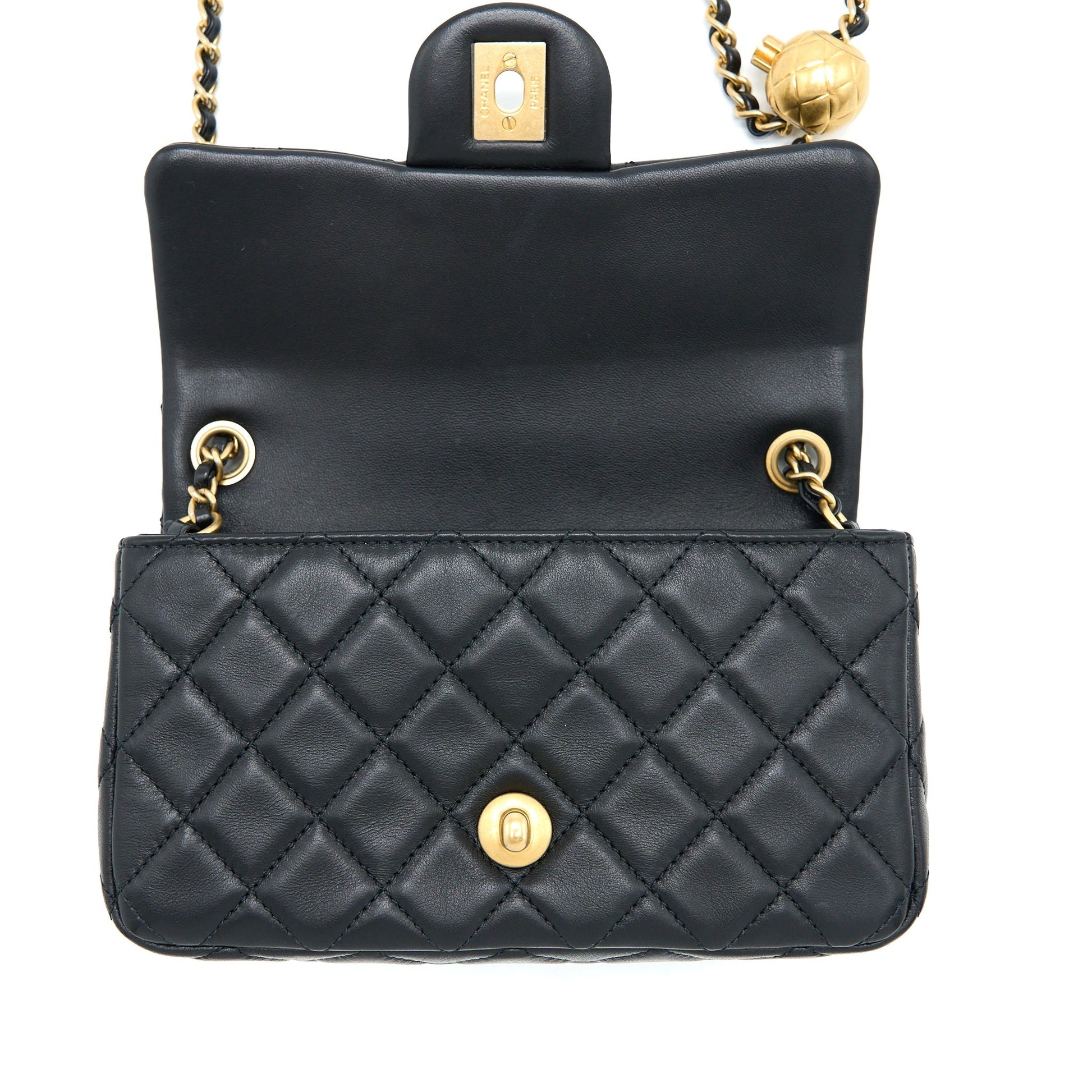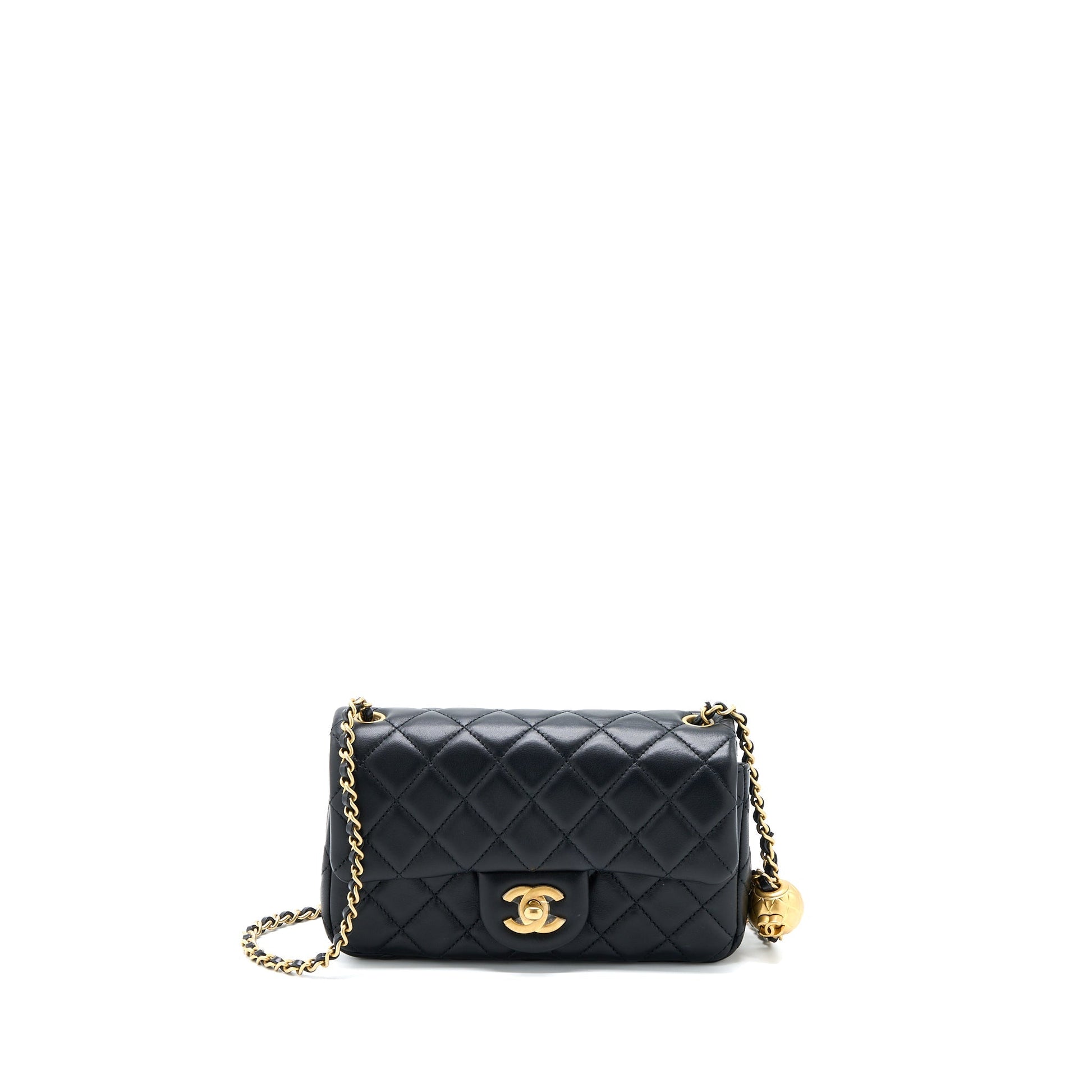 Chanel Pearl Crush Mini Rectangular Flap Bag Lambskin Black GHW