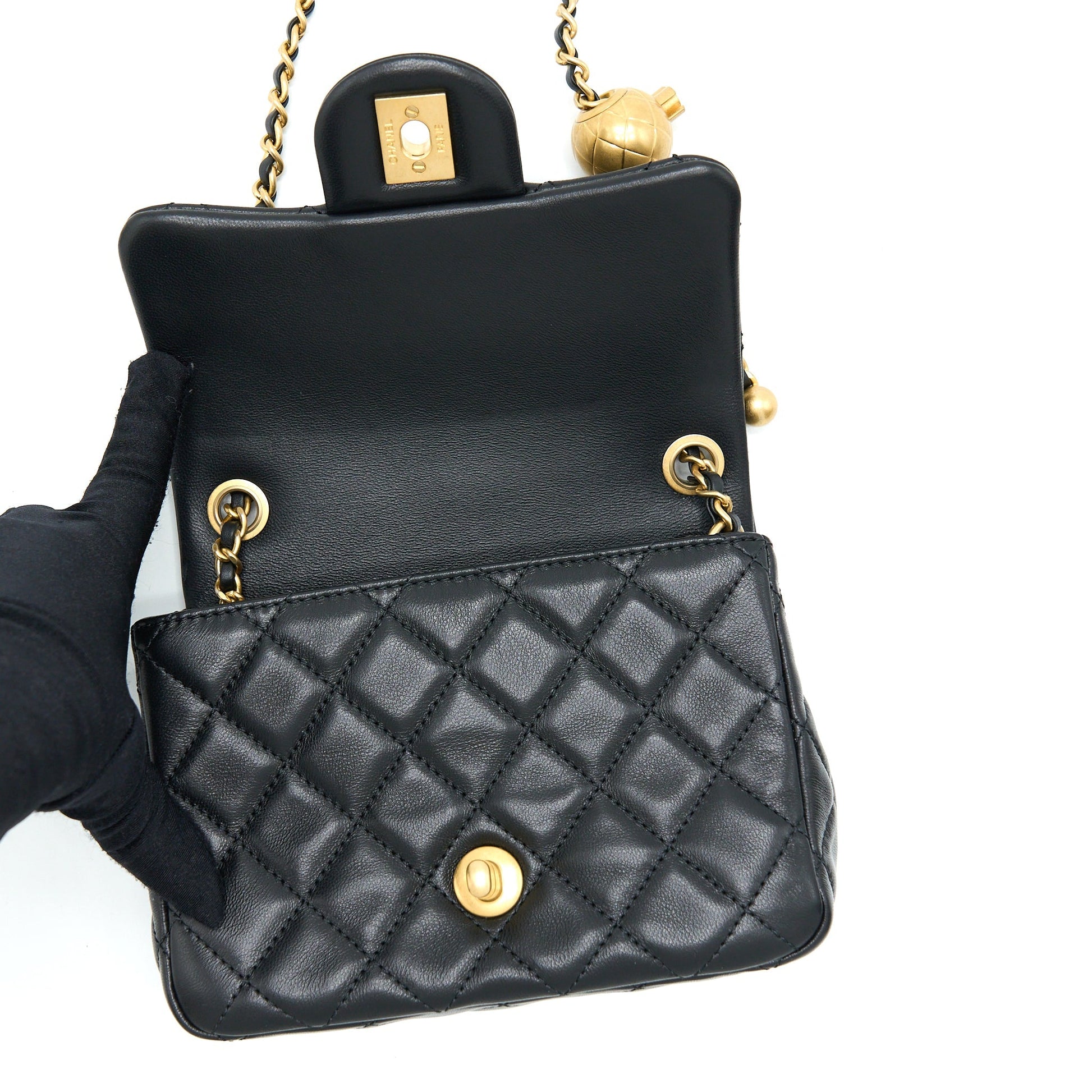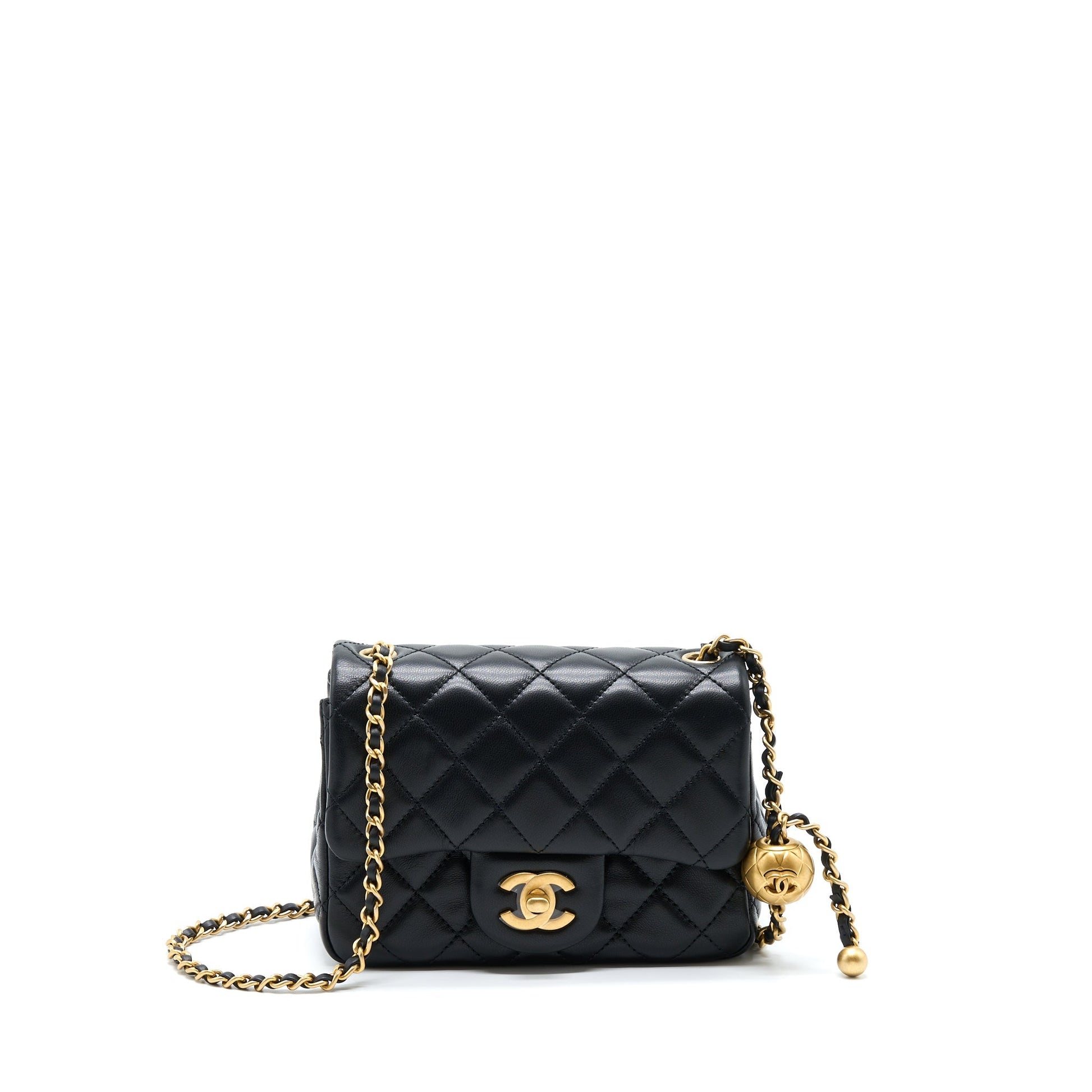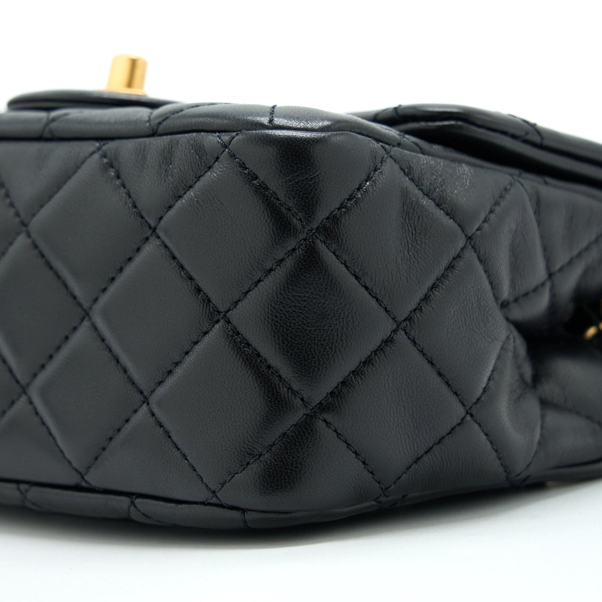 Chanel Pearl Crush Mini Square Flap Bag Lambskin Black GHW (Microchip)